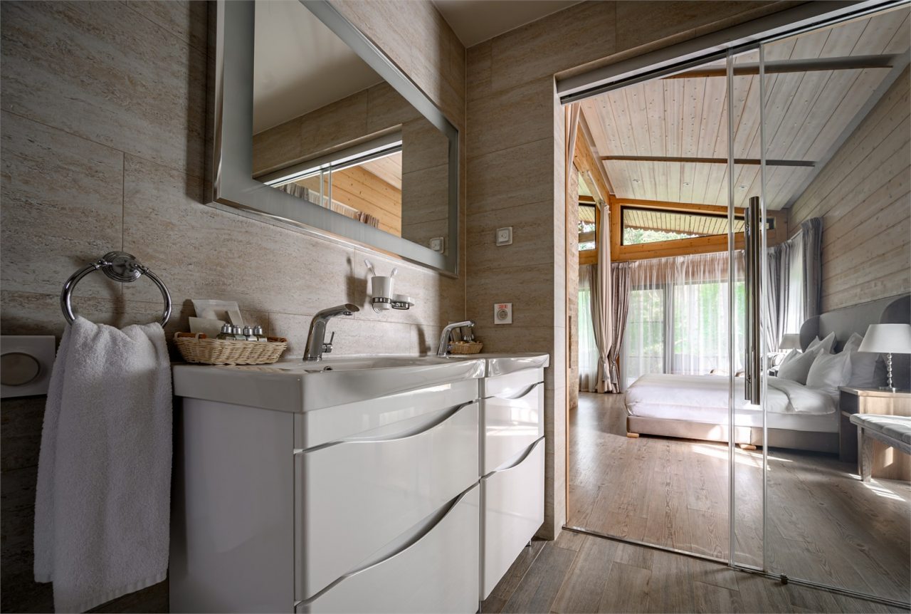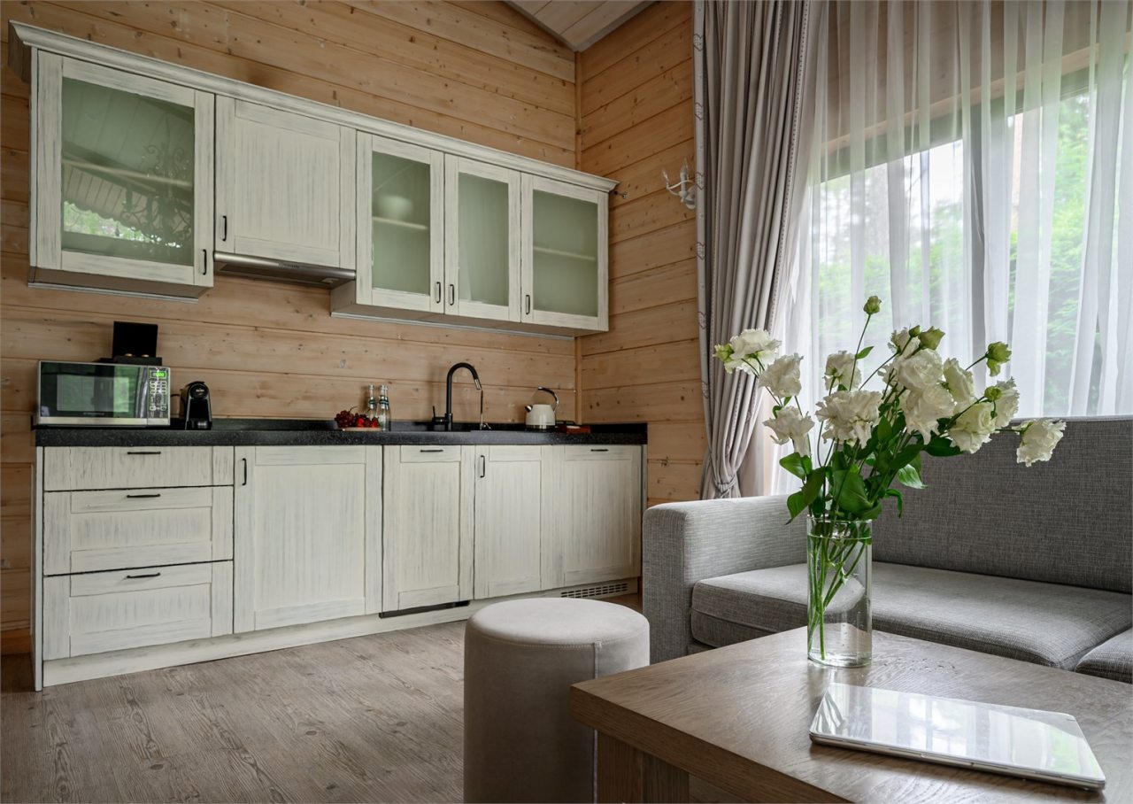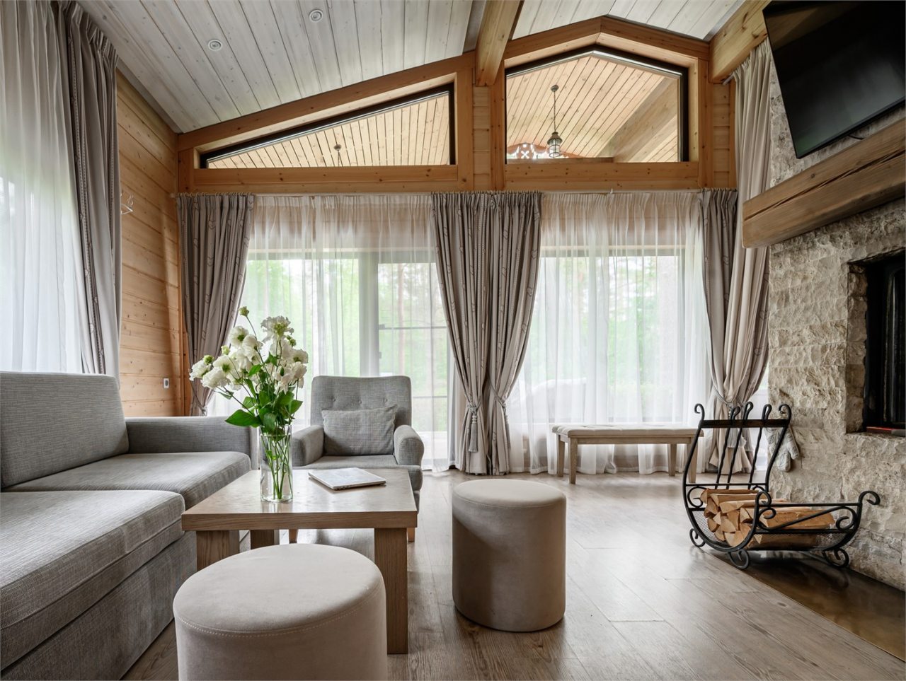 Отельный комплекс красивый, комфортный. В номере сделан хороший ремонт, отделка деревянная, при этом современная и стильная мебель присутствует. Досуг здесь предоставлен на любой вкус, но преимущественно активный. Можно покататься на велосипедах, погулять. Wi-fi работает практически на всей теории. Есть своя баня, тренажерный зал. Мы обязательно вернемся сюда снова.