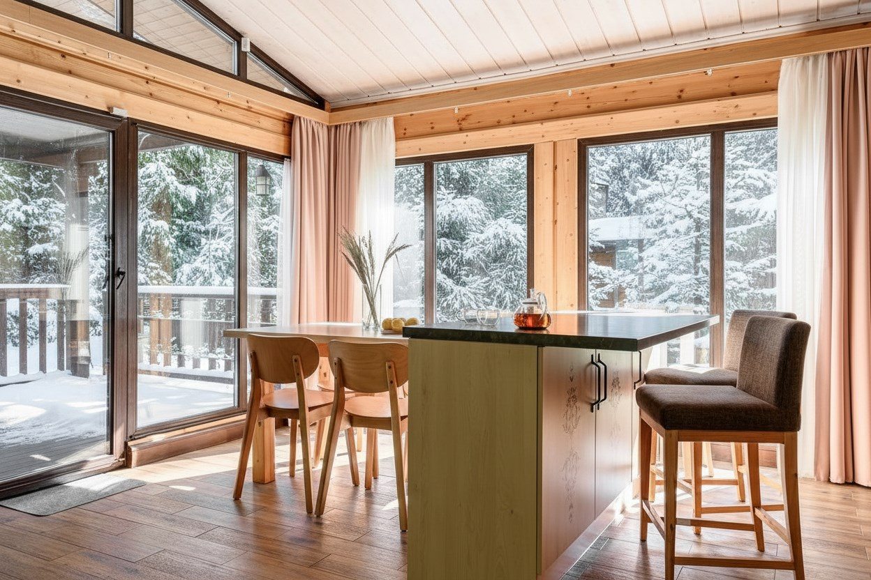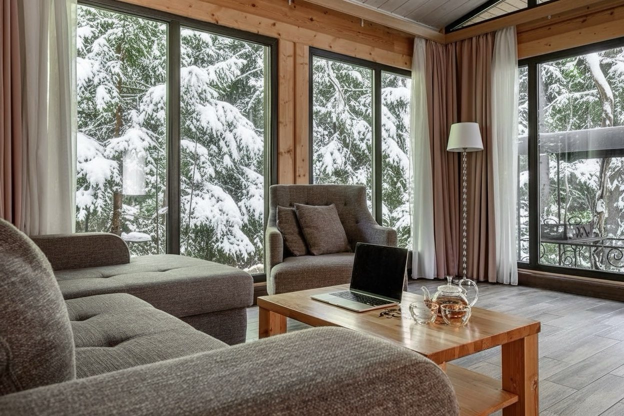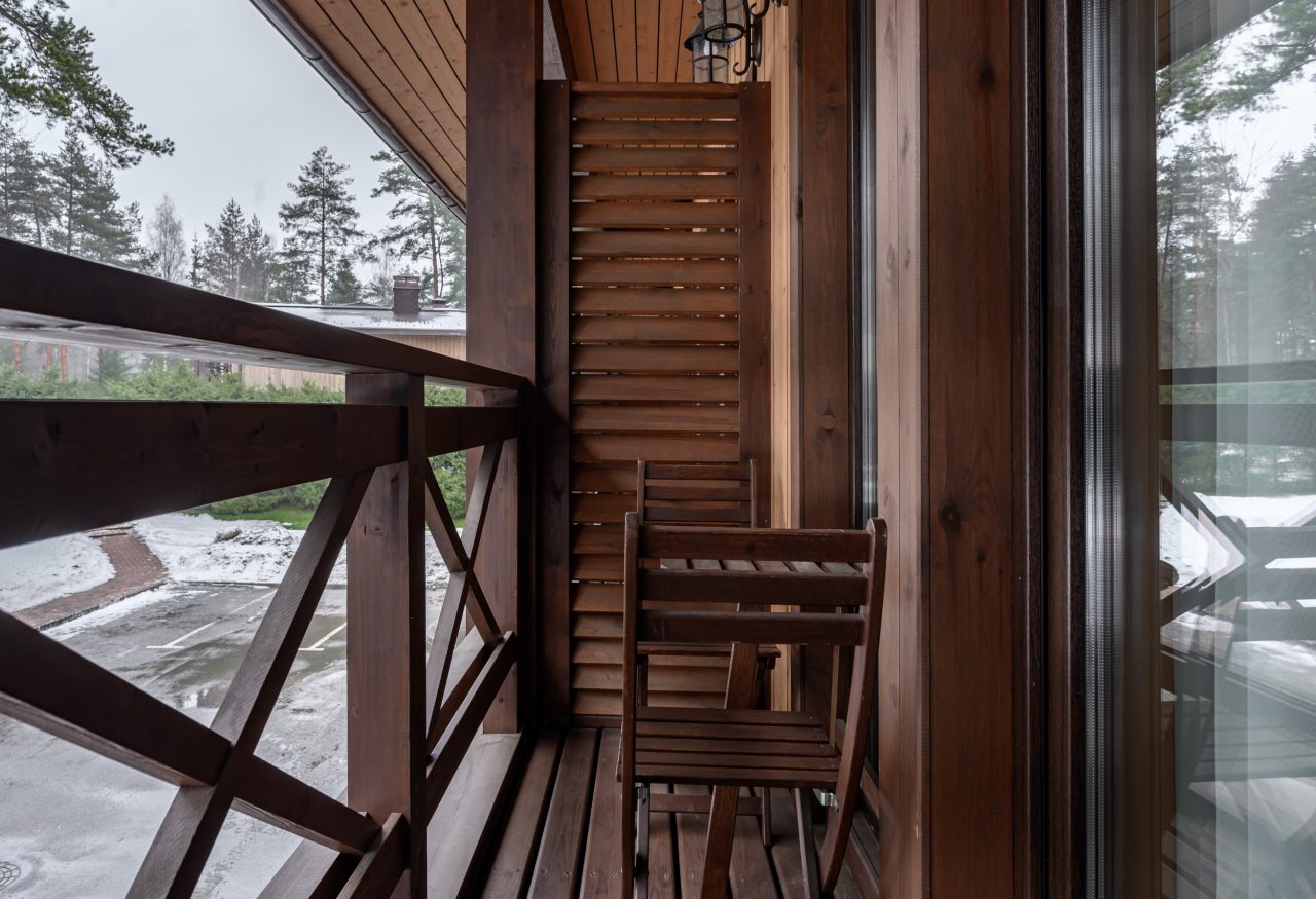 Изумительный курорт Охта Парк и отель расположенный в нем! Мы прямо всем рекомендуем обратить внимание на это место. Если хотите качественно отдохнуть и насладиться свежим воздухом и природой - это то, что нужно. Современная мебель классно сочетается с обустроенным пространством. Домики с резными элементами дополняют самобытность уникальной природы. Но не забывайте, что это в первую очередь горнолыжный курорт. Досуг для здоровья и активности вам гарантирован!