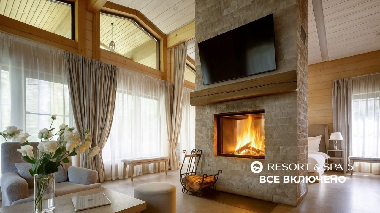 В номере чисто, есть холодильник, телевизор. Номер тихий, особо движухи не было. Мы были в будние дни. Говорят. Зимой тут более оживлённо из-за лыжников. Но и летом было все хорошо, природа хорошая, есть бассейн, в хорошую погоду должен прогреваться сам, а так с подогревом, что плюс. Есть спа, питание в округе на выбор.
