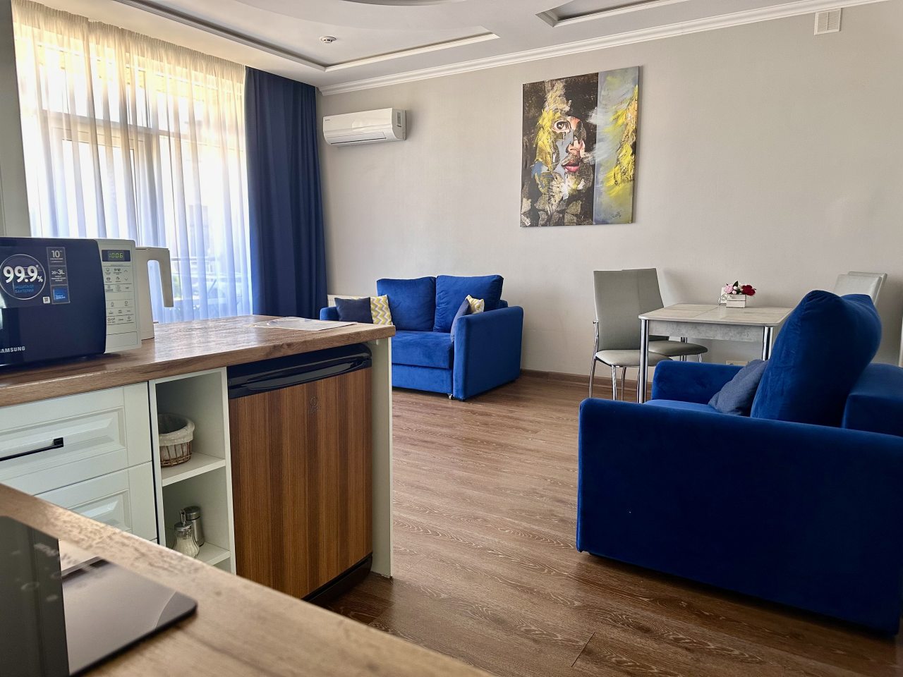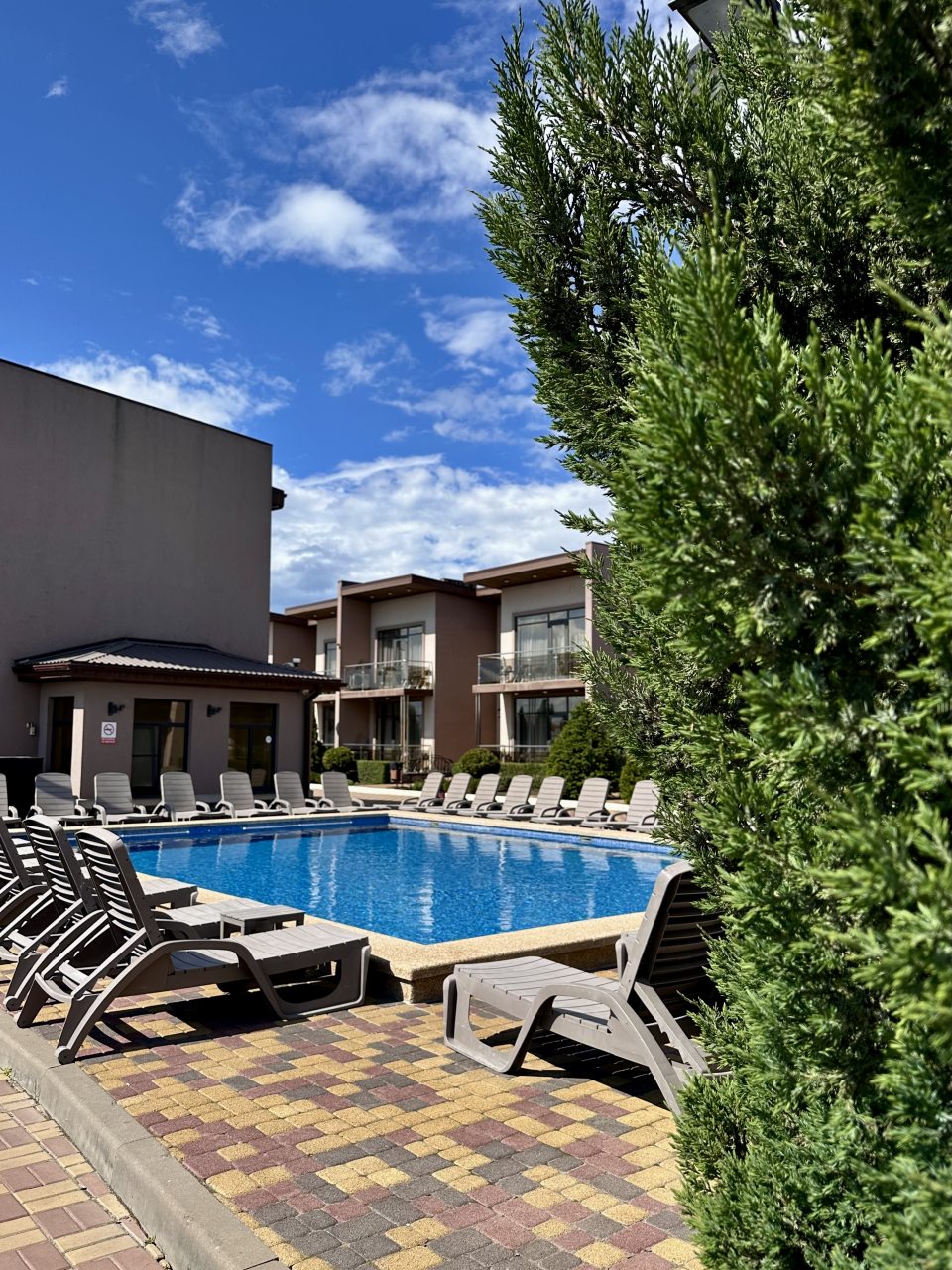 Проживали здесь 5 суток. Нам тут очень понравилось! Находится удобно на берегу моря. Апартаменты нам достались очень симпатичные, отлично обустроенные мебелью и техникой, много необычного декора. Бассейн классный с подогревом, большая зона отдыха, ухоженная красивая территория. Сервис прекрасный, очень вежливый и внимательный персонал.