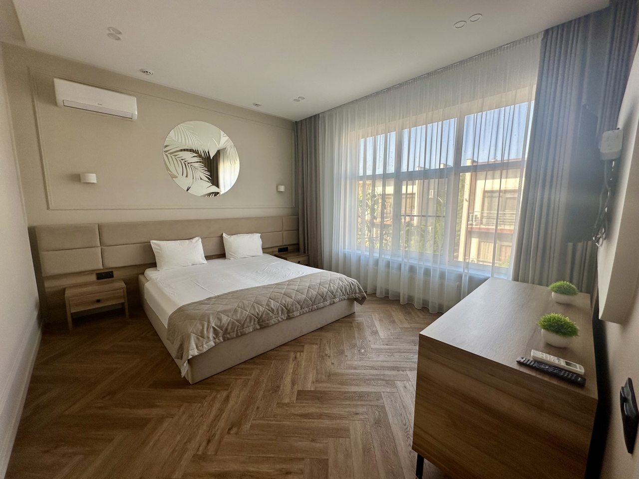 Данные апартаменты представлены комфортными номерами, в каждом из которых есть удобное спальное место, телевизор, санузел. Предоставляется комплект постельного белья и полотенец. На территории, доступной постояльцам отеля, размещена зона отдыха с шезлонгами и бассейн с подогревом.