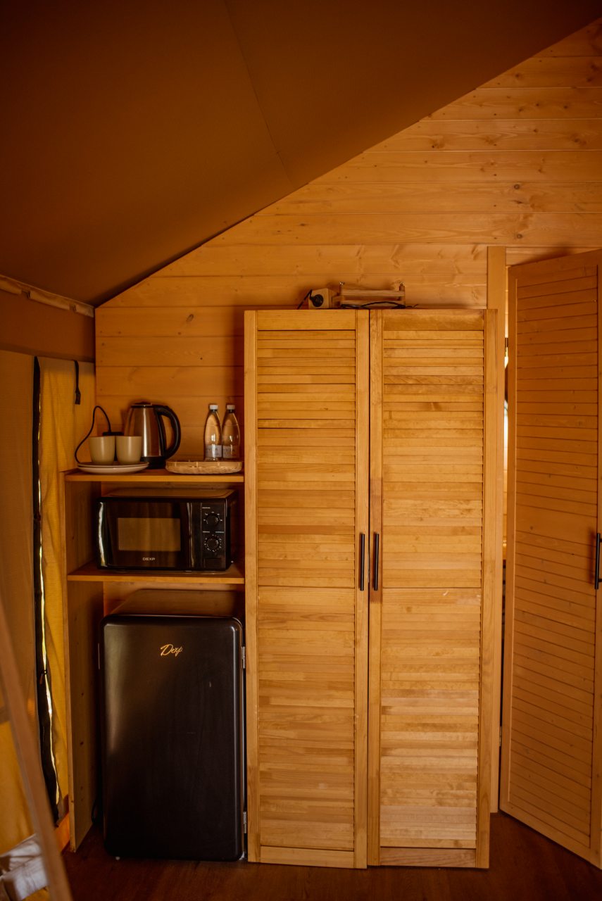 К услугам гостей: просторные палатки и шатры, оснащенные комфортабельной мебелью, удобными спальными местами. Ванная комната оборудована душевой кабиной, санузлом. Также проживающие могут воспользоваться беспроводной сетью интернет.