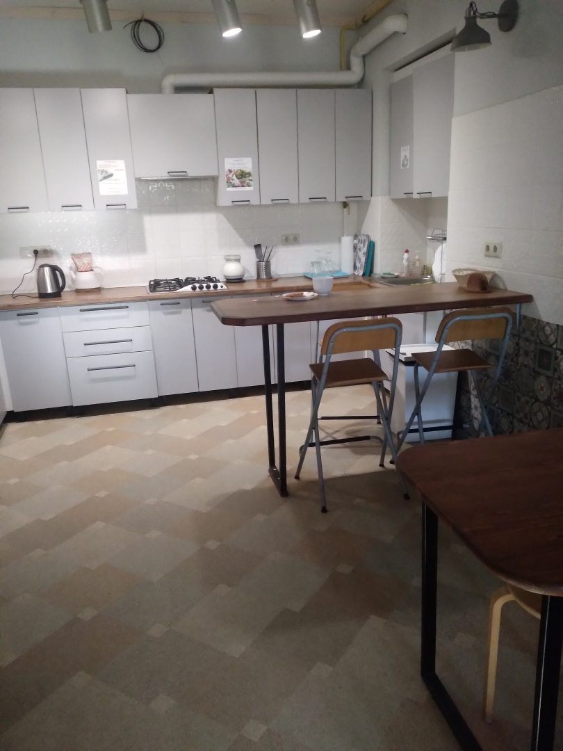 Общая кухня обустроена всей необходимой техникой и приборами для приготовления пищи. В шаговой доступности есть рестораны и продуктовые магазины.