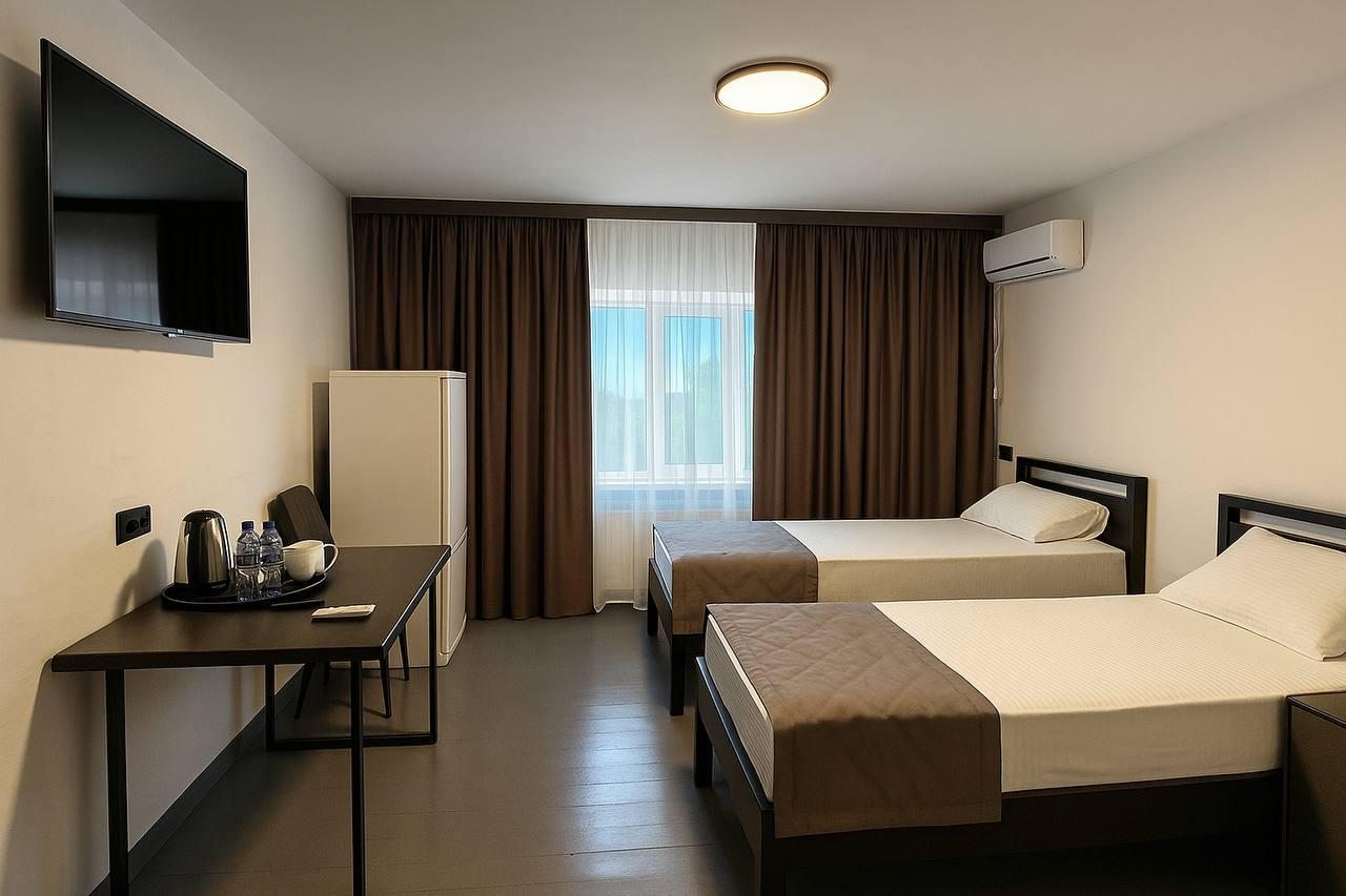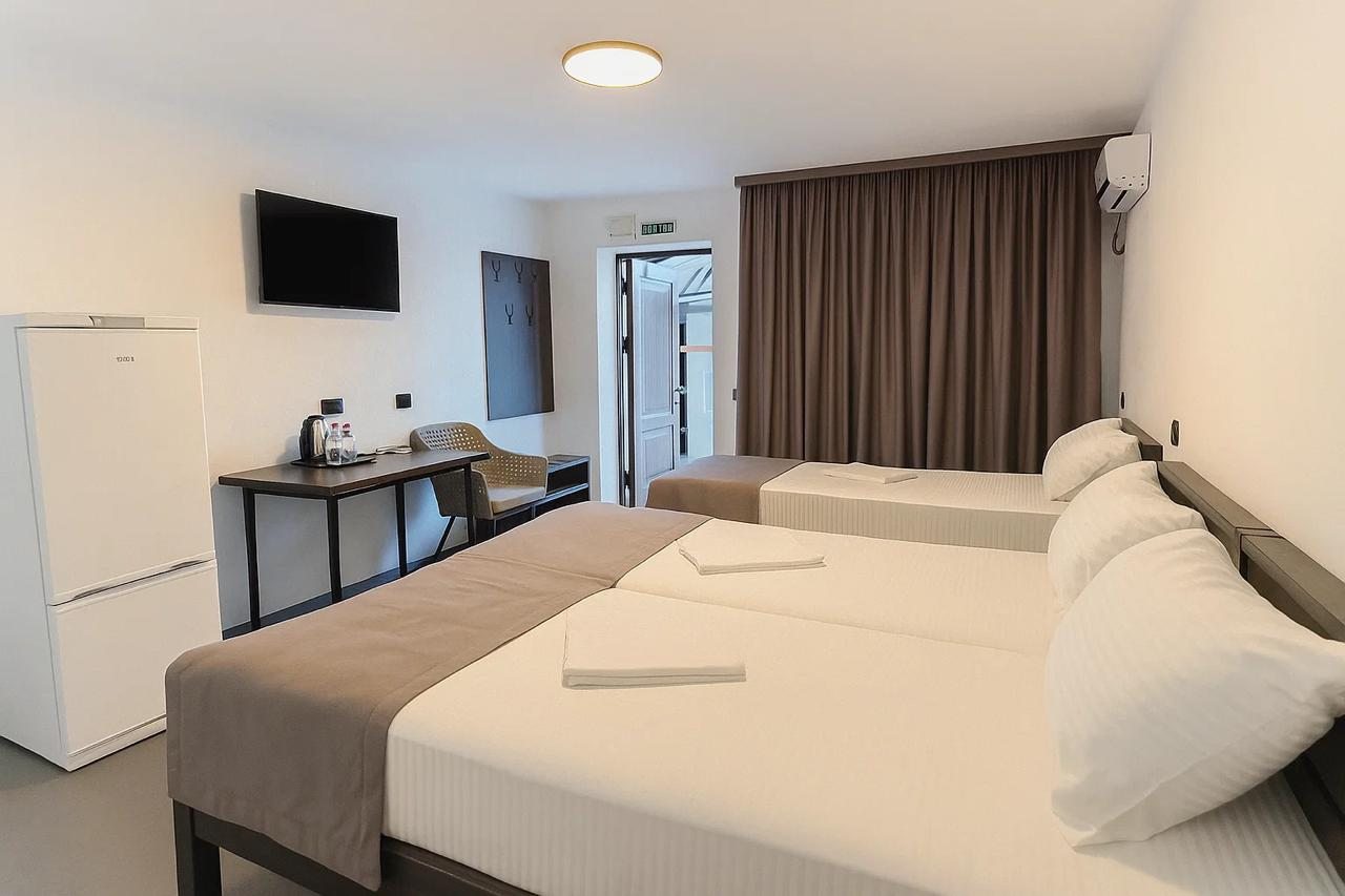 Для пребывания подготовлены номера вместительностью от двух до четырех человек. Они выполнены в современном стиле. К услугам гостей: удобное спальное место, стол, телевизор, телевизор, кондиционер. В санузле имеется фен и средства гигиены.