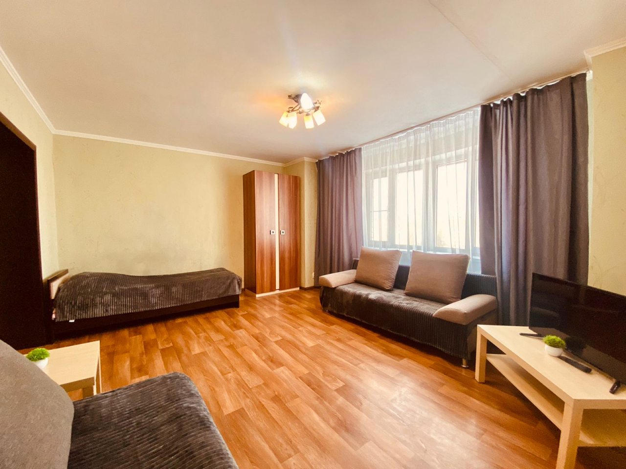 В апартаментах есть удобные спальные места, телевизор, шкаф для хранения вещей, ванная комната со всеми необходимыми принадлежностями, тумбочки.