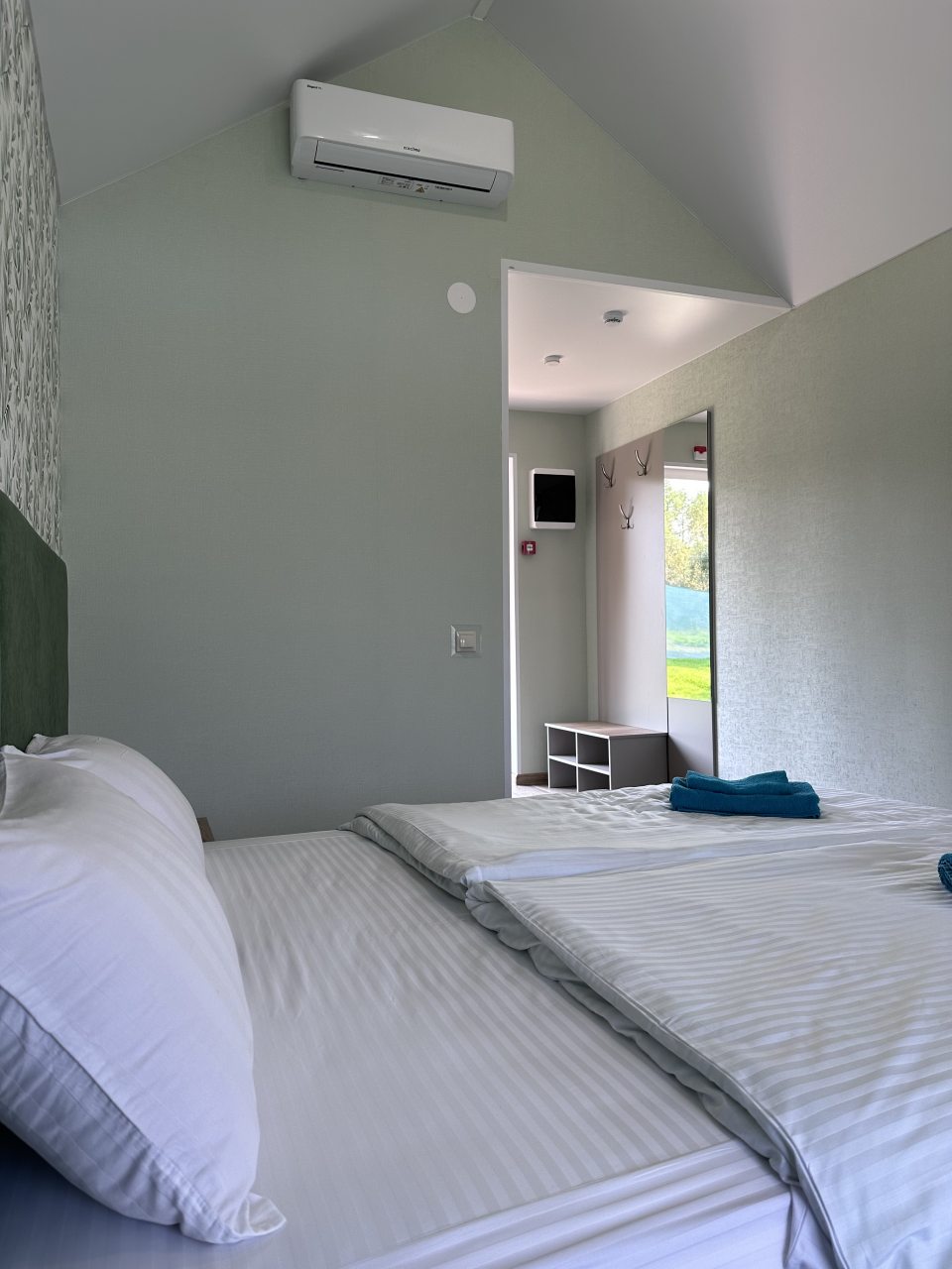 Прекрасная природа, современный интерьер, кондиционер, чистота в номере, чудесный вид из панорамного окна, своя веранда, чайник, полотенца и пакетики с гелемшампунем.