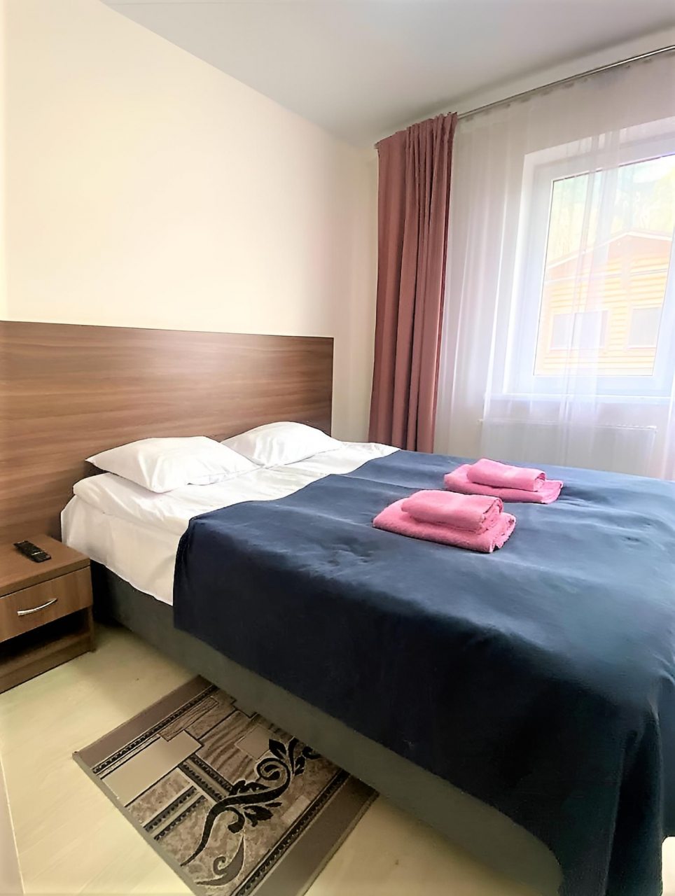 В номерах всё продумано для комфорта гостей, включая кровати с удобными матрасами, комплект полотенец, затемнённые шторы, санузел с душевой кабиной и другой необходимой сантехникой. Из номеров открываются прекрасные виды на горы.