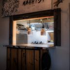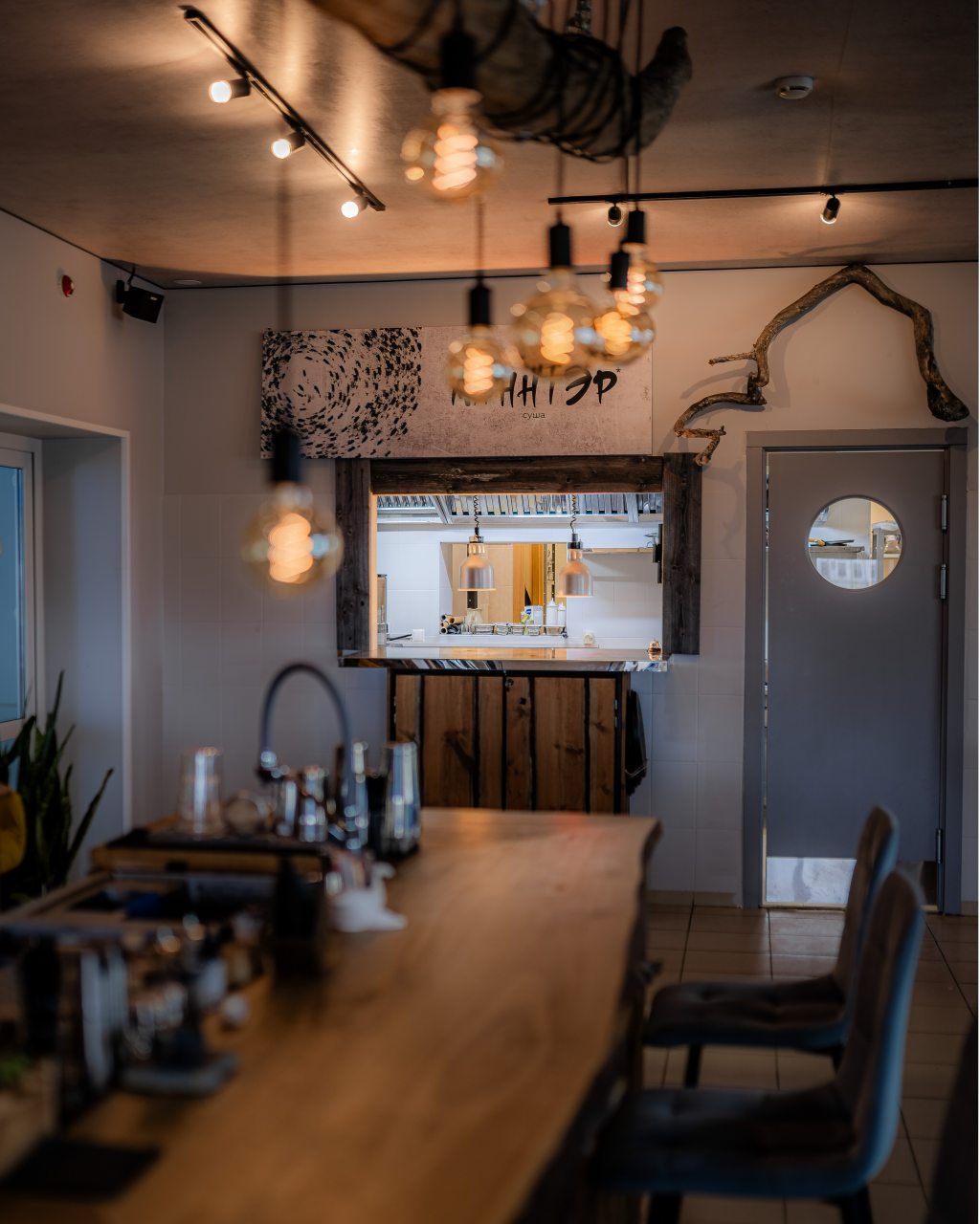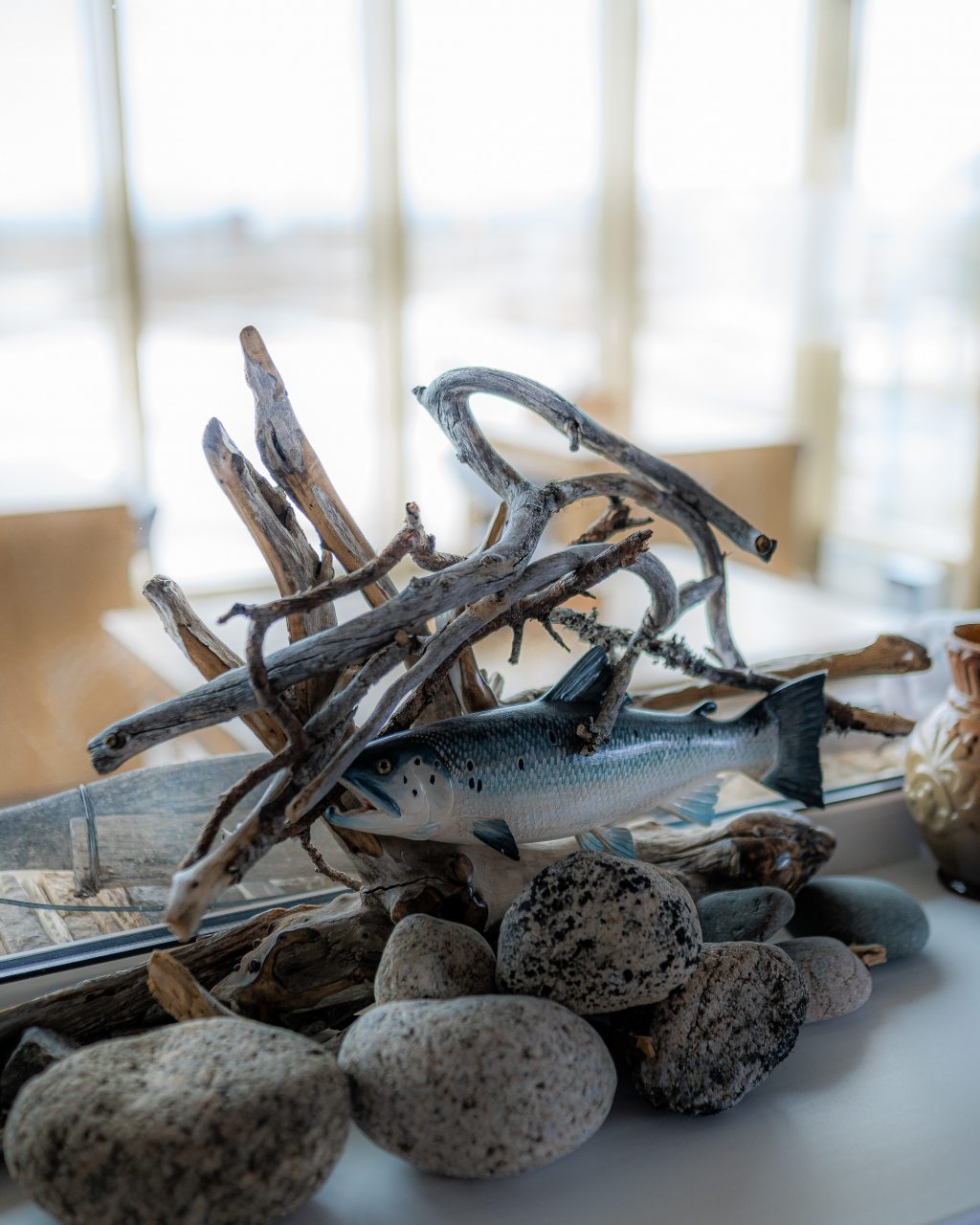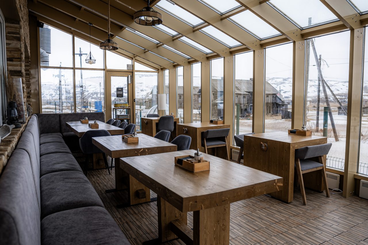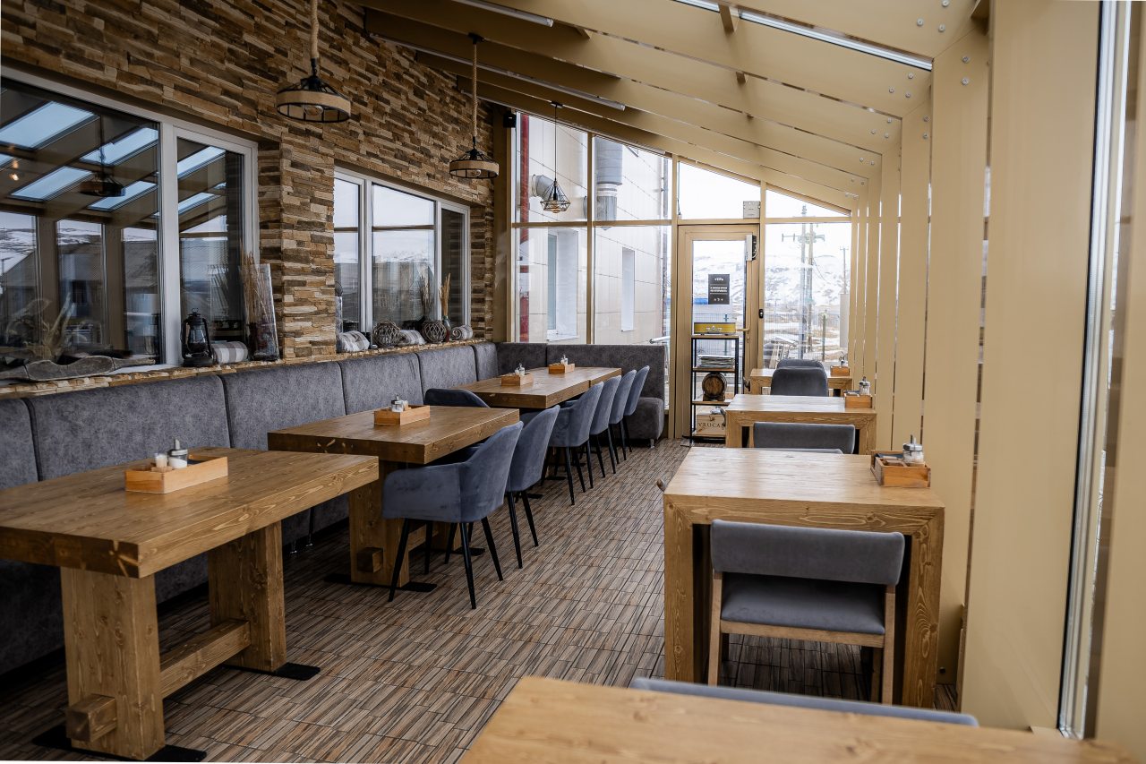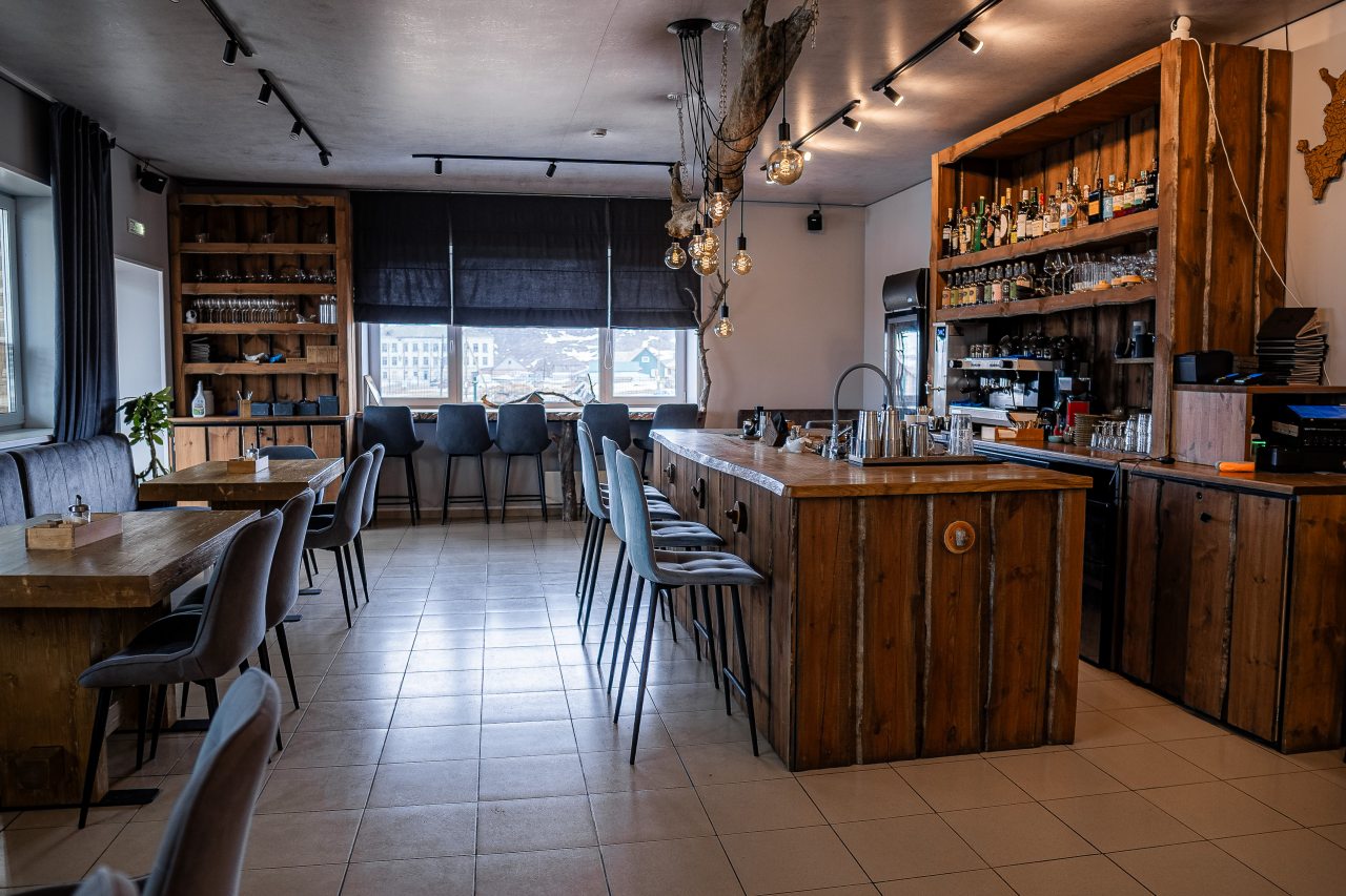 На первом этаже гостиницы работает ресторан с открытой кухней. На выбор гостей предоставляется два комфортабельных зала, один из которых имеет панорамный вид на Баренцово море.