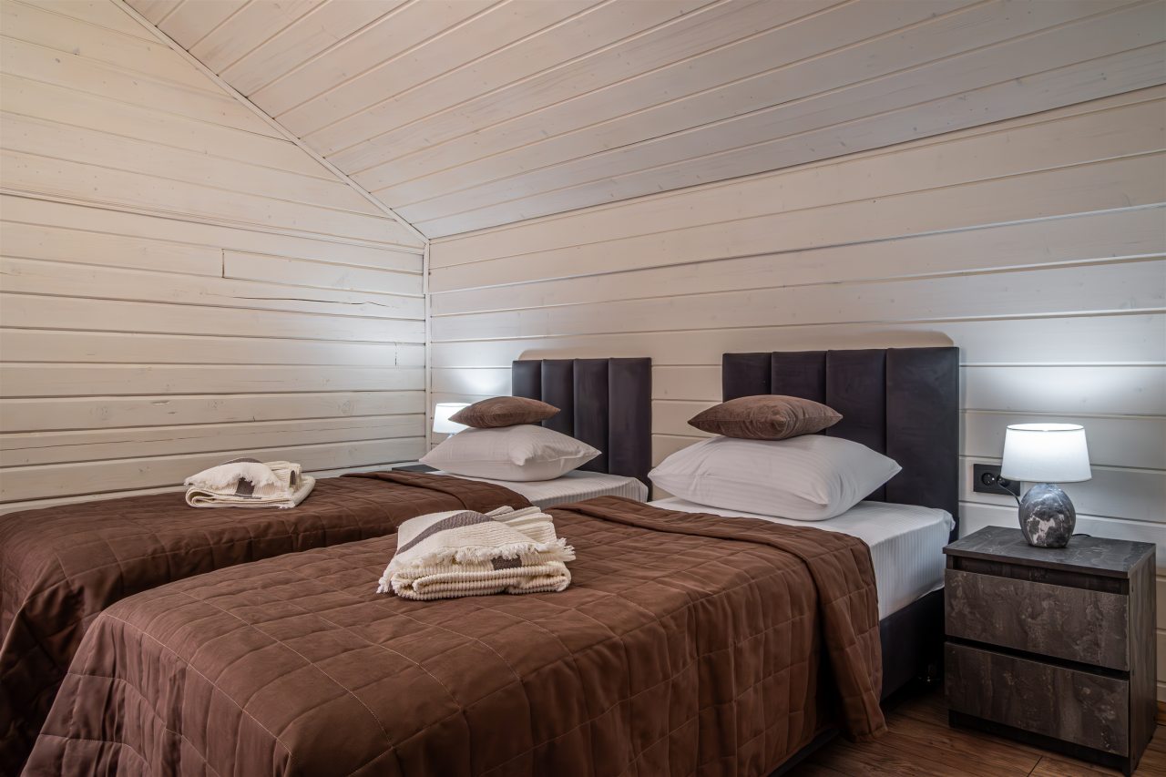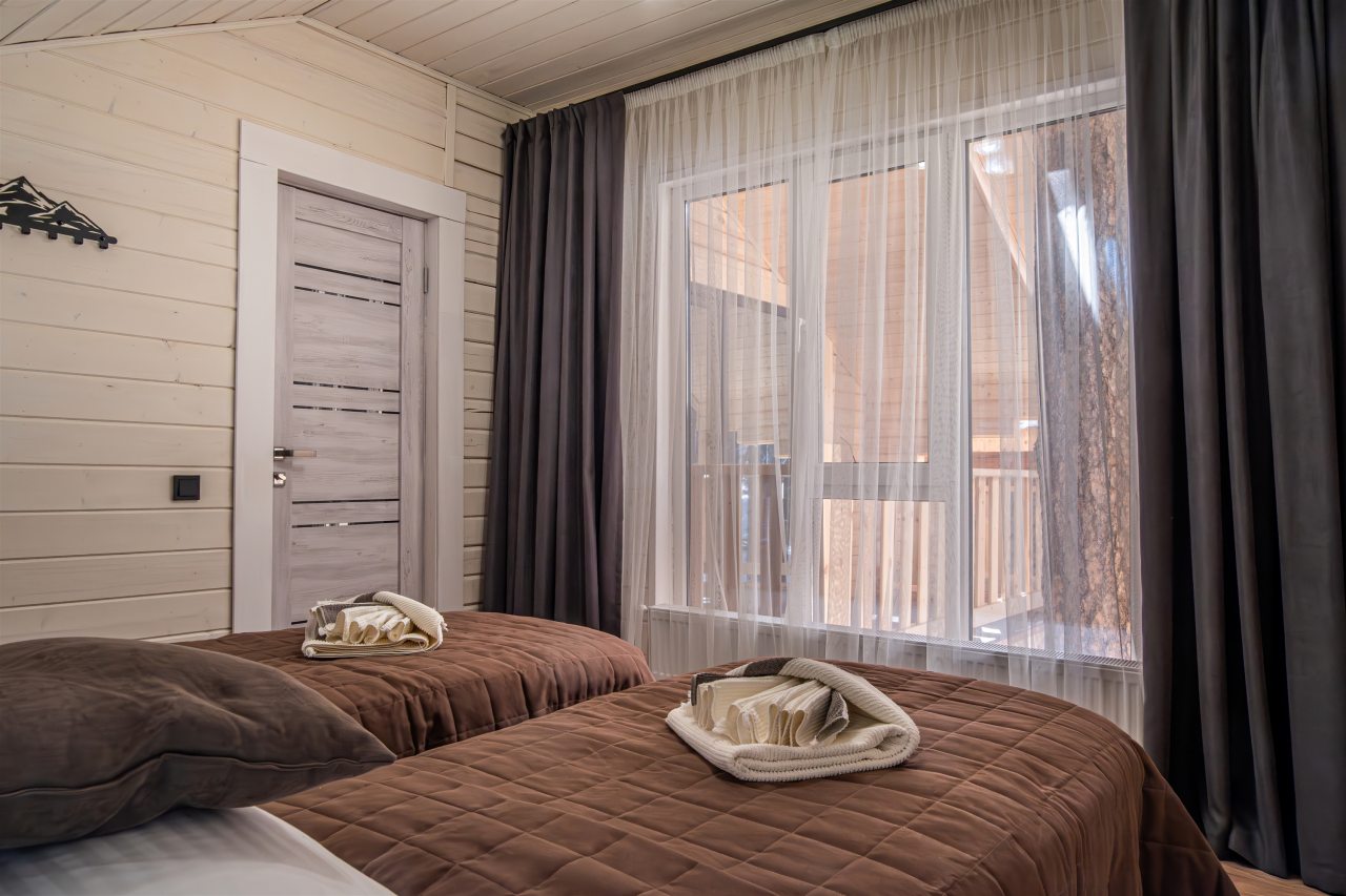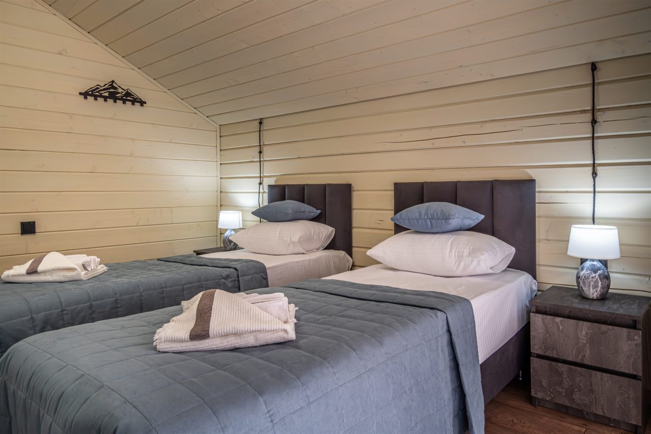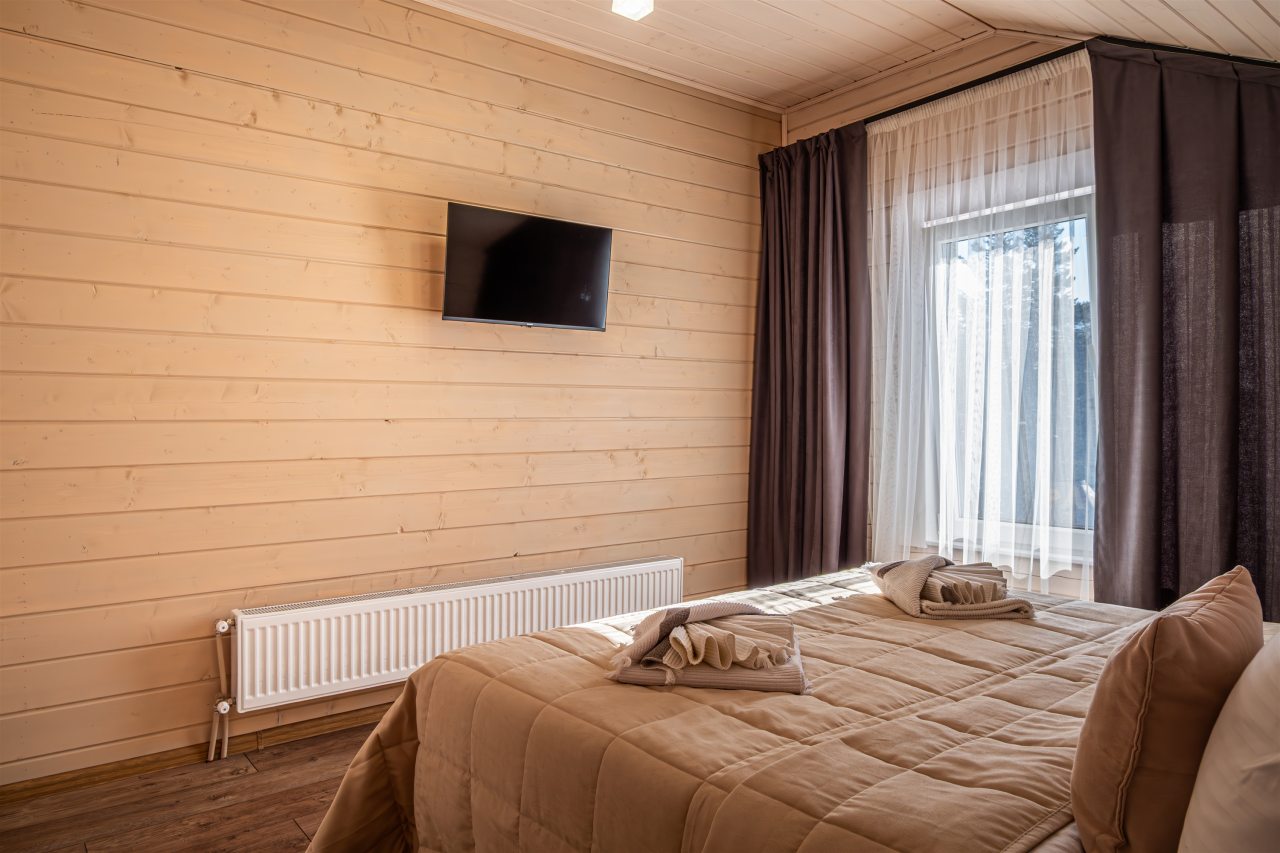 Гостям предлагается разместиться в уютных коттеджах, где есть все для качественного отдыха и жизни, в том числе мягкая кровать, свежие полотенца, выглаженное постельное белье, телевизор, места для хранения вещей, доступ в интернет. В ванной комнате вы найдете все необходимое: стиральную машину, душ, фен, тапочки и необходимые косметические средства.