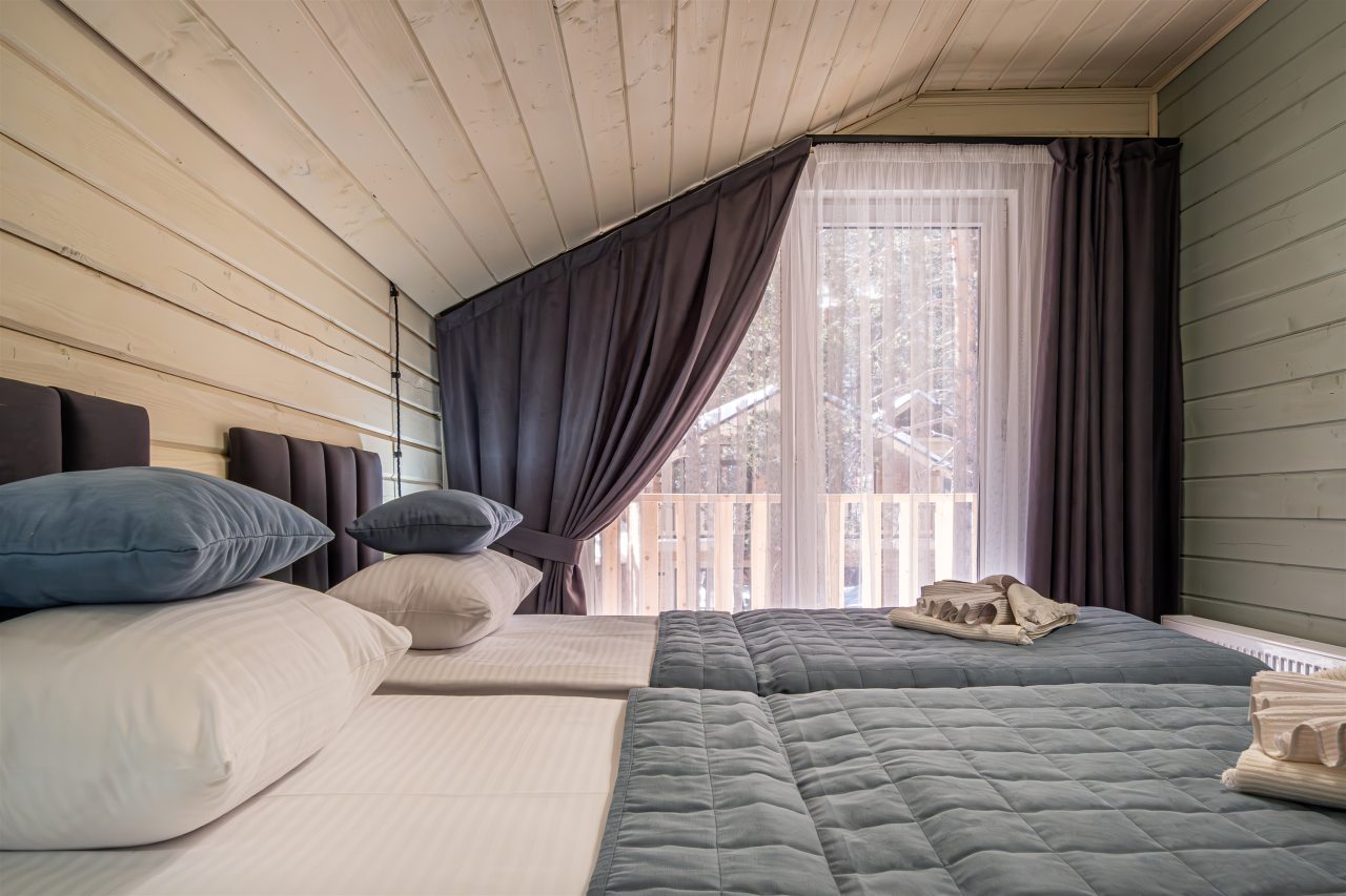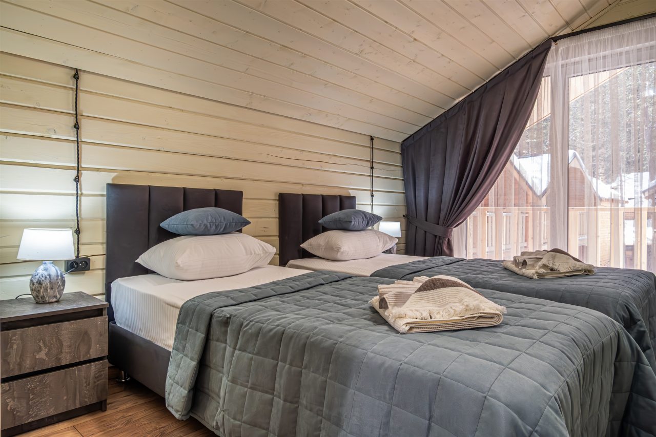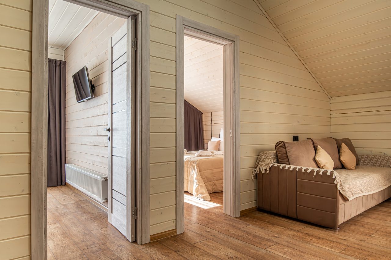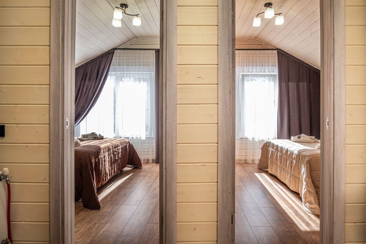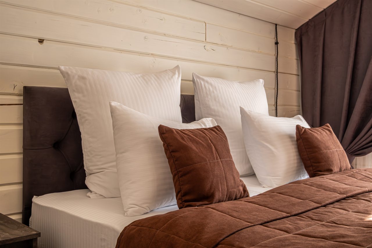Гостям предлагается разместиться в уютных коттеджах, где есть все для качественного отдыха и жизни, в том числе мягкая кровать, свежие полотенца, выглаженное постельное белье, телевизор, места для хранения вещей, доступ в интернет. В ванной комнате вы найдете все необходимое: стиральную машину, душ, фен, тапочки и необходимые косметические средства.