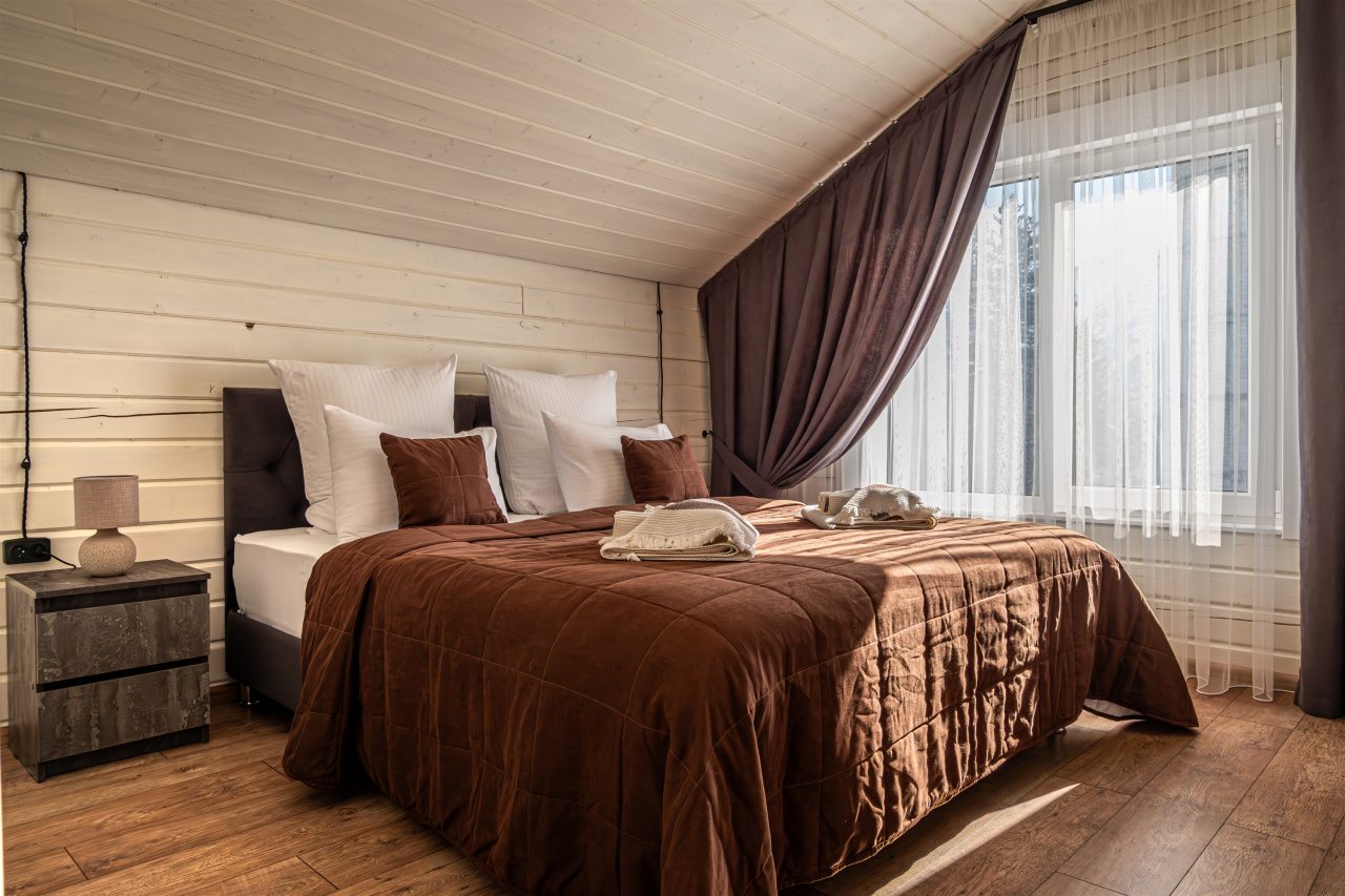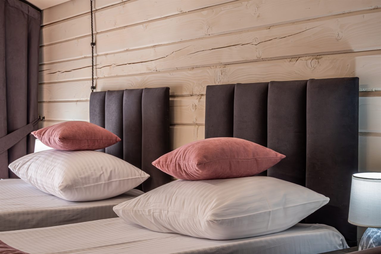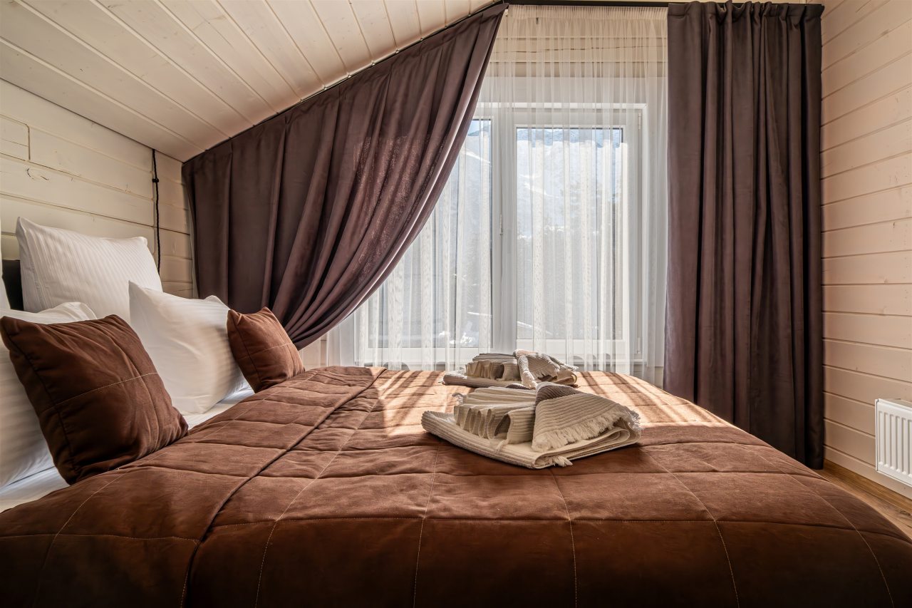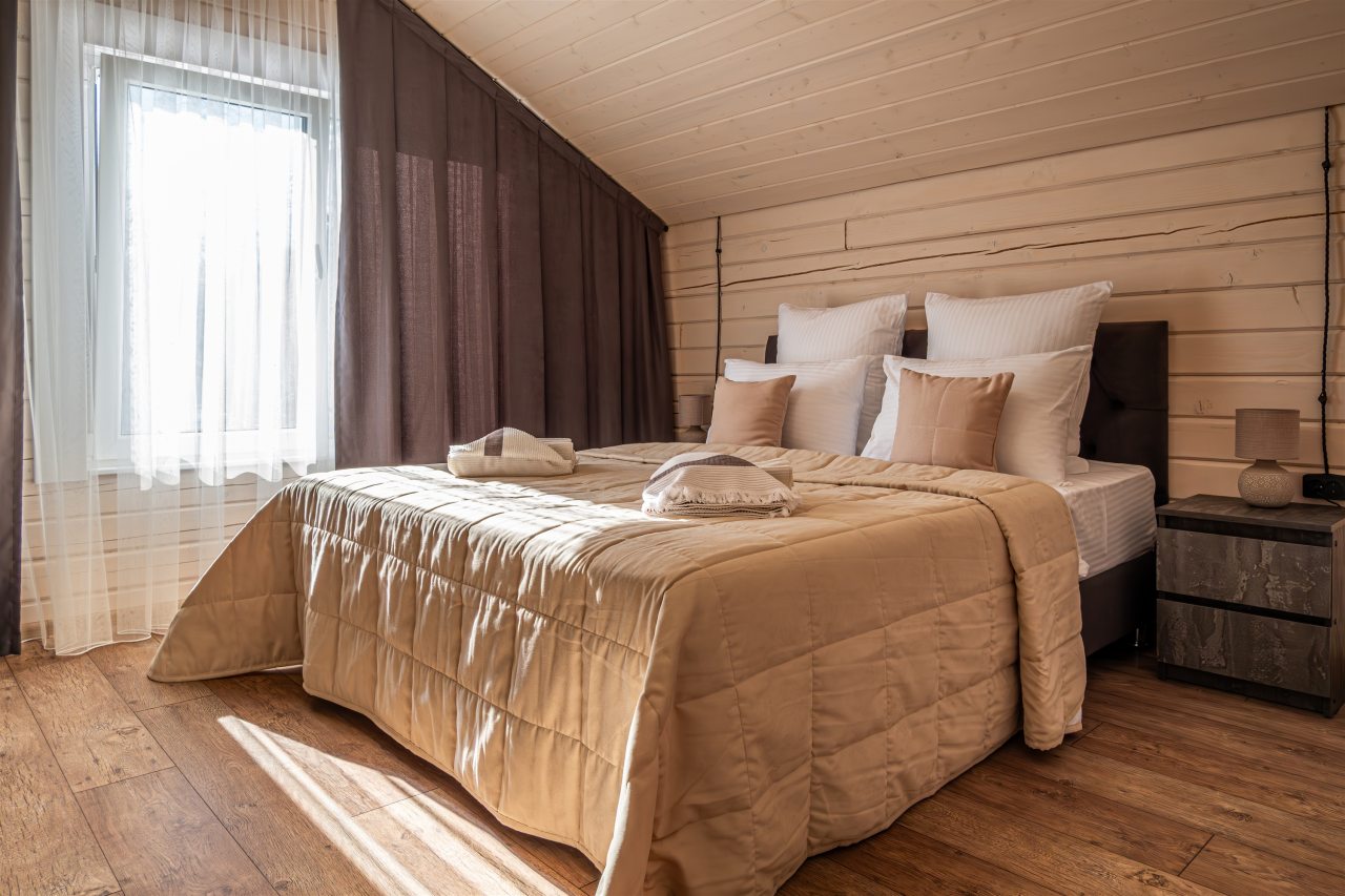Гостям предлагается разместиться в уютных коттеджах, где есть все для качественного отдыха и жизни, в том числе мягкая кровать, свежие полотенца, выглаженное постельное белье, телевизор, места для хранения вещей, доступ в интернет. В ванной комнате вы найдете все необходимое: стиральную машину, душ, фен, тапочки и необходимые косметические средства.