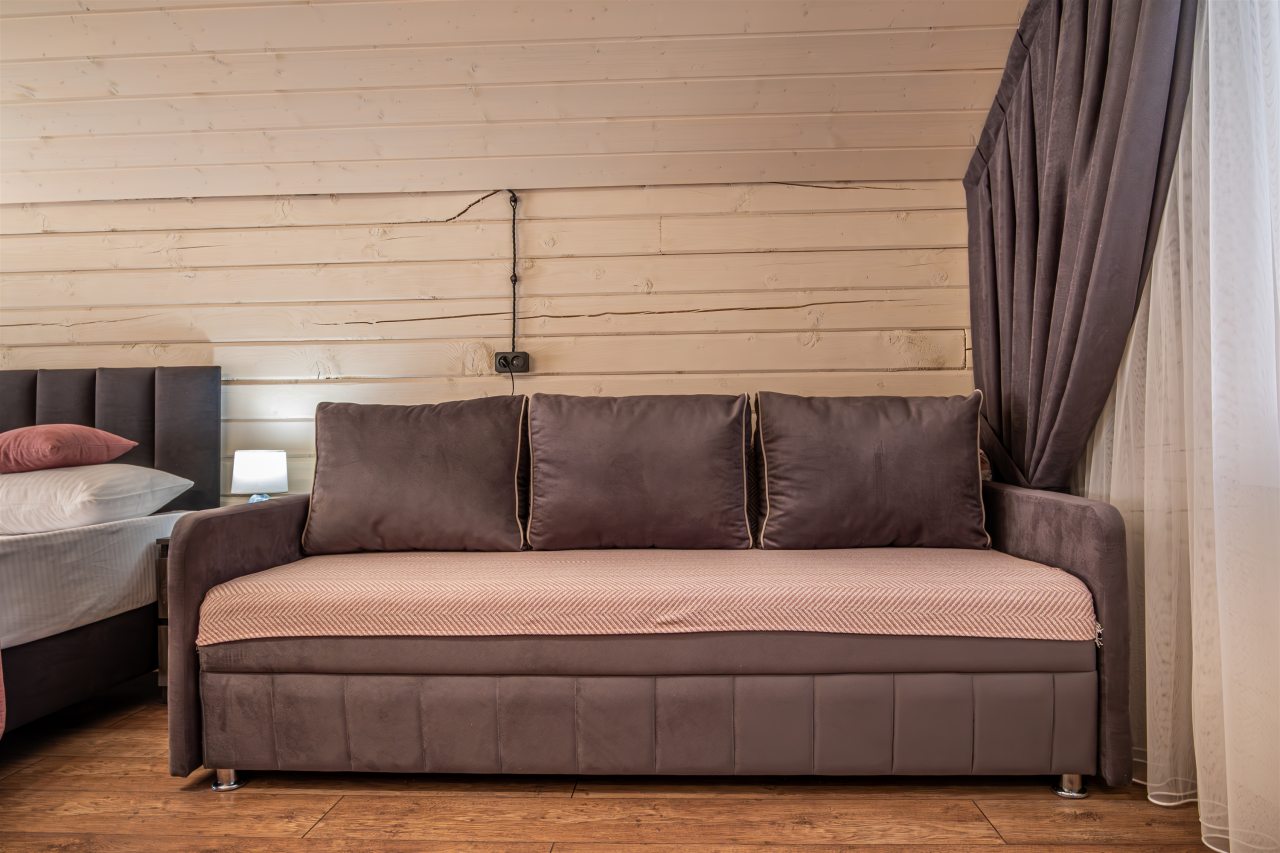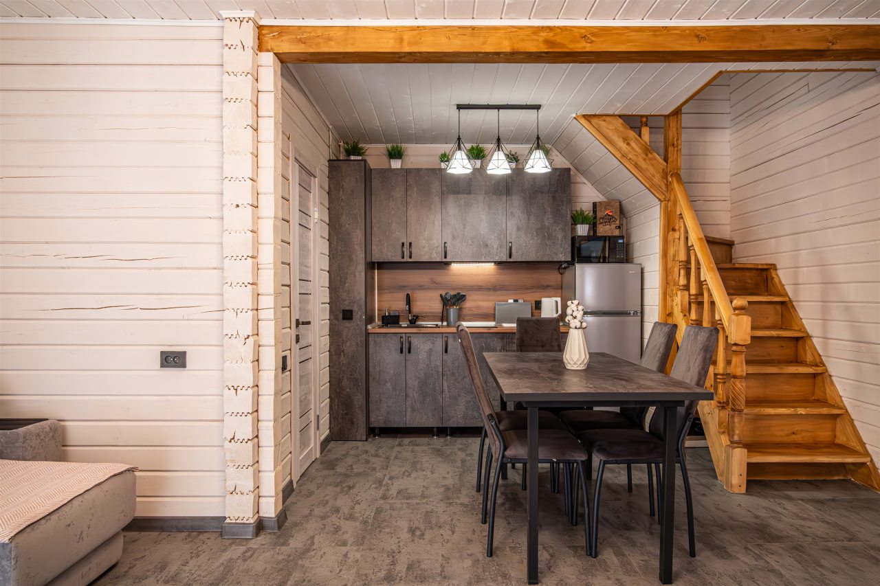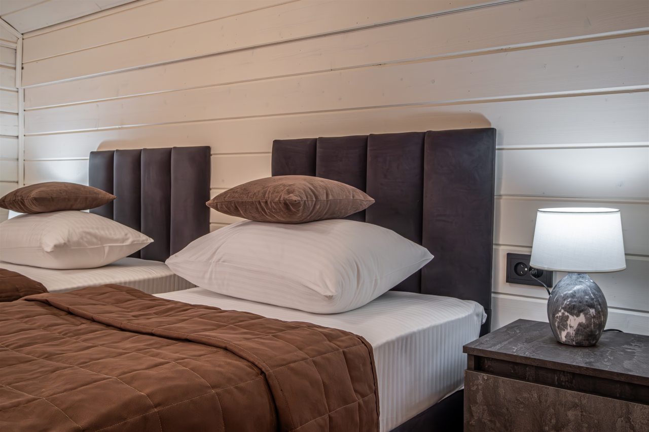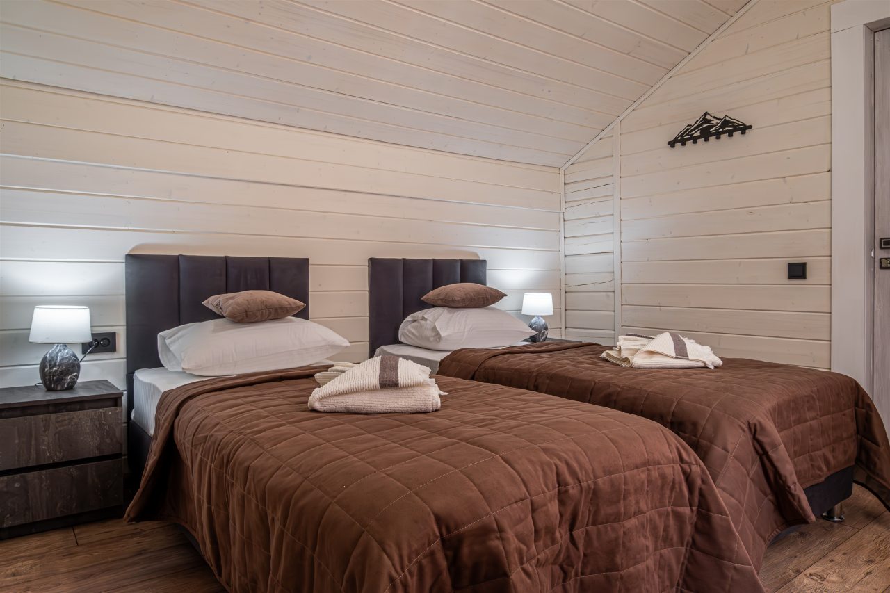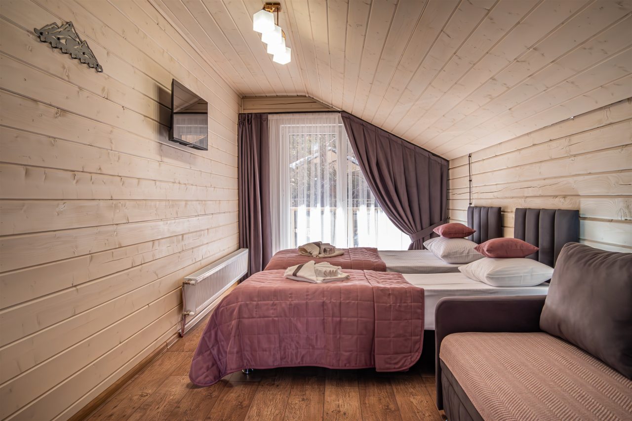 Гостям предлагается разместиться в уютных коттеджах, где есть все для качественного отдыха и жизни, в том числе мягкая кровать, свежие полотенца, выглаженное постельное белье, телевизор, места для хранения вещей, доступ в интернет. В ванной комнате вы найдете все необходимое: стиральную машину, душ, фен, тапочки и необходимые косметические средства.