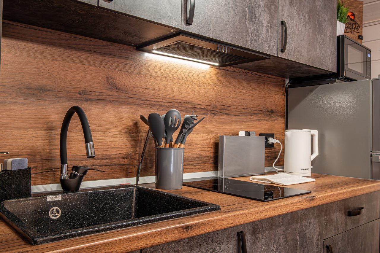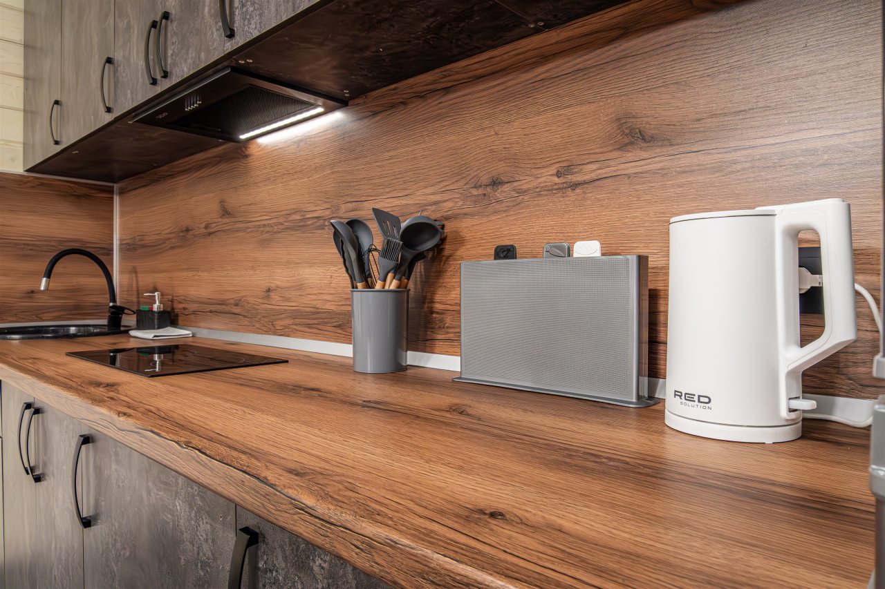 Уютная кухня располагает к неспешной трапезе и приготовлению любимых домашних блюд. Варочная панель, микроволновая печь, электрический чайник, посуда и холодильник — в наличии. Также доступен мангал. В распоряжении гостей сахар, чай и кофе. Поблизости расположены кафе и магазины.
