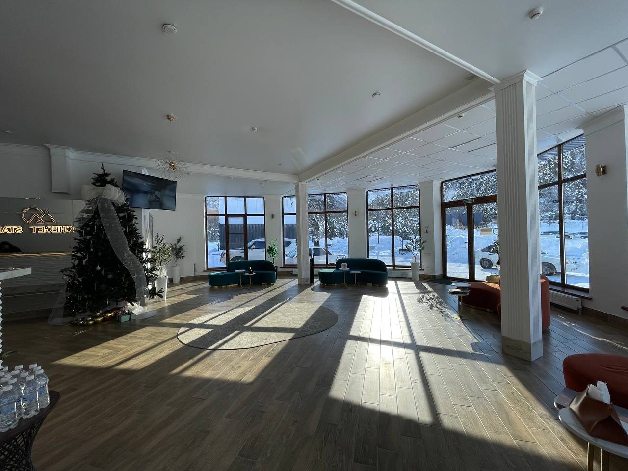 Отель находится в роскошном месте и такое же отменное качество предлагает. Красивый интерьер наблюдается не только в холлах и в коридоре, но и в номерах. Лыжные трассы в шаговой доступности, также рядом и канатная дорога. Можно покататься на лошадях, посетить ресторан. По местности организуют классные экскурсии. Очень хорошо!