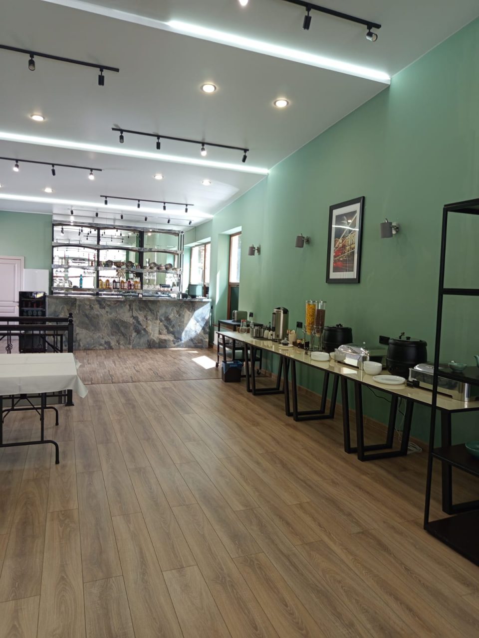 На втором этаже отеля работает кафе, где организовано питание гостей.