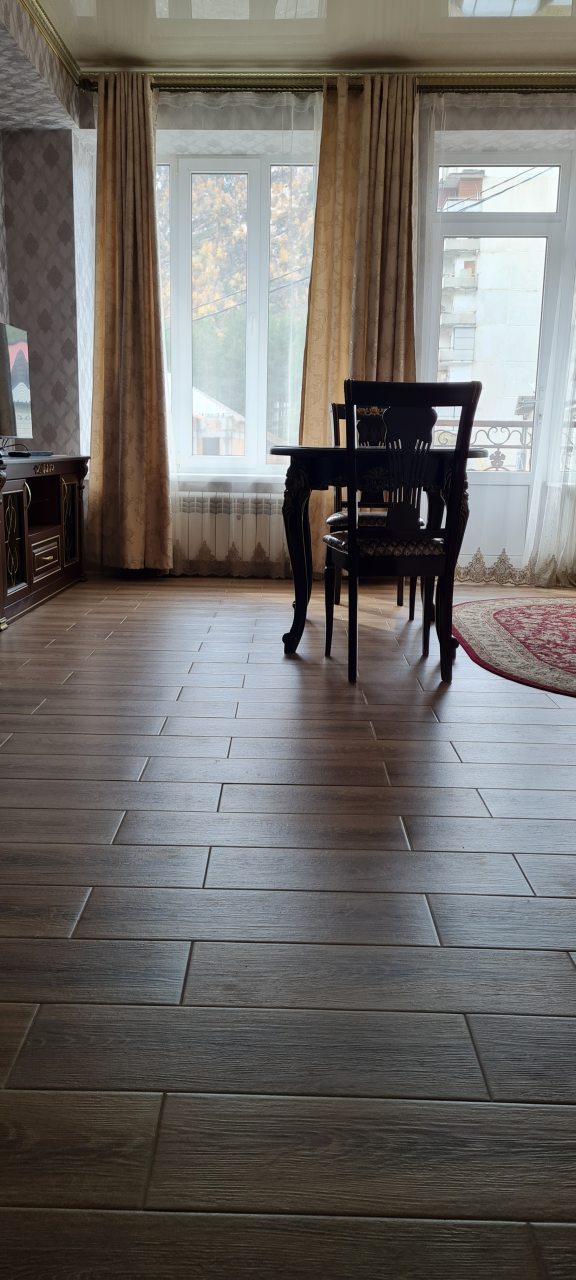 Здание отеля почти в центре города, рядом есть канатная дорога. Мебель в номере была в неплохом состоянии, но уборка могла быть и лучше. В жилой комнате был телевизор с компьютером. Есть сауна с бассейном. Не очень понравилось оформление ресторана.