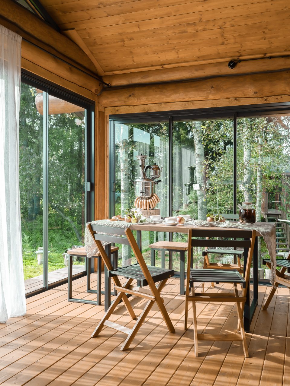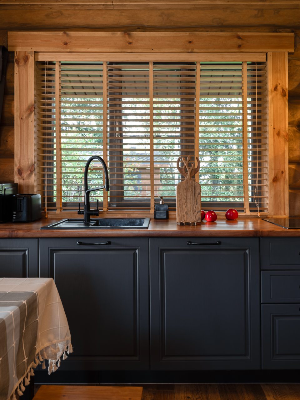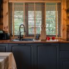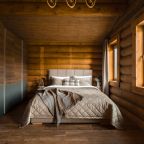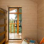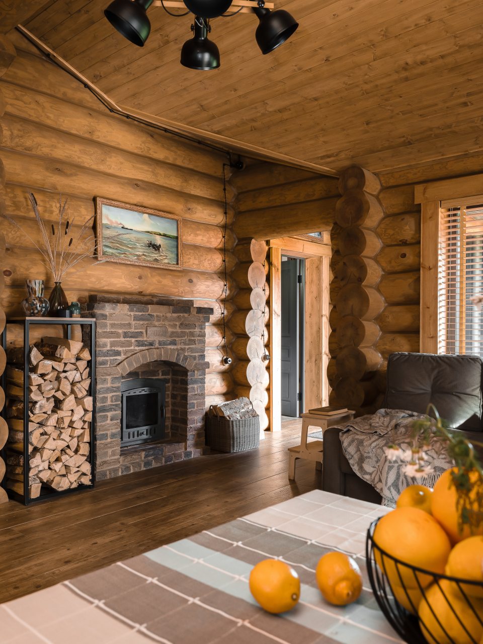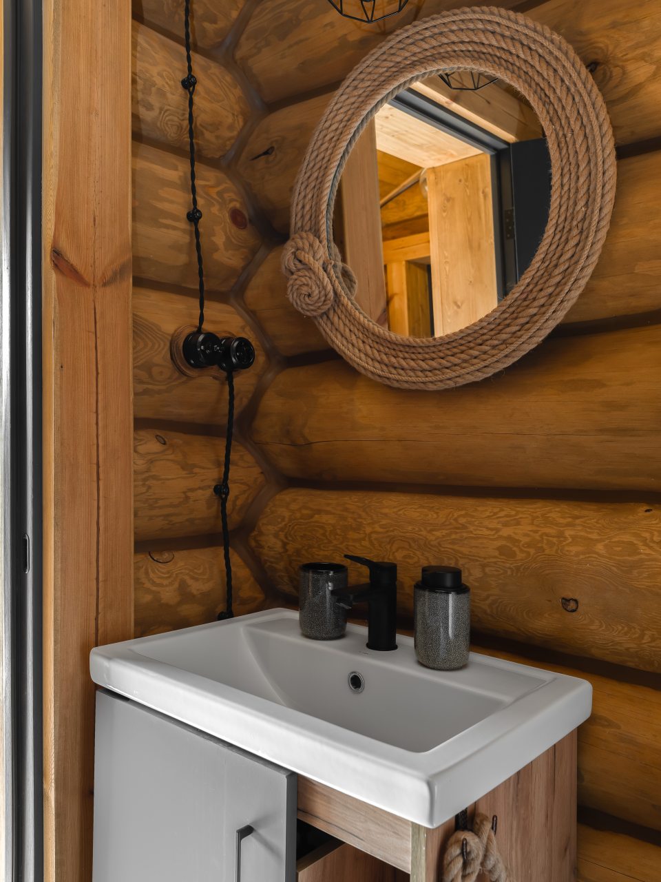 Внутри есть как спальня с удобной двуспальной кроватью, так и детская с диваном и односпальной кроватью. Также имеется уютная зона отдыха с вместительным диваном и печью. Санузел укомплектован полотенцами, стиральной машиной и необходимой сантехникой.