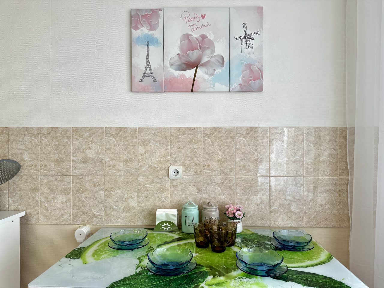 На кухне установлена плита, холодильник, микроволновая печь, есть посуда и столовые приборы. Поблизости работают продуктовые магазины, пекарня, рестораны.