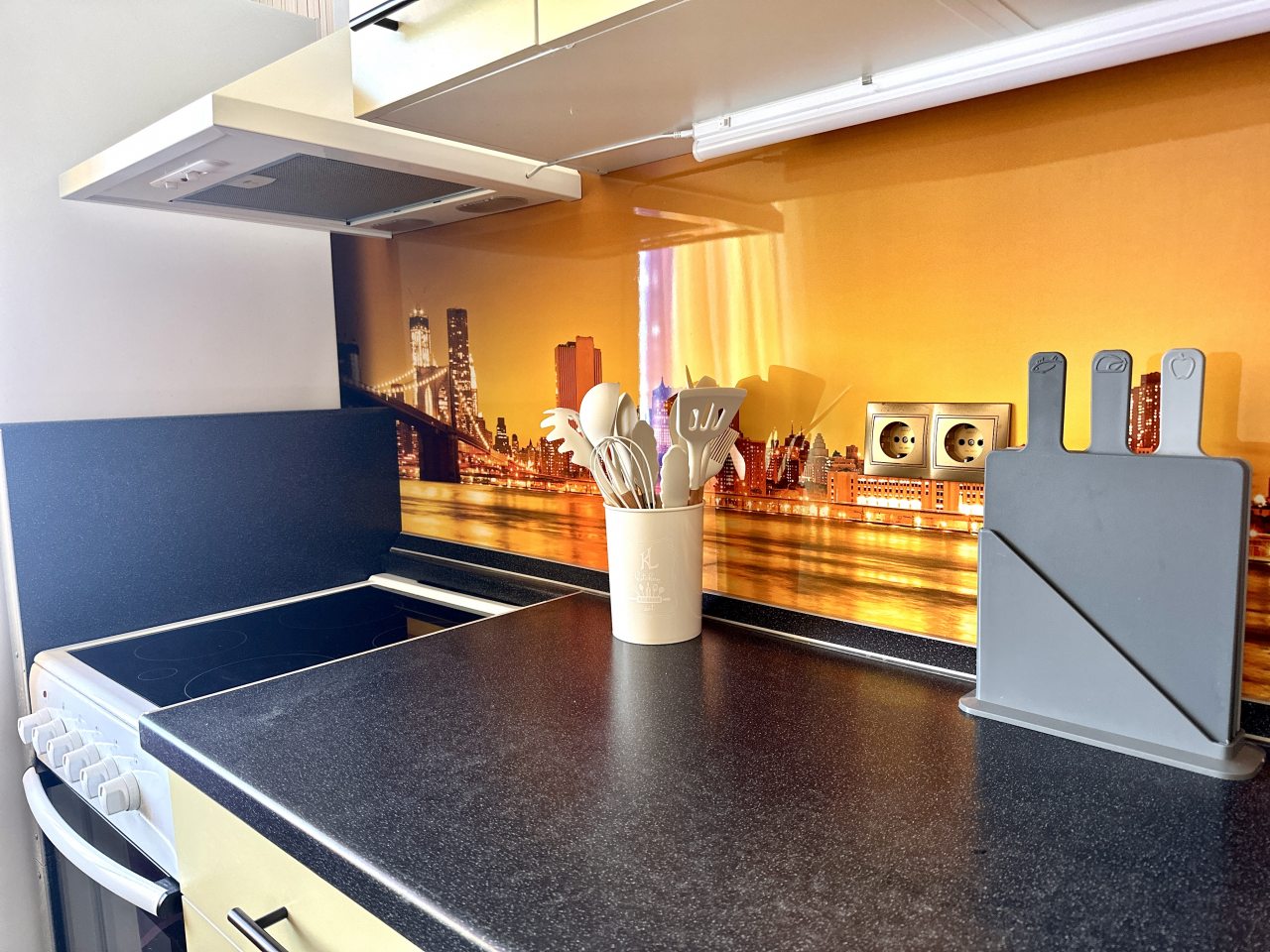 В распоряжении гостей предоставляется квартира с современным ремонтом и оформлением. Для отдыха она оснащена диваном, кроватью, рабочим столом, а также в наличии гладильные принадлежности и средства для душа. В квартире проведен интернет, чтобы вы могли оставаться в курсе событий.