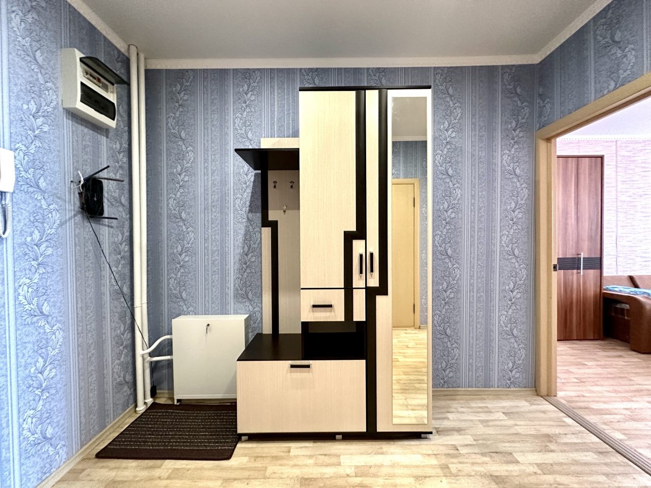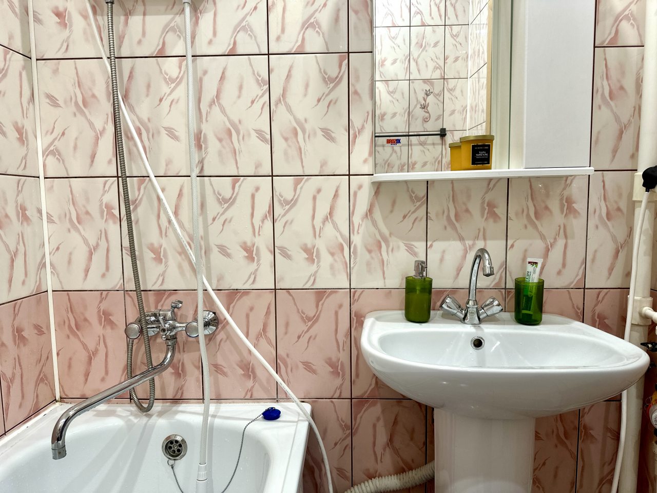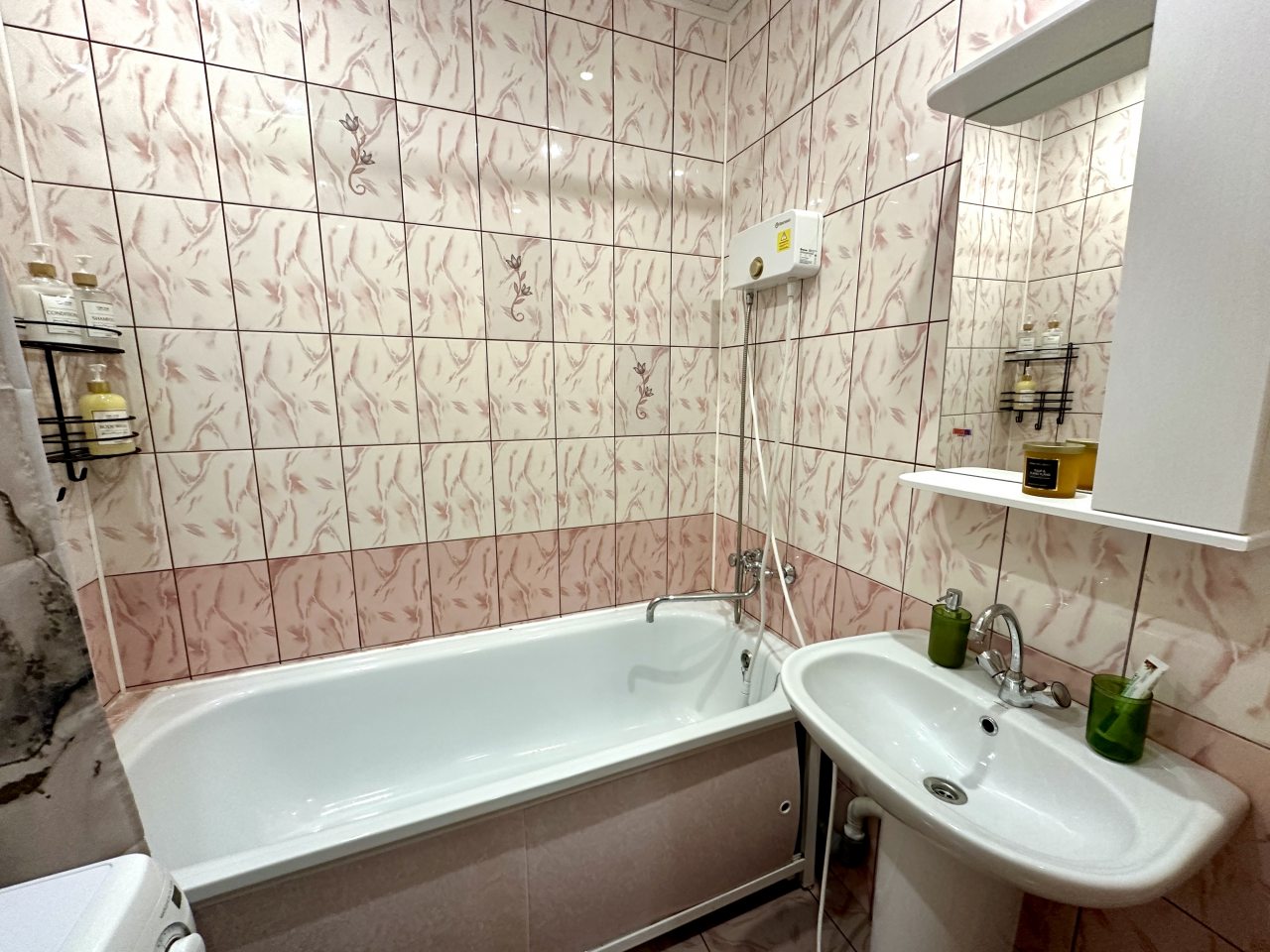 Интерьер апартаментов оформлен в современном стиле и в оснащение входит удобная мебель и техника: диван, телевизор для просмотров любимых передач, вместительный шкаф. В ванной комнате установлена стиральная машина и есть косметические средства.