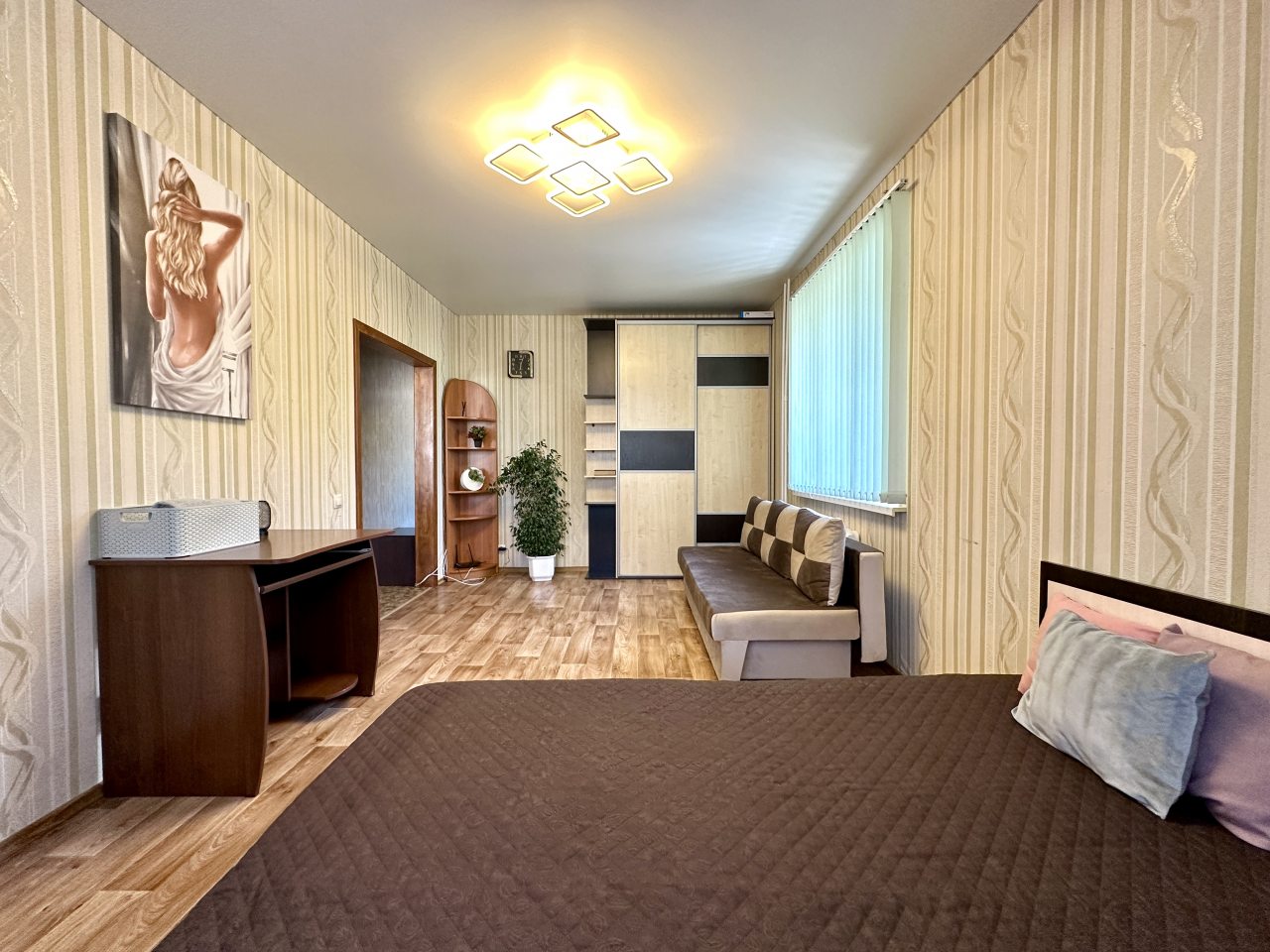 Для отдыха и приятного времяпровождения имеется качественная мебель и техника: кровать, телевизор для просмотра любимых телеканалов, мягкий диван, стол, вместительный шкаф. В ванной комнате представлены косметико-гигиенические средства.