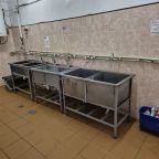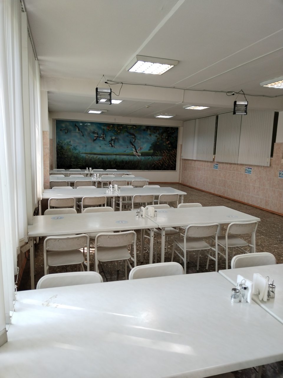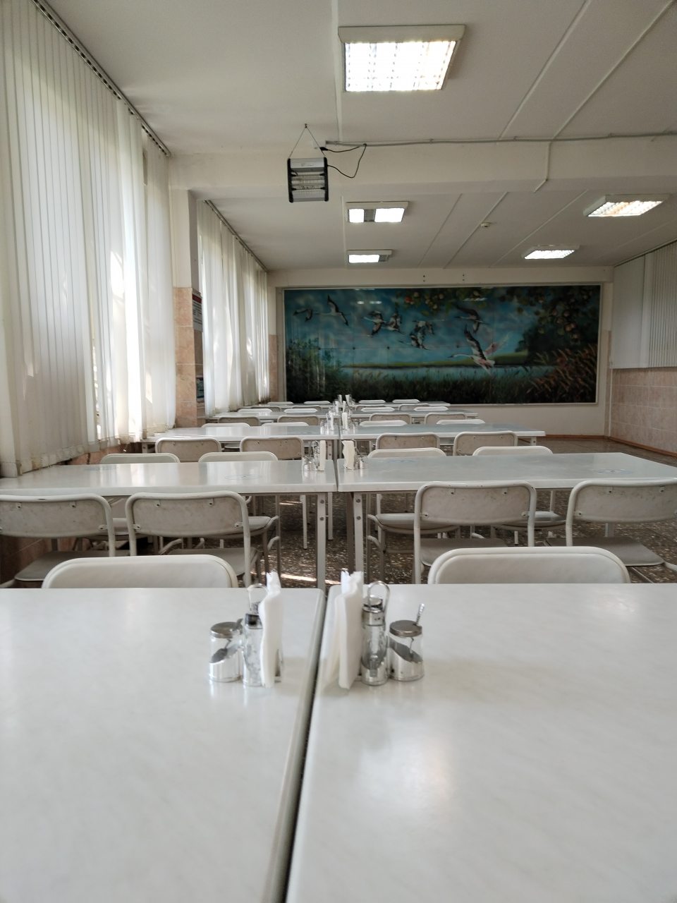 Общая кухня оснащена: плитой, раковиной и необходимой посудой для проявления блюд. Для приема пищи имеется множество столов.