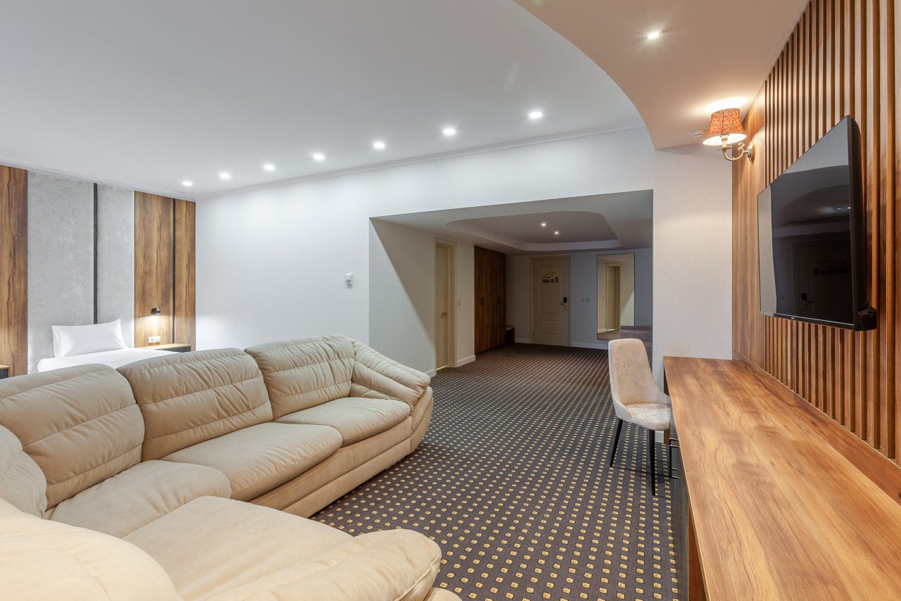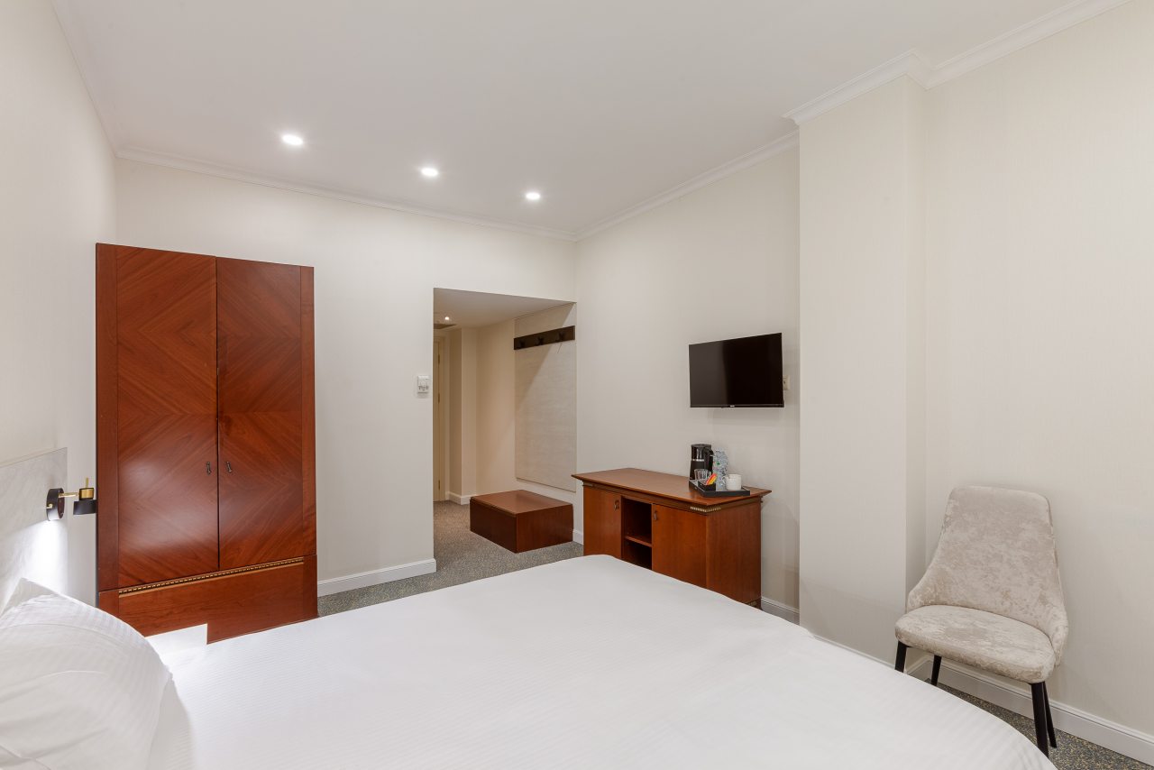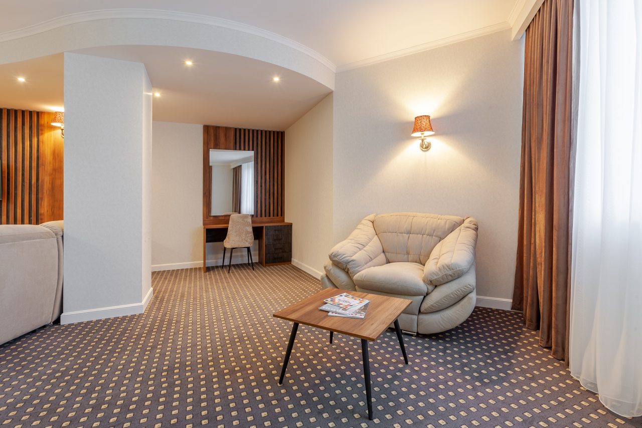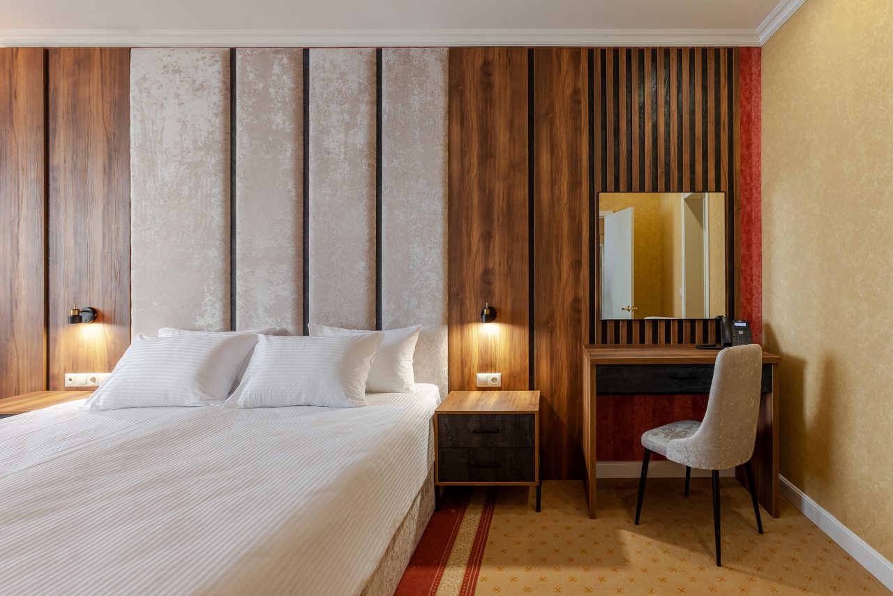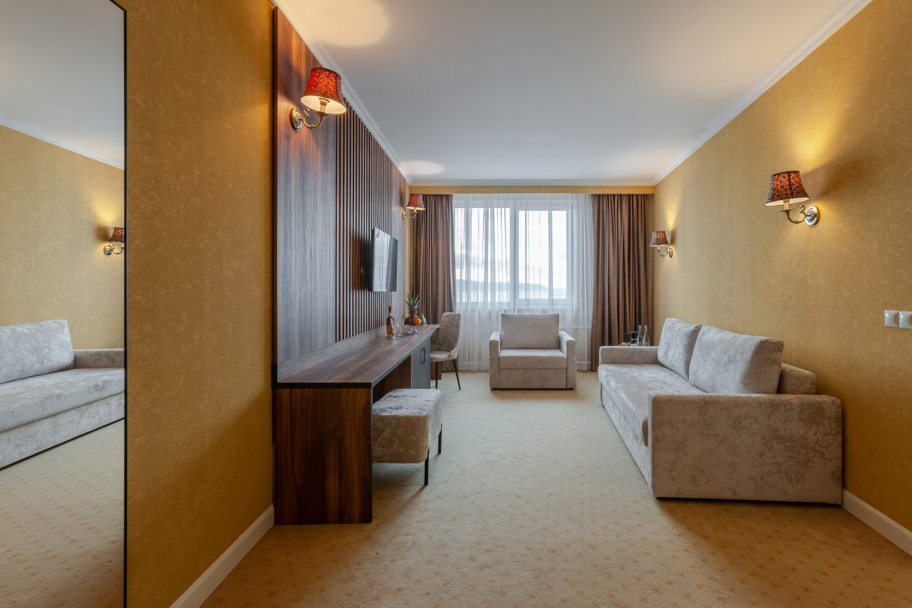 К размещению гостей представлены уютные и просторные двухместные номера. Здесь есть все условия для комфортного проживания: удобные спальные места, качественная мебель, техника, интернет. Ванная комната оснащена необходимыми принадлежностями.