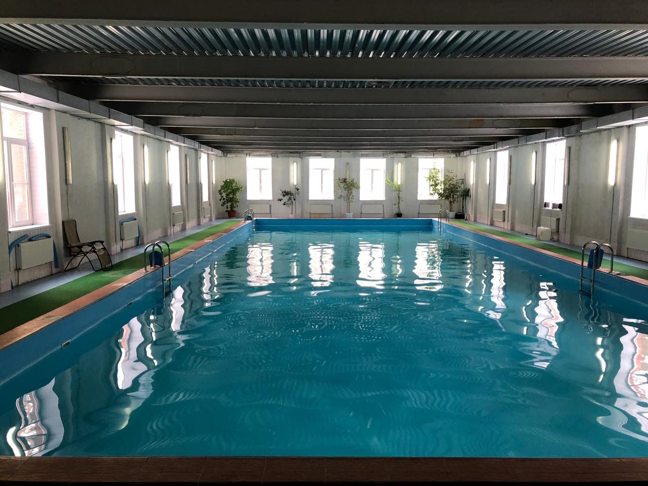 В санатории есть бассейн с теплой водой, где все желающие за 200 р., при наличии купальника и сменной обуви могут поплавать. Шапочку можно принести свою или купить.
