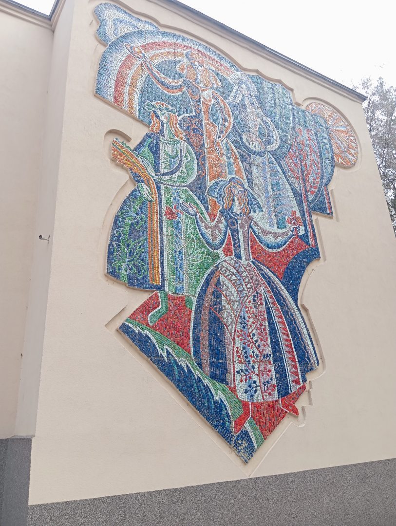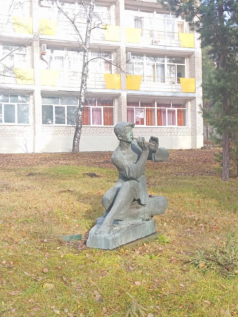 На территории расположены красивые скульптуры советского времени и интересные солнечные часы с цветной мозаикой, но их состояние плачевное - они нуждаются в реставрации, как и ограда санатория.