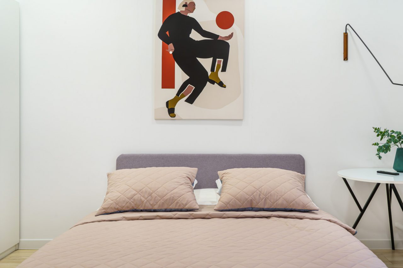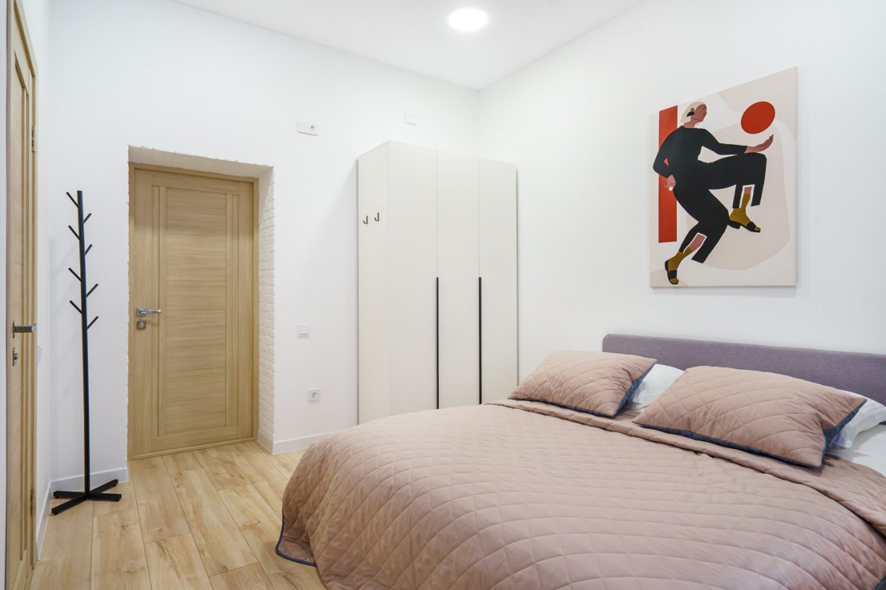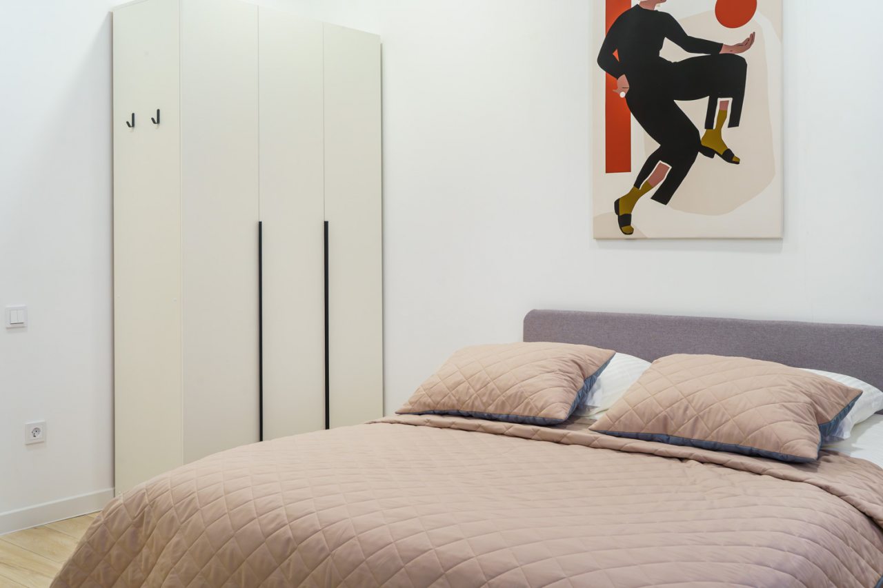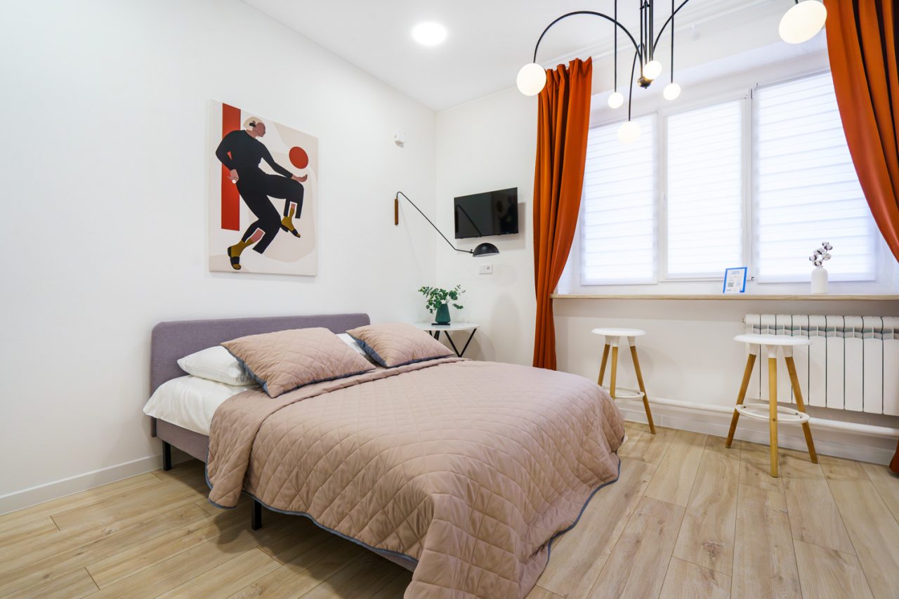 Квартира отличается современным дизайном и вниманием к деталям. Просторные комнаты наполнены светом, создавая приятную атмосферу для отдыха. Удобная кровать позволяет расслабиться после насыщенного дня, а продуманные элементы декора добавляют уюта.