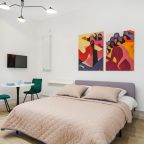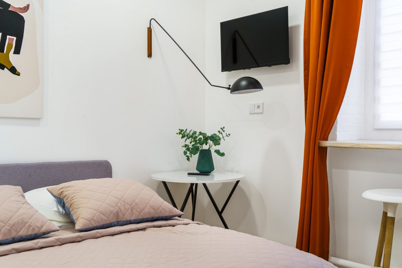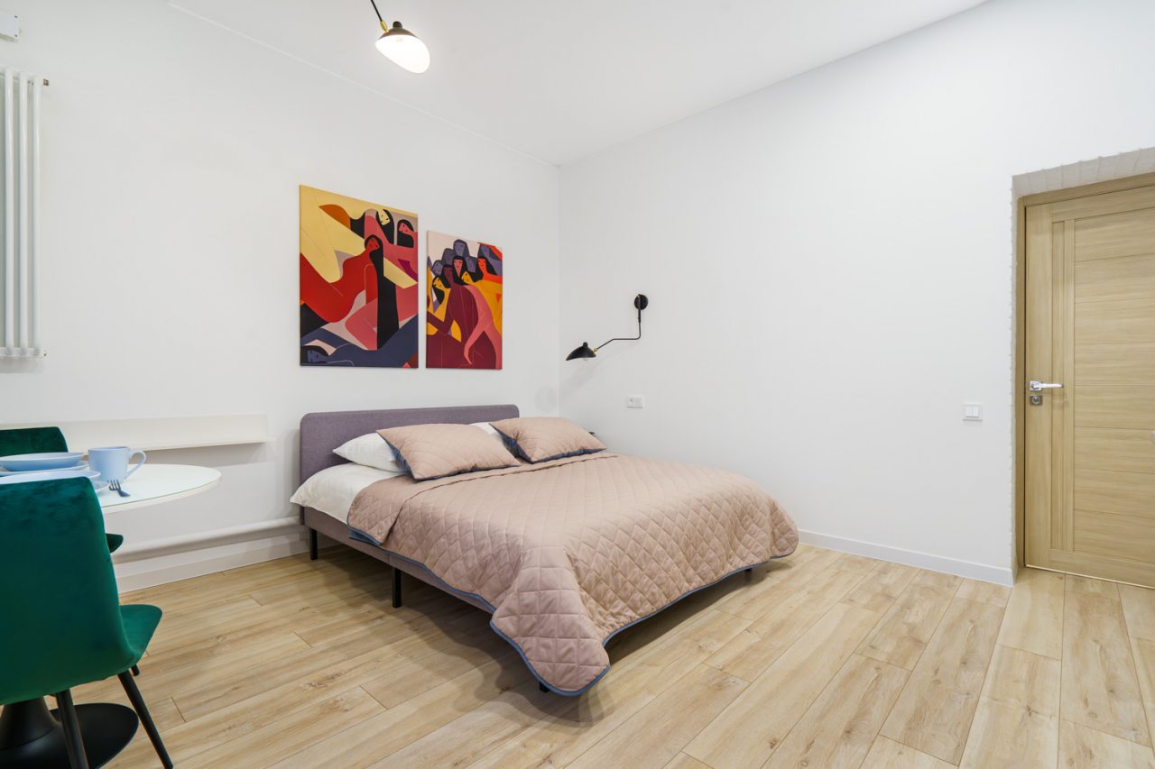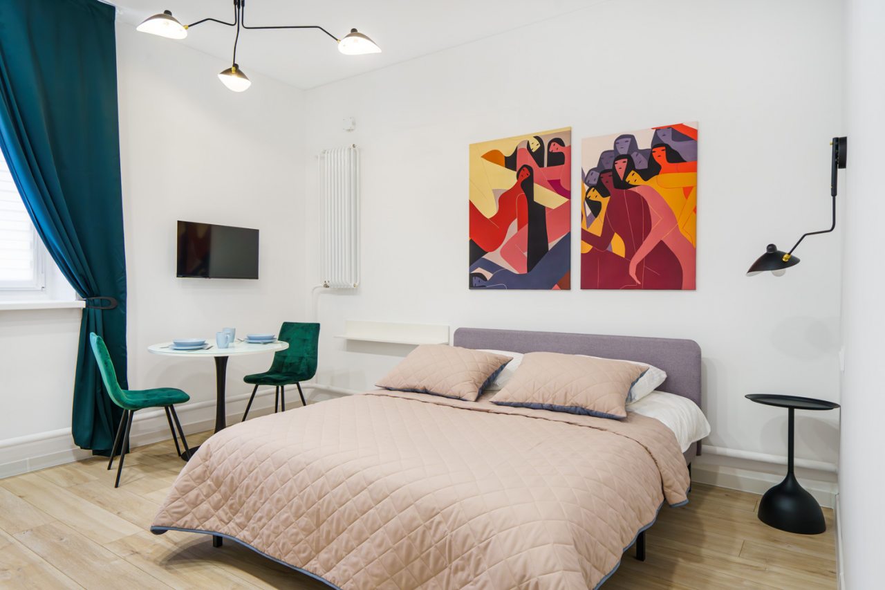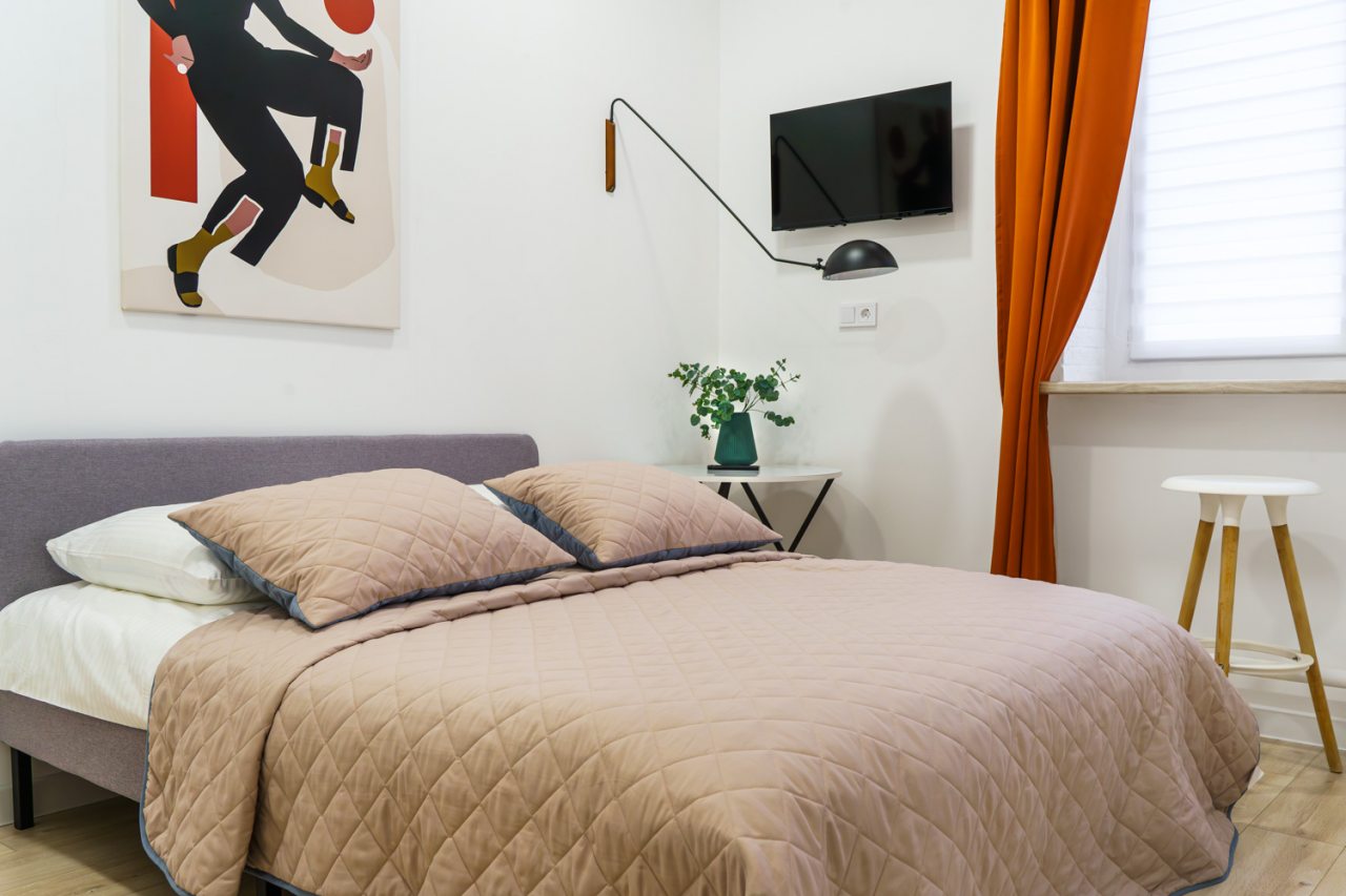Квартира отличается современным дизайном и вниманием к деталям. Просторные комнаты наполнены светом, создавая приятную атмосферу для отдыха. Удобная кровать позволяет расслабиться после насыщенного дня, а продуманные элементы декора добавляют уюта.
