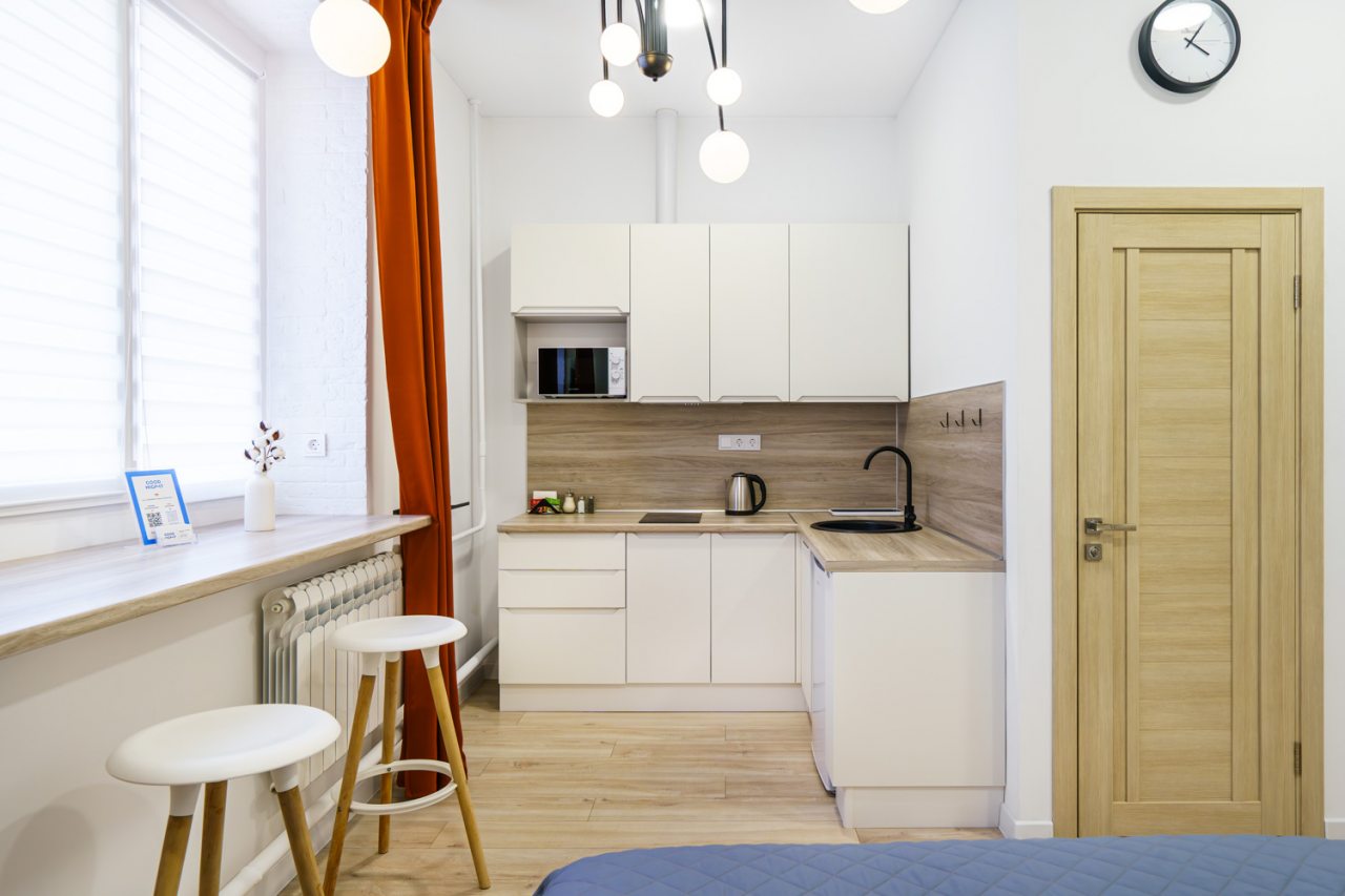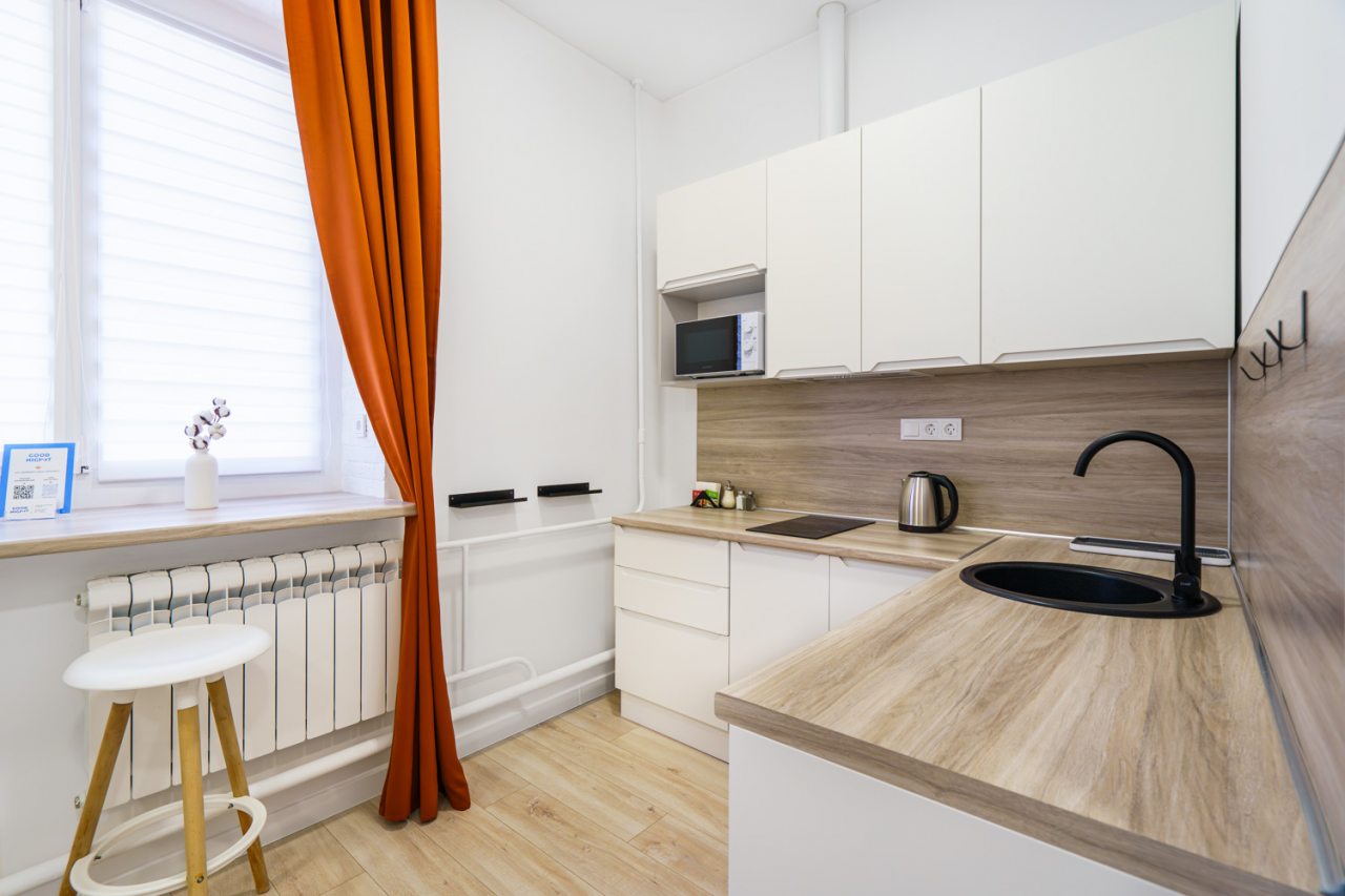 Мне понравилось здесь проживать, студия очень комфортабельная, есть все, что нужно для комфорта. Кровать удобная, на кухне чистота, есть необходимая посуда и техника. В ванной оставили чистые полотенчики, мне комфортнее когда есть душевая кабина, нежели ванная. Приятный вариант для размещения.