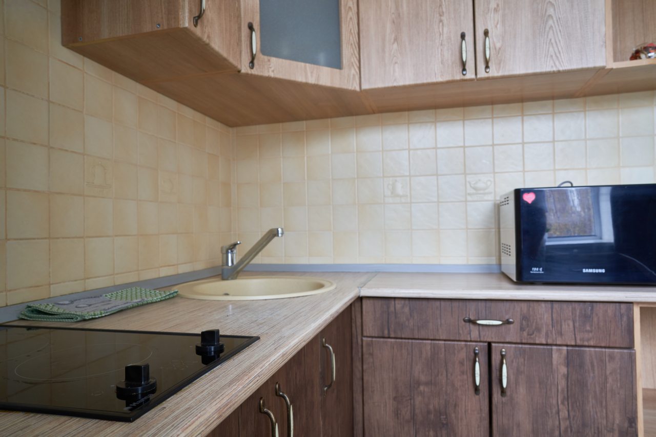 На кухне можно будет как разогреть пищу в микроволновой печи, так и приготовить что-то самостоятельно при помощи варочной панели. Рядом – различные заведения быстрого питания.