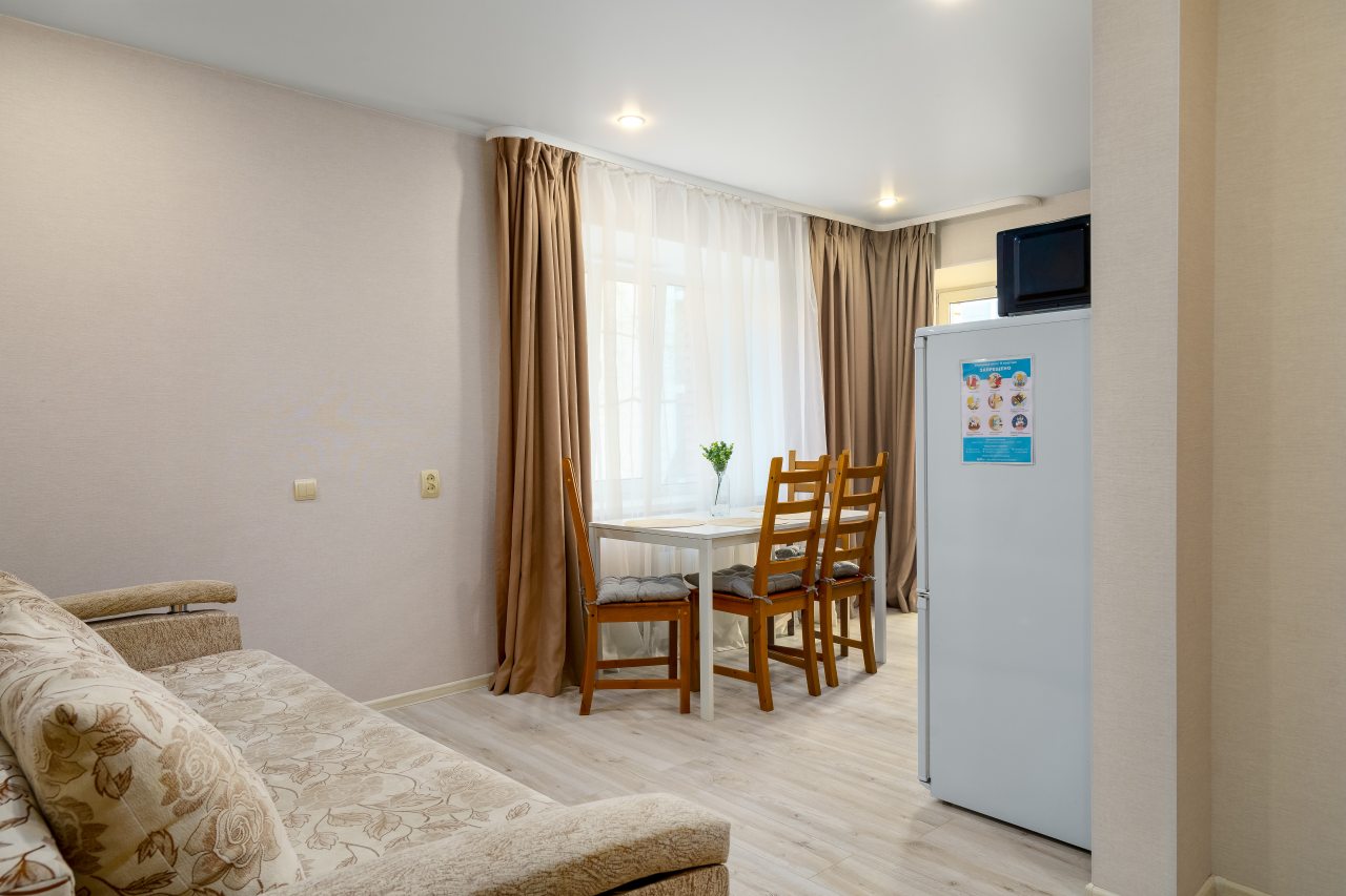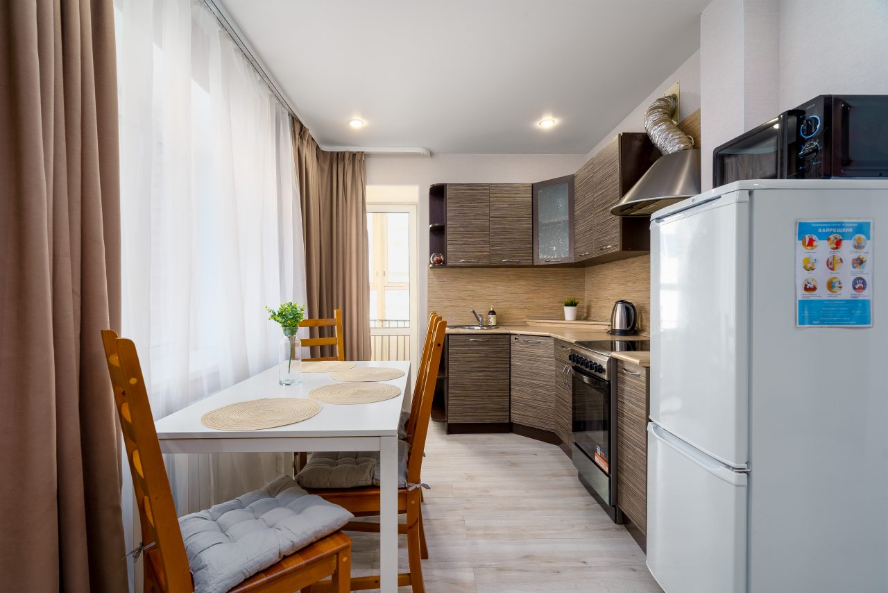 Заселялись поздно ночью, хозяин заранее скинул видеоинструкцию — всё предельно понятно. Квартира оказалась светлой и уютной, ничто не вызывало дискомфорта. Рядом продуктовый, аптека, остановка — удобно, если не хочется мотаться по городу. Утро порадовало видом на внутренний двор — тихий и зелёный. На кухне нашлось всё необходимое, готовить было приятно. Понравилось, что кровать удобная, не пришлось перекручиваться всю ночь. Воздух в помещении свежий, не было запахов.