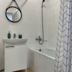 Милые, симпатичные апартаменты. Понравилось оформление. Современная, стильная обстановка. Есть оригинальные, яркие акценты. Есть стиральная машина, для нас это было важно. Все удобно организовано. Было чисто.