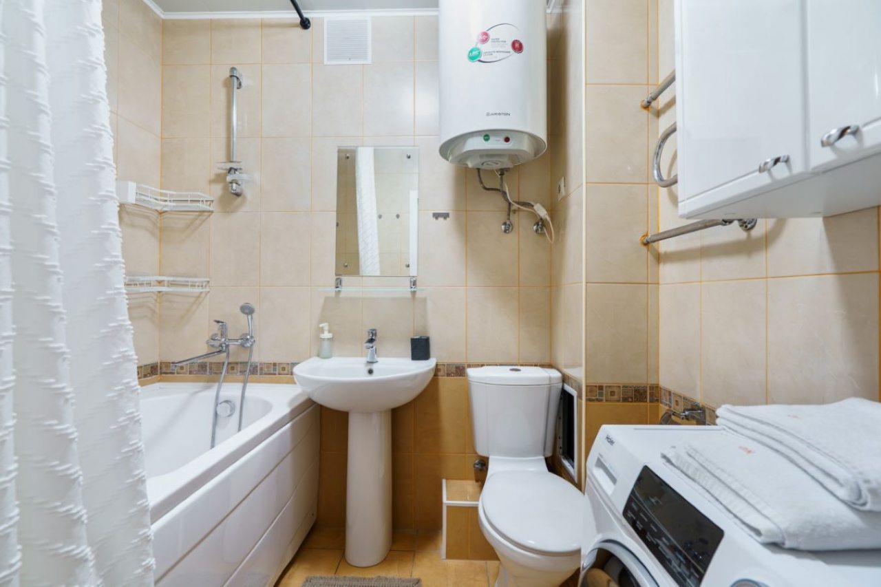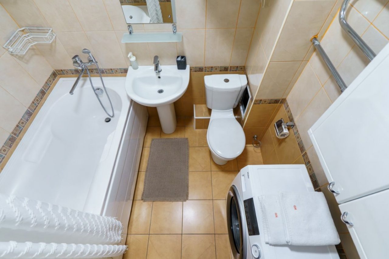 Внутри вас ожидает удобная двуспальная кровать, мягкий диван с телевизором, комод, вместительный шкаф, гладильные и сушильные принадлежности, стиральная машина, а также ванная комната с необходимой сантехникой.