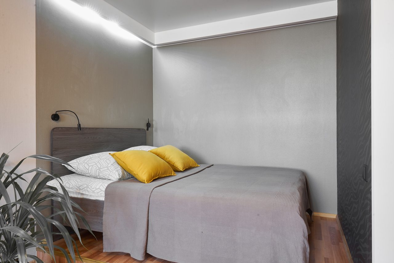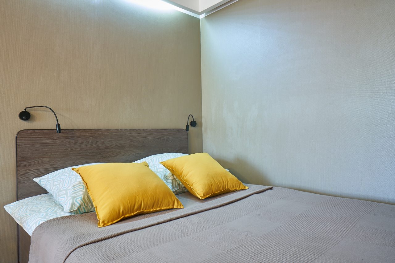 Интерьер современный и лаконичный. Внутри чисто, находиться приятно. Спокойный сон обеспечен, никакие шумы не мешают. Вечером удобно работать за столом или смотреть фильм. Все сделано просто и со вкусом.