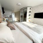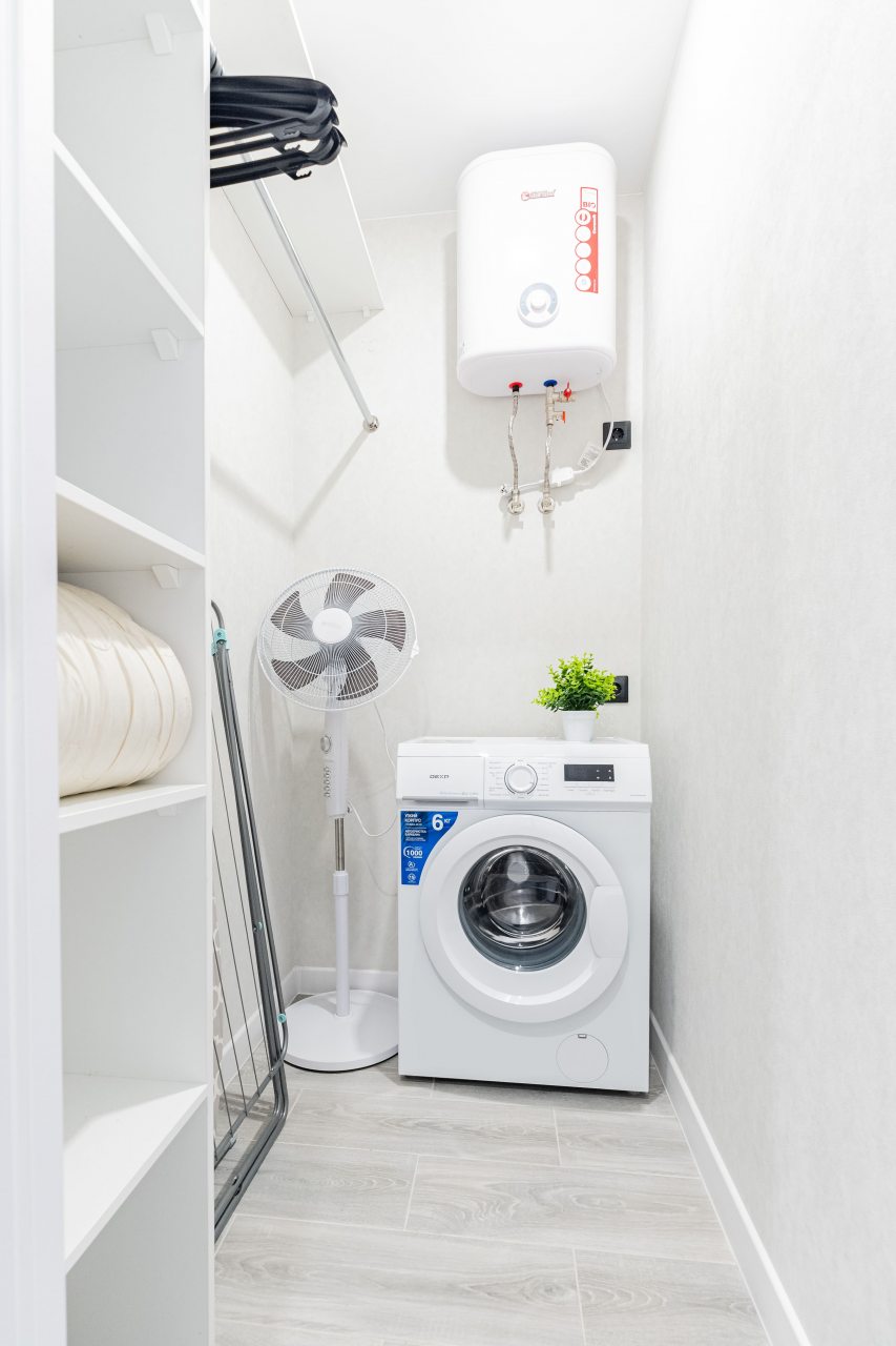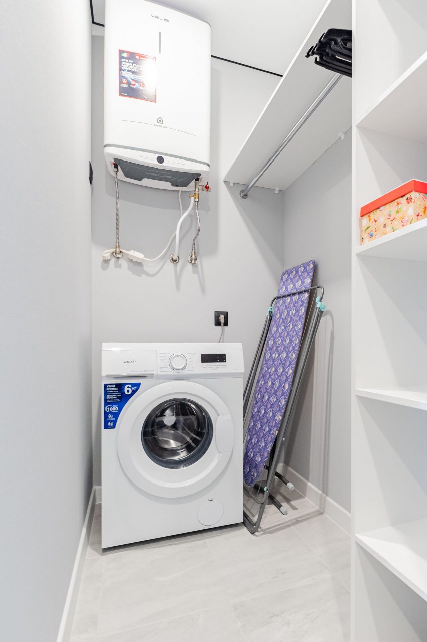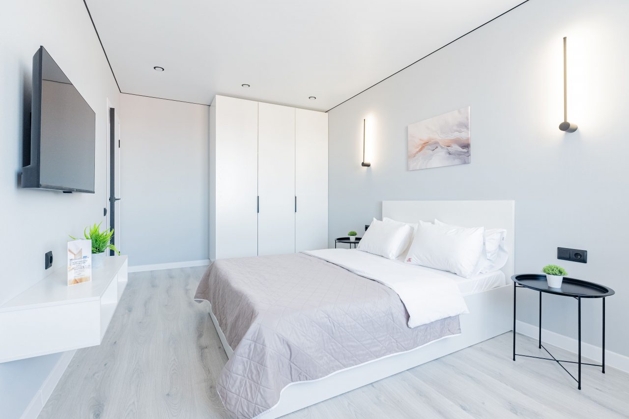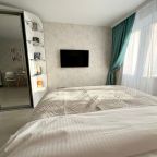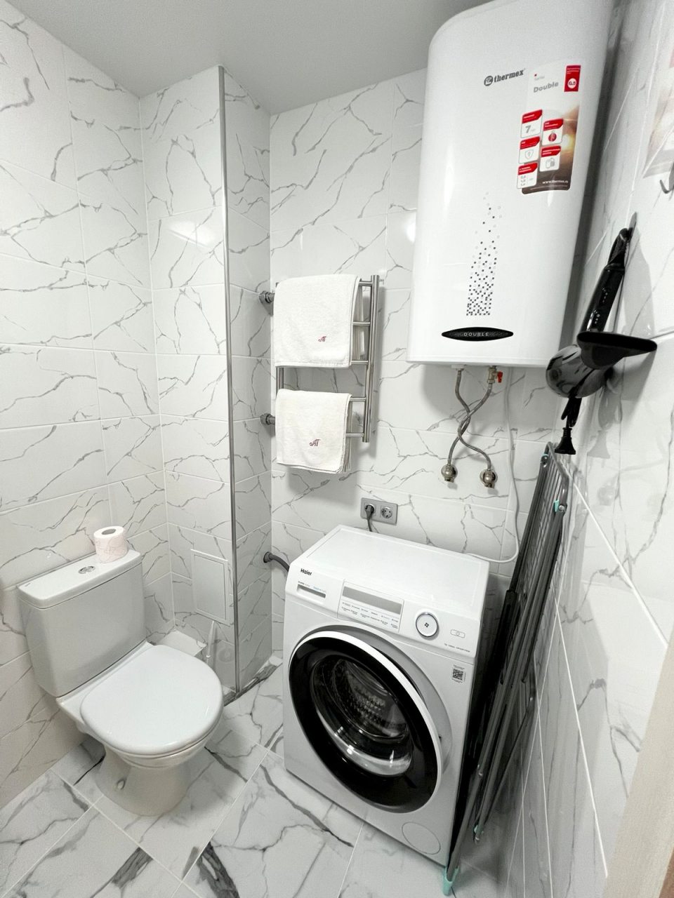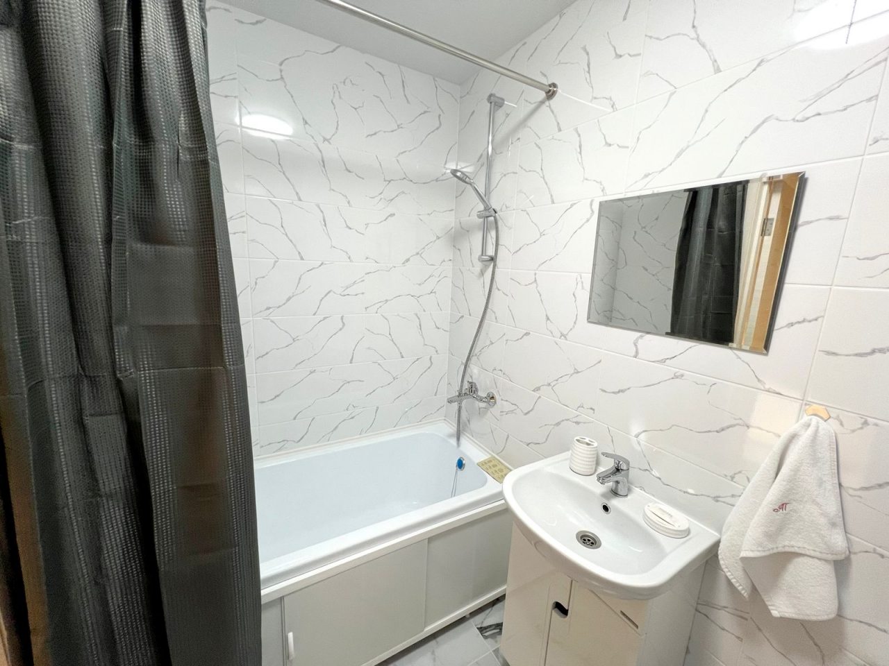 Внутри вас ожидает большая и удобная двуспальная кровать, ЖК-телевизор, вместительный шкаф-купе с зеркалом в полный рост, просторная лоджия с красивым видом на город, стиральная машина, а также полноценная ванна.