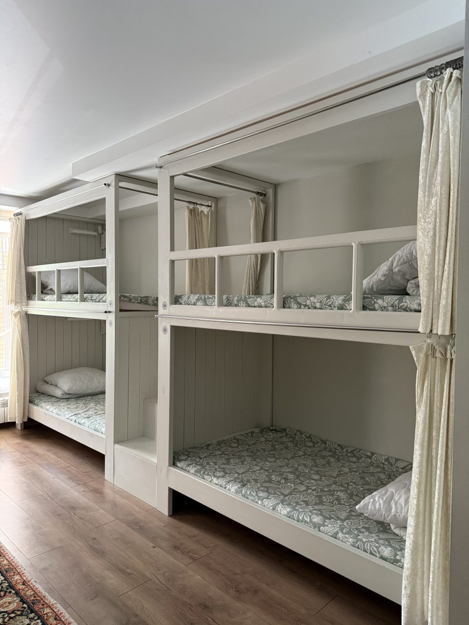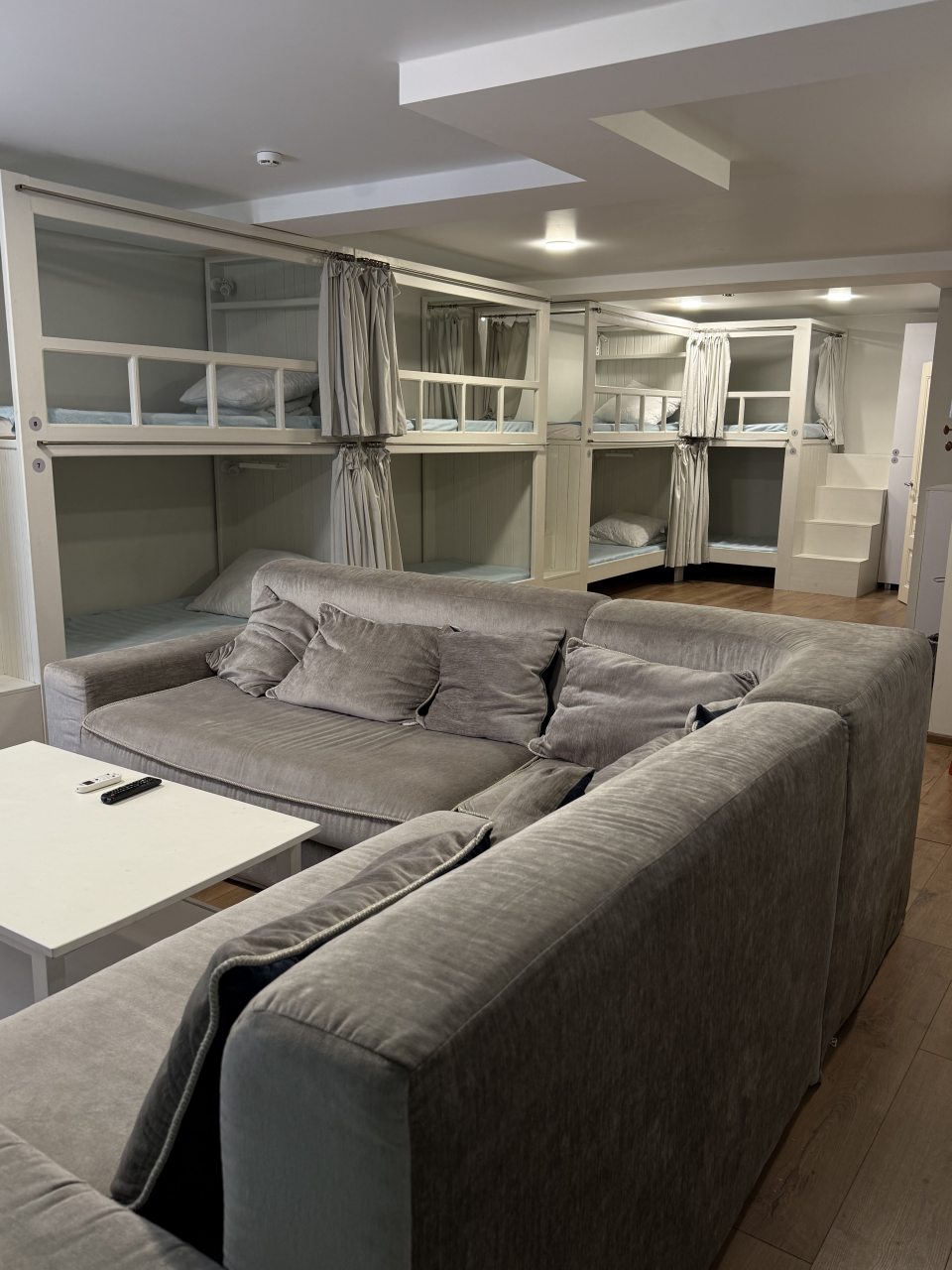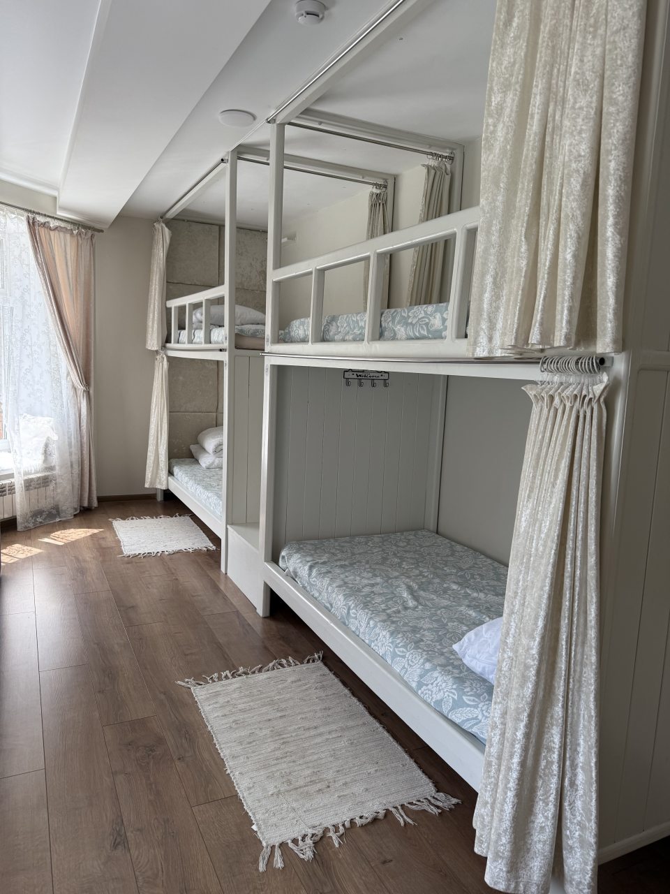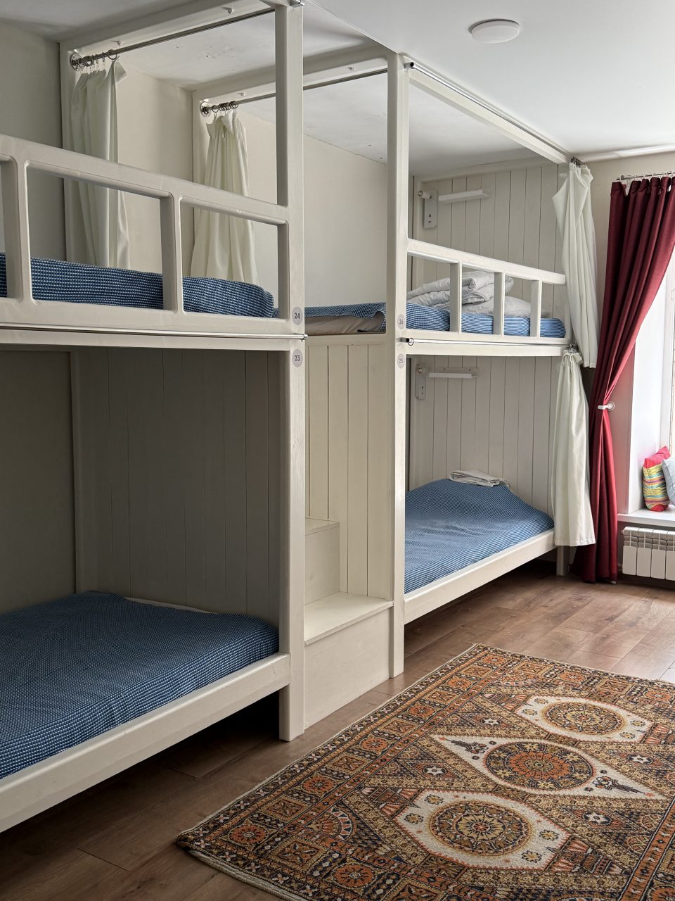 Я была полна скепсиса к хостелам. Однако оказалось, что они могут быть очень даже уютными, и в цене дешевле. Номер чисто женский, кровати двухъярусные, с удобными матрасами, и качественным постельным бельем. Есть индивидуальные полочки, освещение, шторки чтоб прикрыться. Отдельное спасибо за удобную лесенку, прекрасное решение. Рядом продуктовый магазин и кондитерская, чуть дальше - кафе.