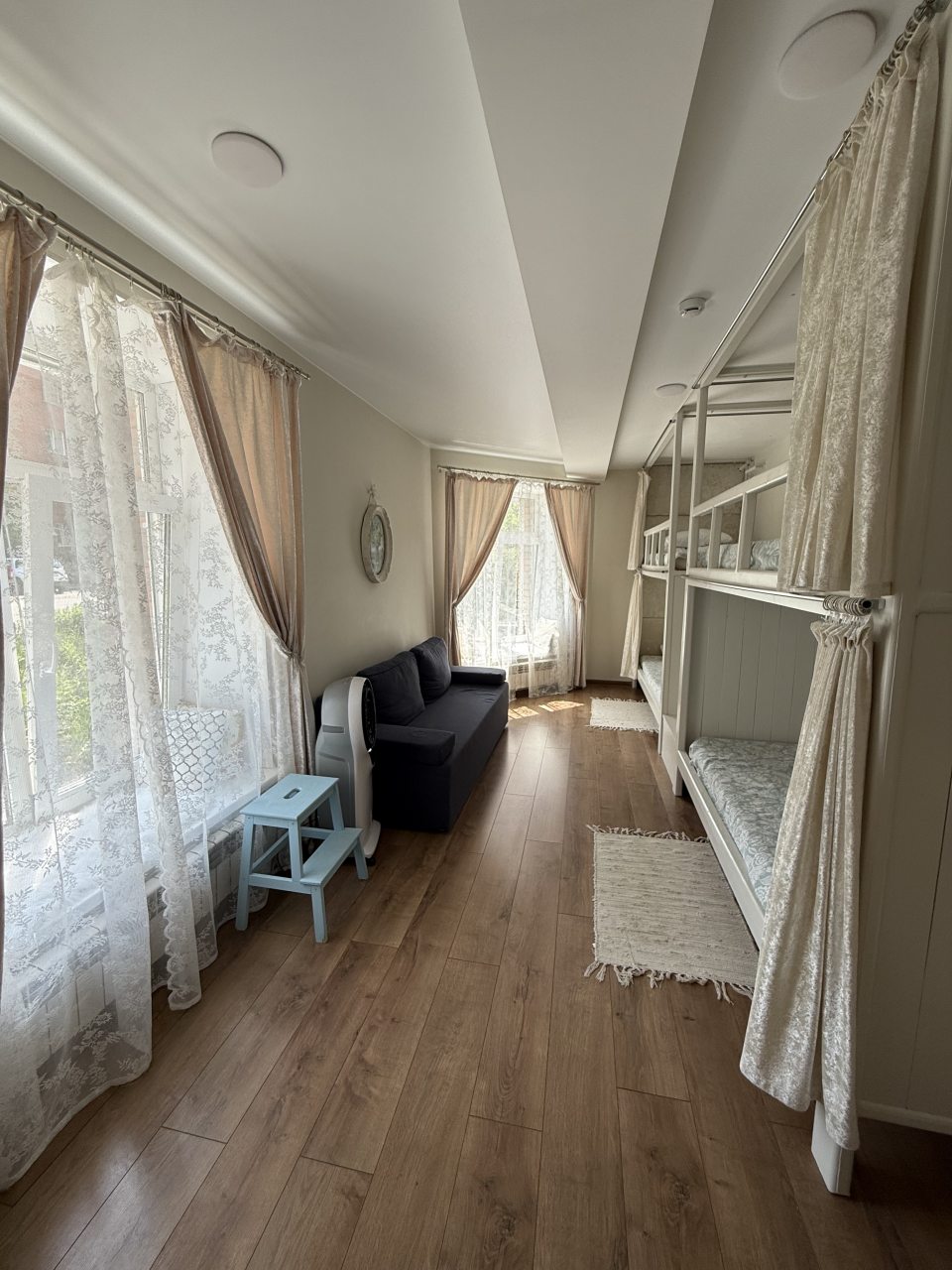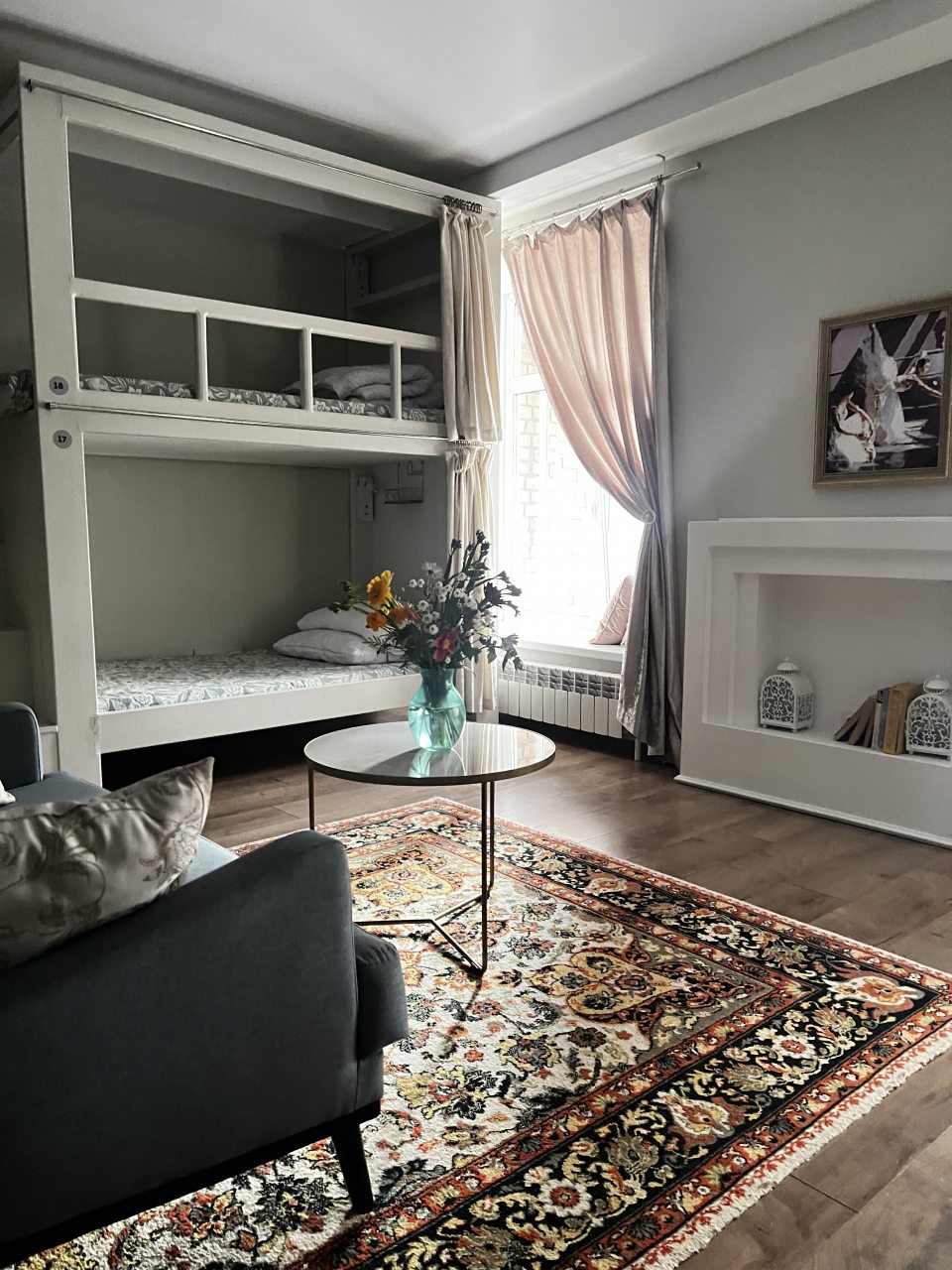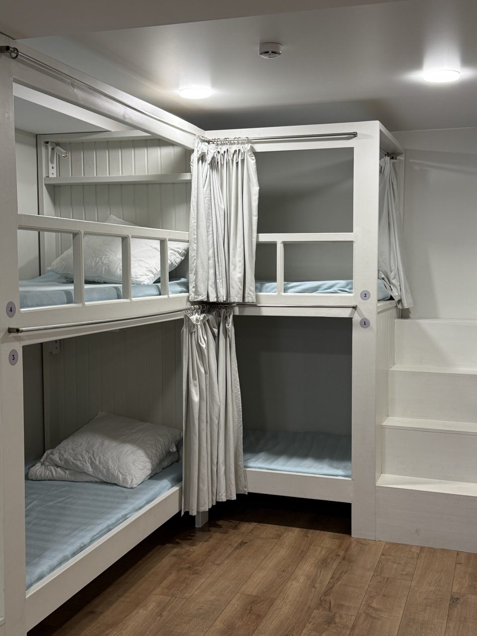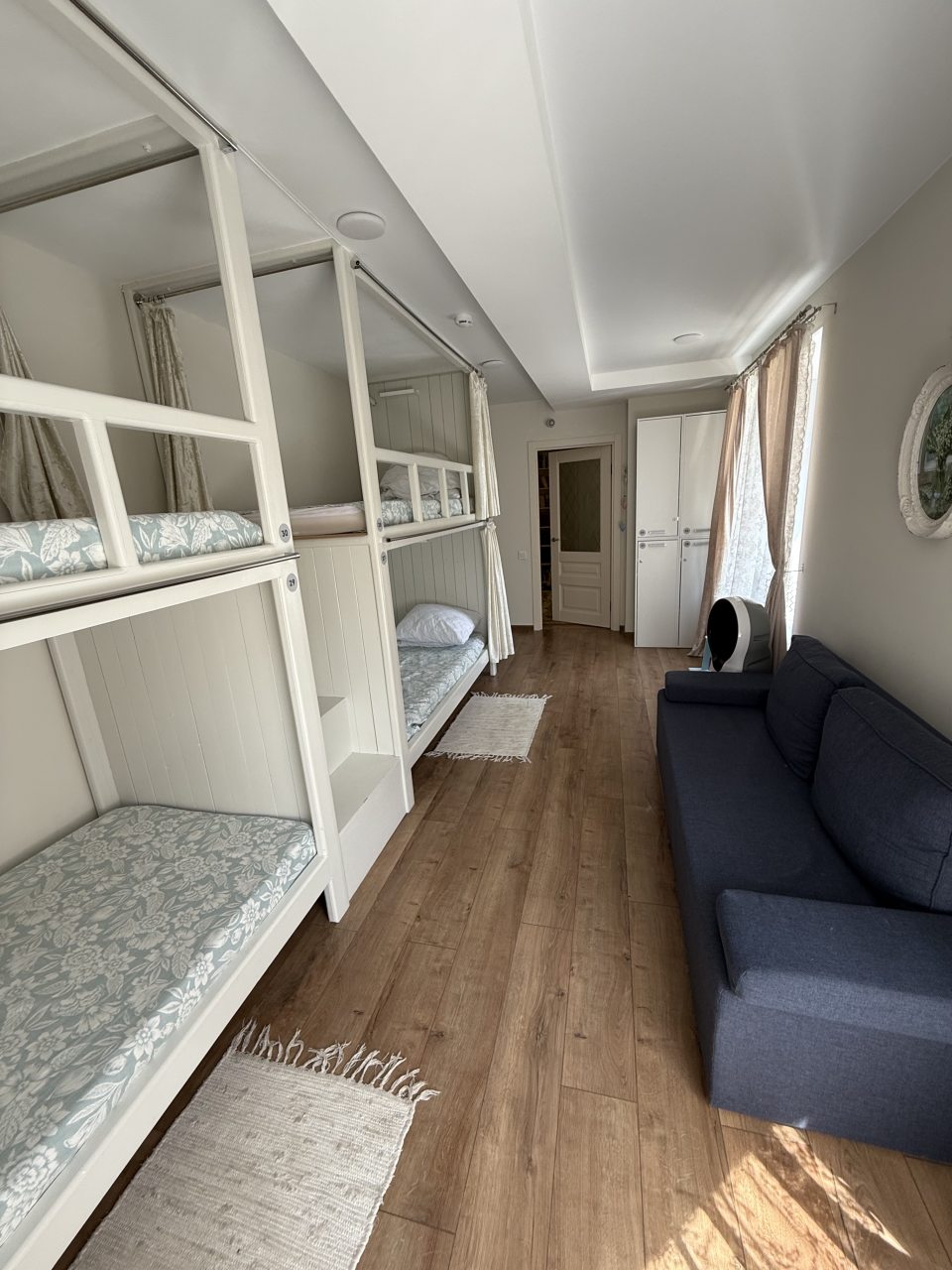 Я была полна скепсиса к хостелам. Однако оказалось, что они могут быть очень даже уютными, и в цене дешевле. Номер чисто женский, кровати двухъярусные, с удобными матрасами, и качественным постельным бельем. Есть индивидуальные полочки, освещение, шторки чтоб прикрыться. Отдельное спасибо за удобную лесенку, прекрасное решение. Рядом продуктовый магазин и кондитерская, чуть дальше - кафе.