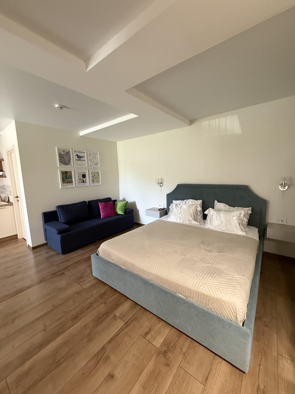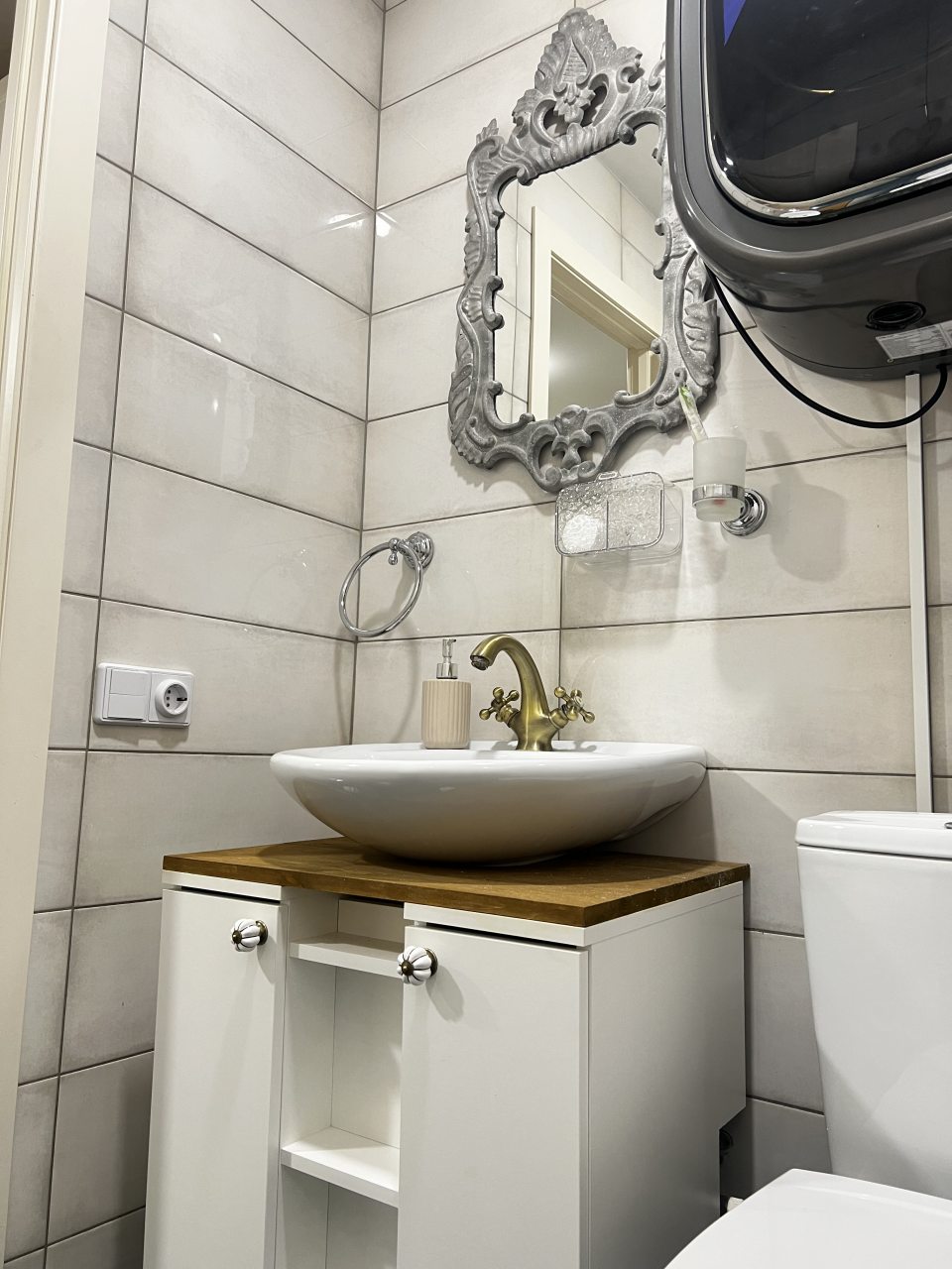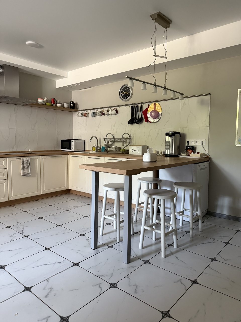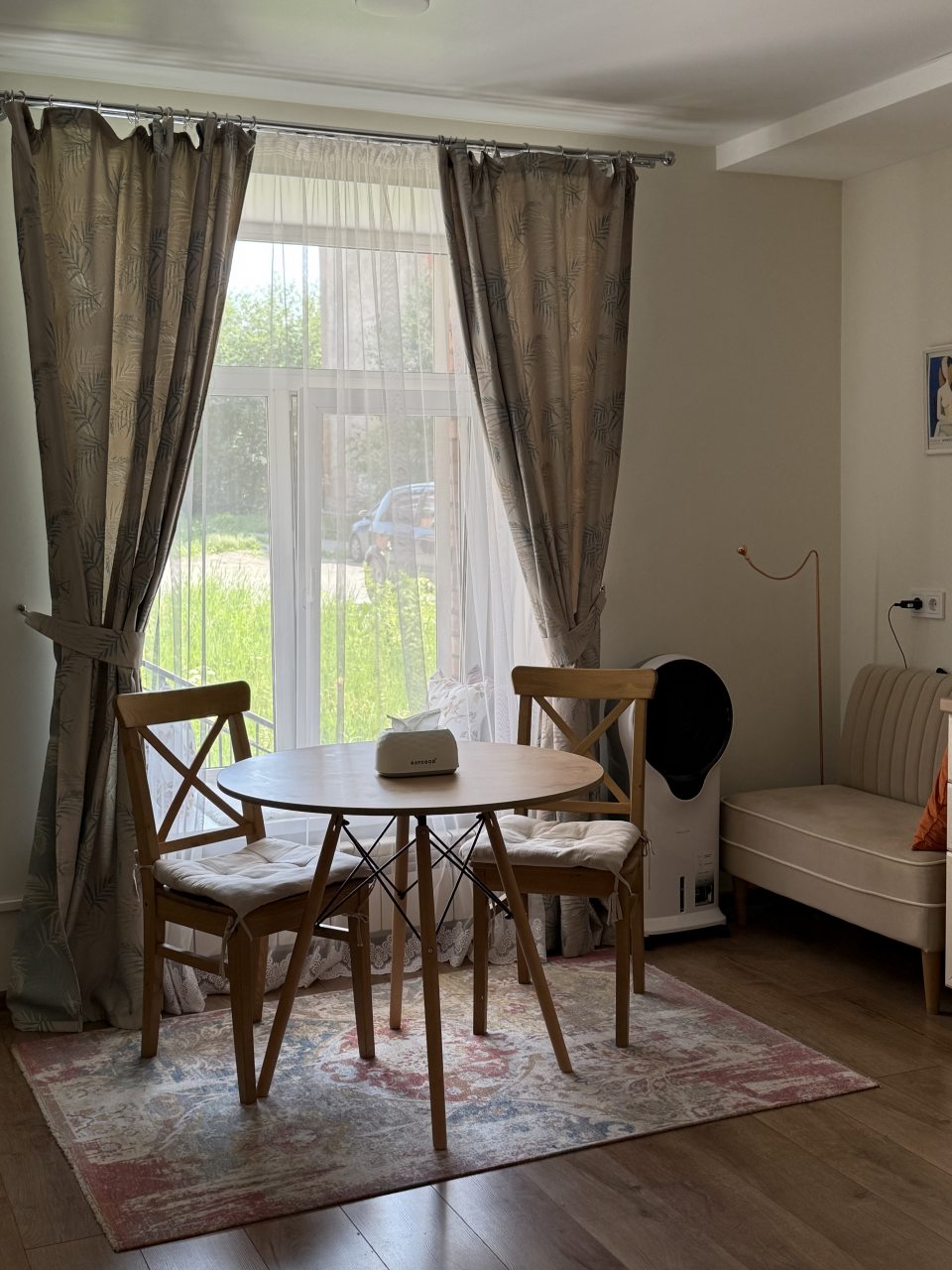 Просторная кухня обустроена гарнитуром, обеденной зоной и бытовой техникой. Поблизости есть кондитерская и продуктовый магазин.