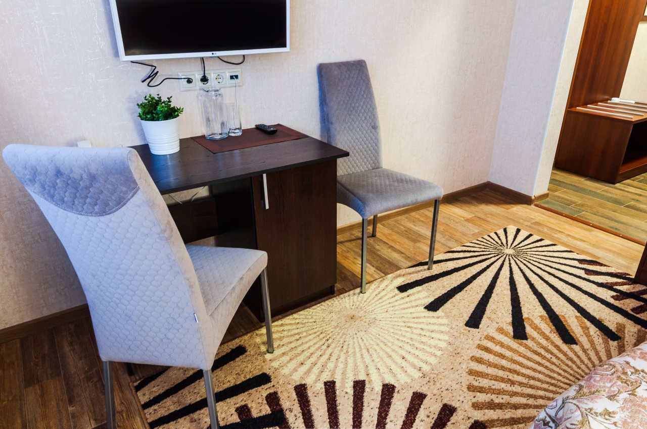 К услугам гостей 26 комфортабельных номеров категории «Эконом», «Стандарт», «Джуниор Сьют». В них есть удобные спальные места, телевизор с цифровым TV, Wi-Fi, ванная комната, рабочий стол. Дополнительно предоставляются гладильные принадлежности и фен. Доступны услуги прачечной.