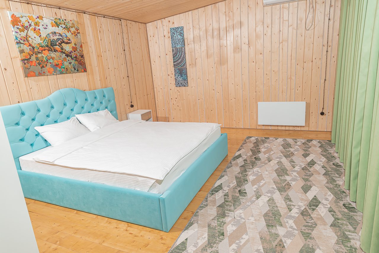 Комфортабельные стильные домики оборудованные всем необходимым для качественного проживания, например: удобными спальными местами с комплектом чистого постельного белья, большими окнами с затемненными шторами, кондиционером, телевизором и кухонной зоной.