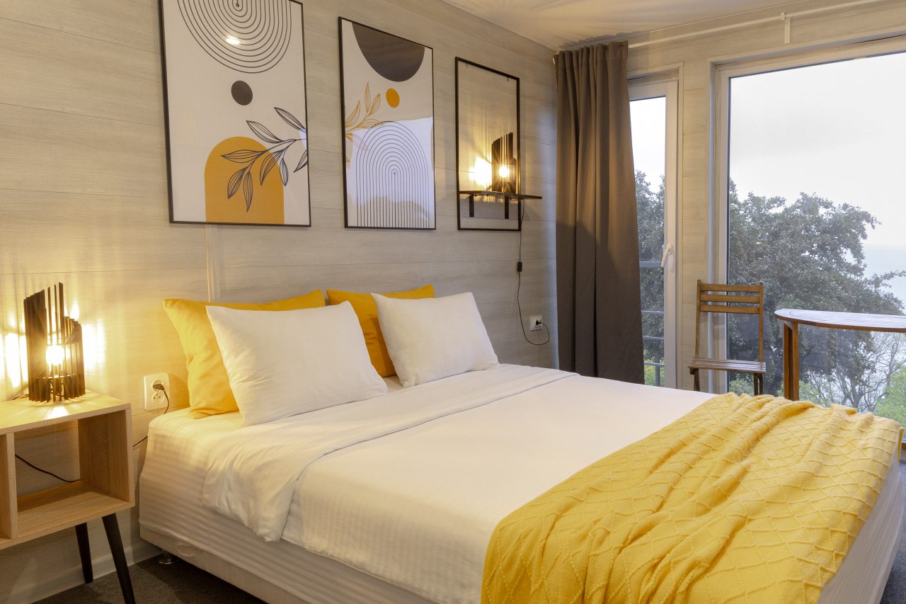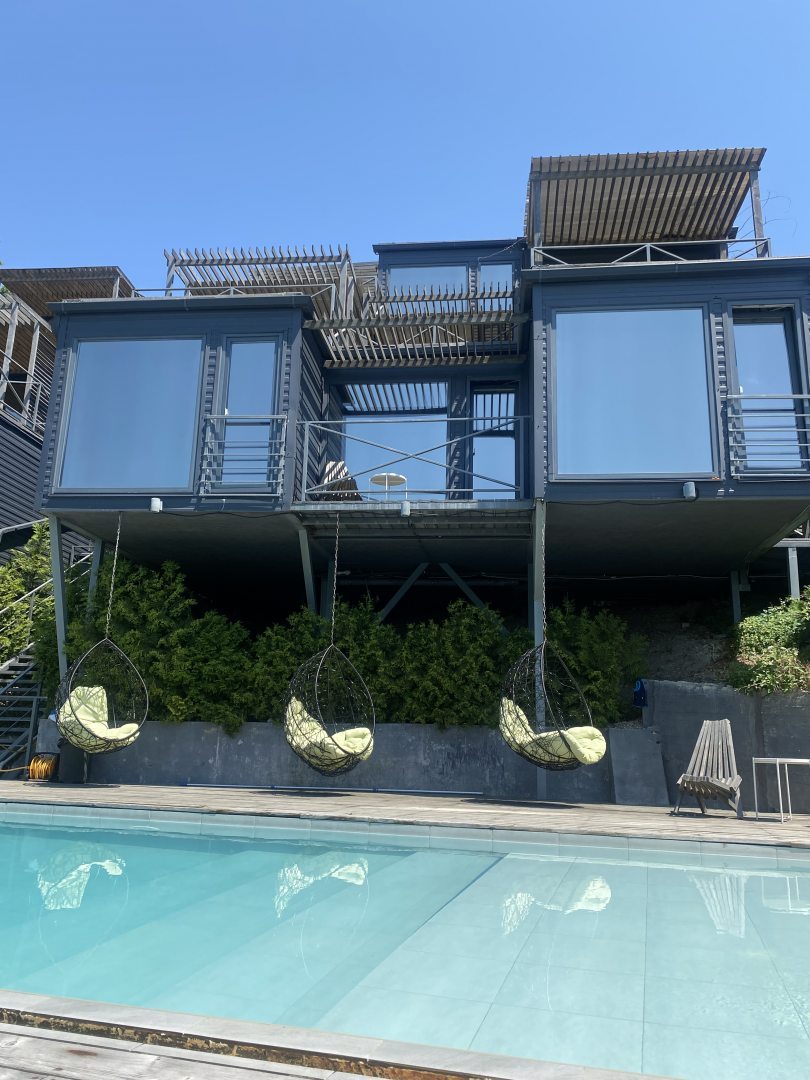 Не рекомендую здесь останавливаться с детьми, это все же отдых для взрослых, кто хочет спокойствия, для детей ничего нет, опасные спуски и подъемы к кафе, бассейну, ограждения на высотах небезопасно для детей, запросто можно вывалиться, нужно быть на чеку