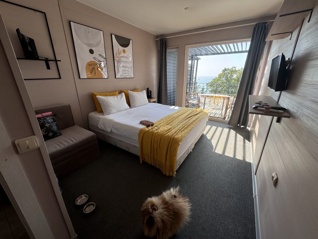 И кстати, пляж дикий, нет лежаков или местечка полежать, нужно идти в центральный, а это 7-10 минут пешком