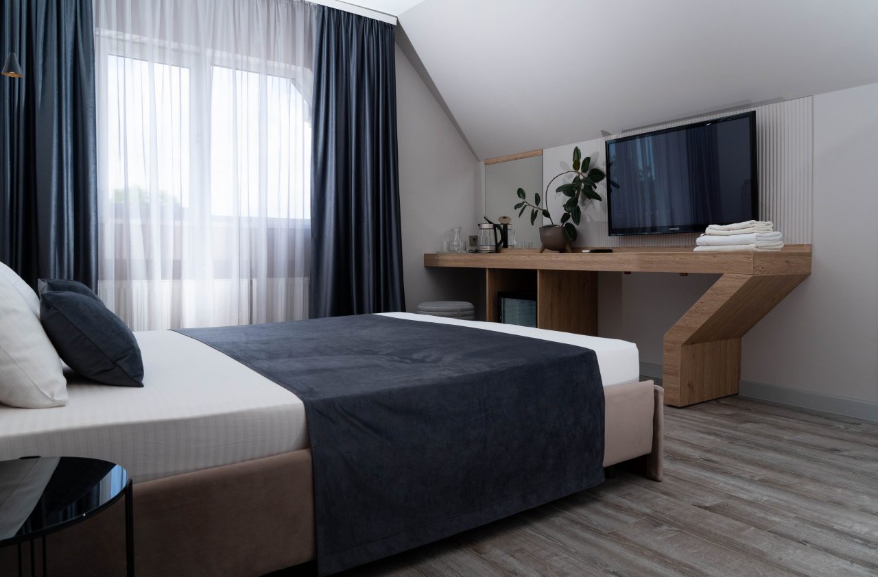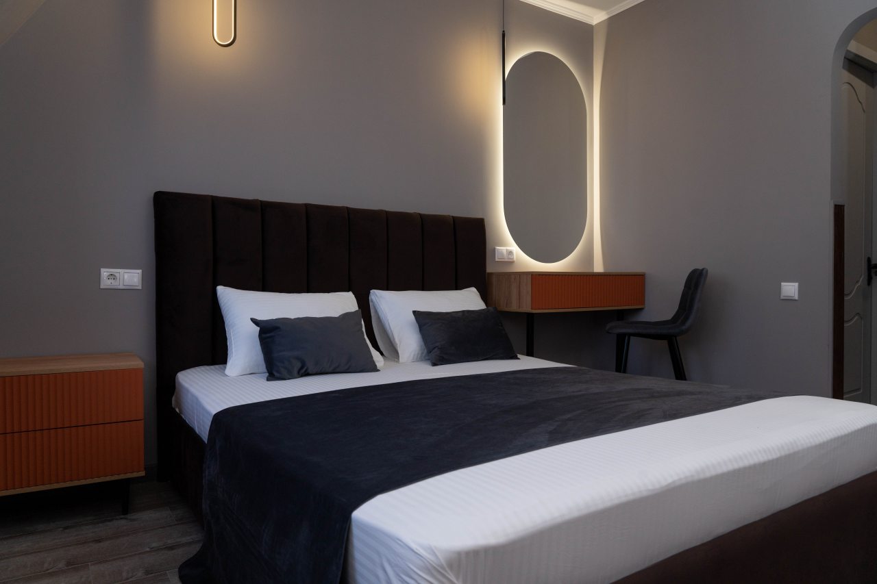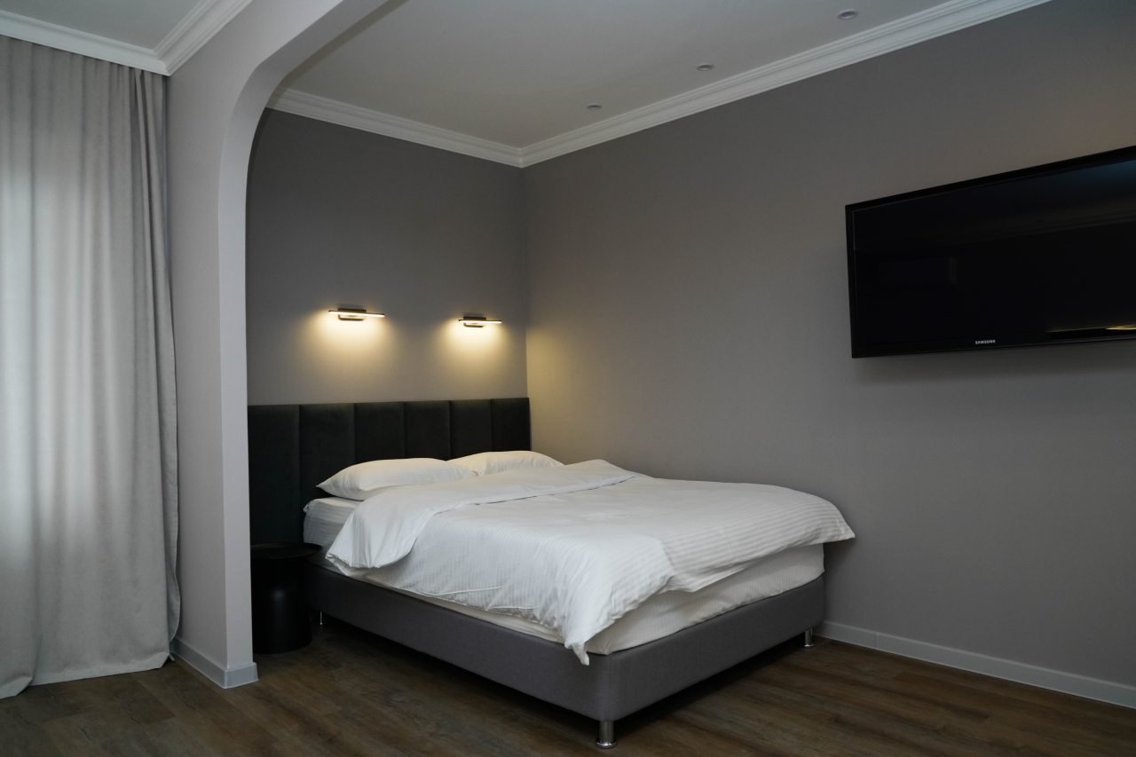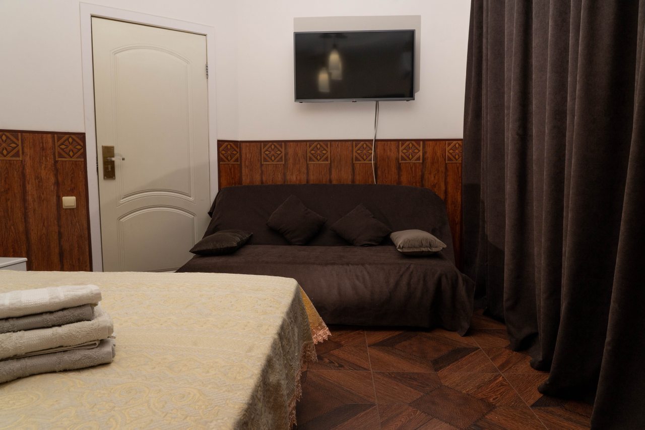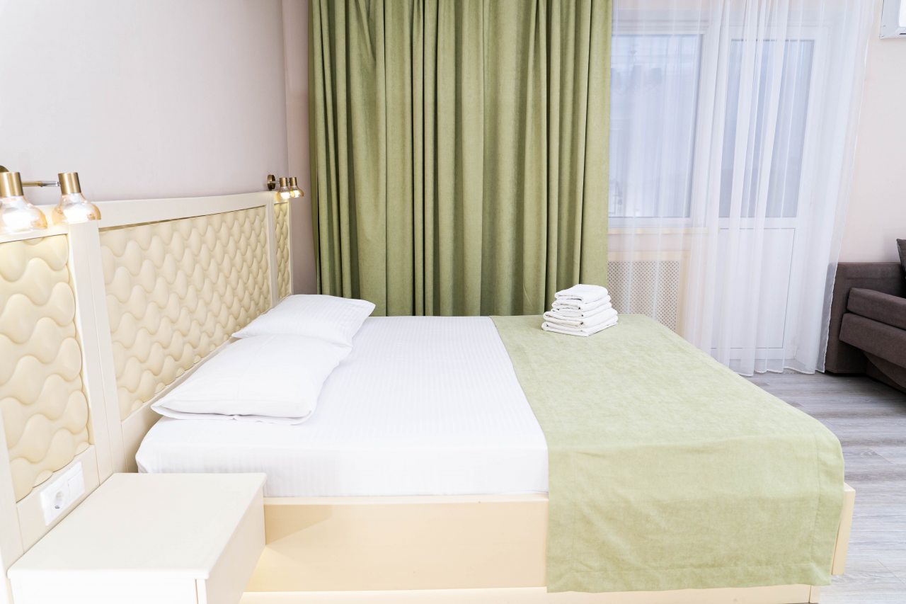 Отель Олимп находится в центральной части Туапсе рядом с хорошо развитой коммерческой инфраструктурой. Номер оформили здесь заранее, нам понравилось, как он оборудован в классическом стиле. Большие окна обеспечивают солидный поток света. Мебель шикарная, резная и новая. Очень понравилось, как убирают в номерах, при этом персонал внимательный и любезный. В номере у нас был свой небольшой кухонный гарнитур, благодаря которому нам удавалось готовить разные блюда.