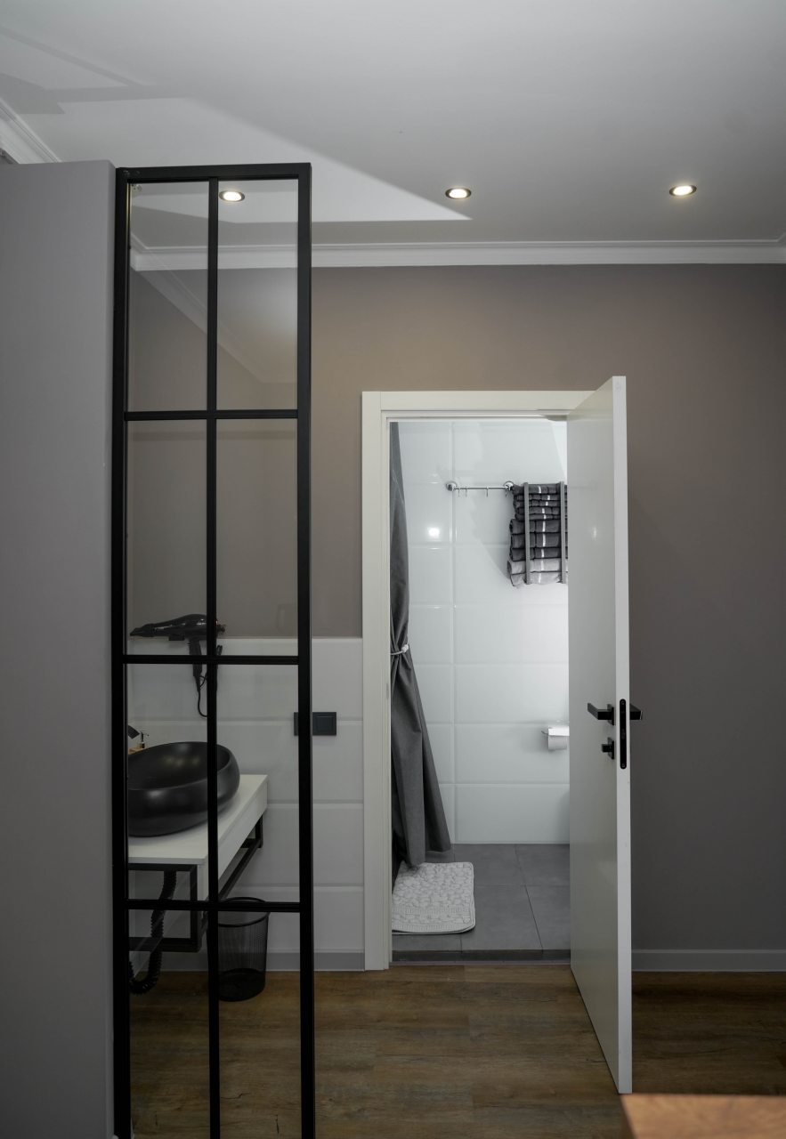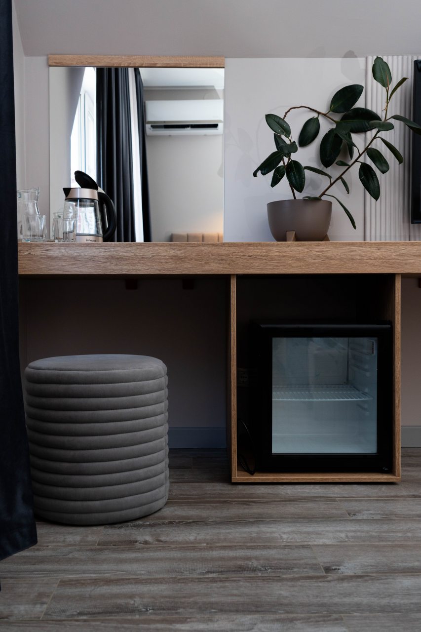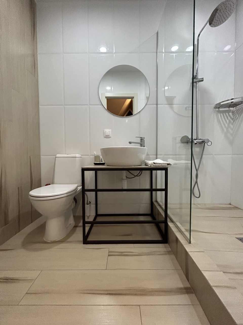 Из недостатков: не критично, но не хватает места для того чтобы повесить вещи, чтобы они не мялись. Ну и обычной сушилки железной и коврика на входе или минимально обувницы. Это не минусы, а то что было бы здорово добавить в номер.