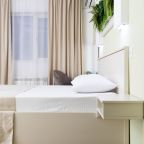 За свою цену отличный отель в удобном месте. Парковка всегда в наличии. Пешком от отеля до центра 10 минут. На такси 5-10 минут от центра, цена 200-300 рублей. Сам номер чистый, ремонт хороший. Персонал отличный, никаких лишних вопросов и требований как у тех кто сдает квартиры посуточно. Пельменная на втором этаже отличная цена качество, сами пельмени и вареники прекрасны! Кондиционер работает отлично и тихо. Душевая очень хорошая.