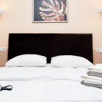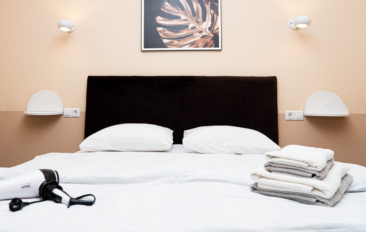 Для размещения постояльцам предоставлены просторные и светлые номера с приятным интерьером и дизайном комнат. Все помещения оборудованы необходимой техникой и мебелью. Ванная оборудована стандартным набором сантехники, прилагаются свежие полотенца.