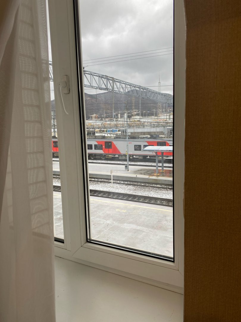 Очень удобное расположение. Отель находится в здании вокзала. Номер соответствовал заявленному. Окна выходили на перрон и жд пути, но ночью я спала спокойно и ничего не слышала.